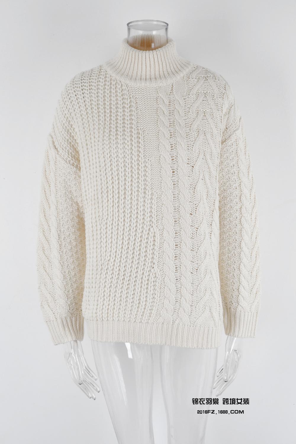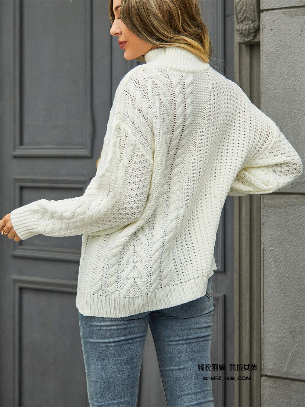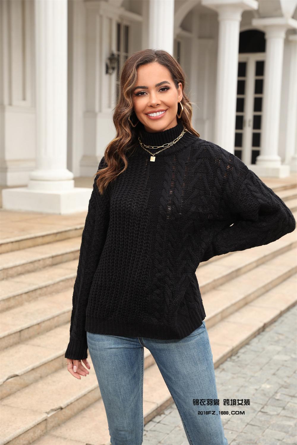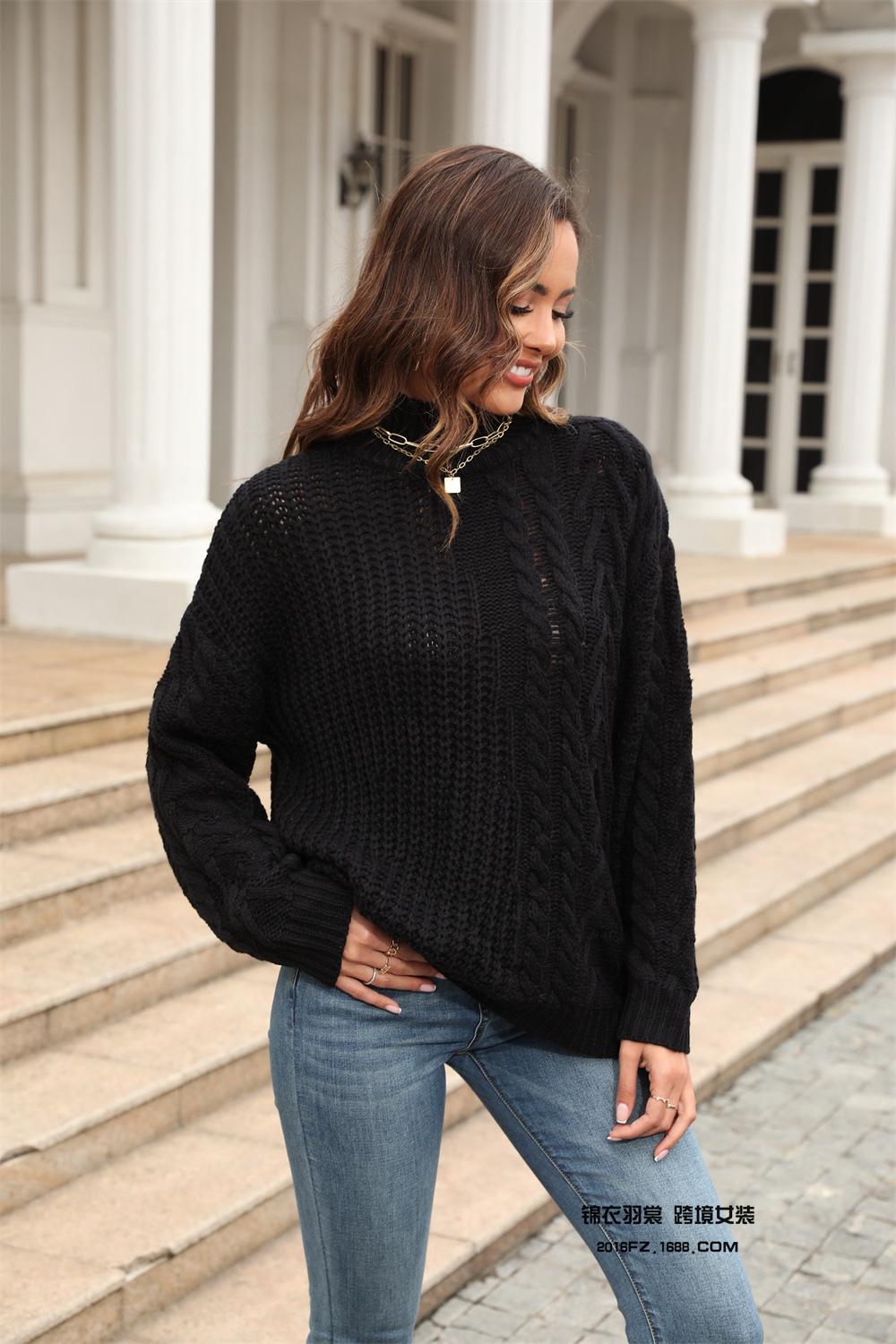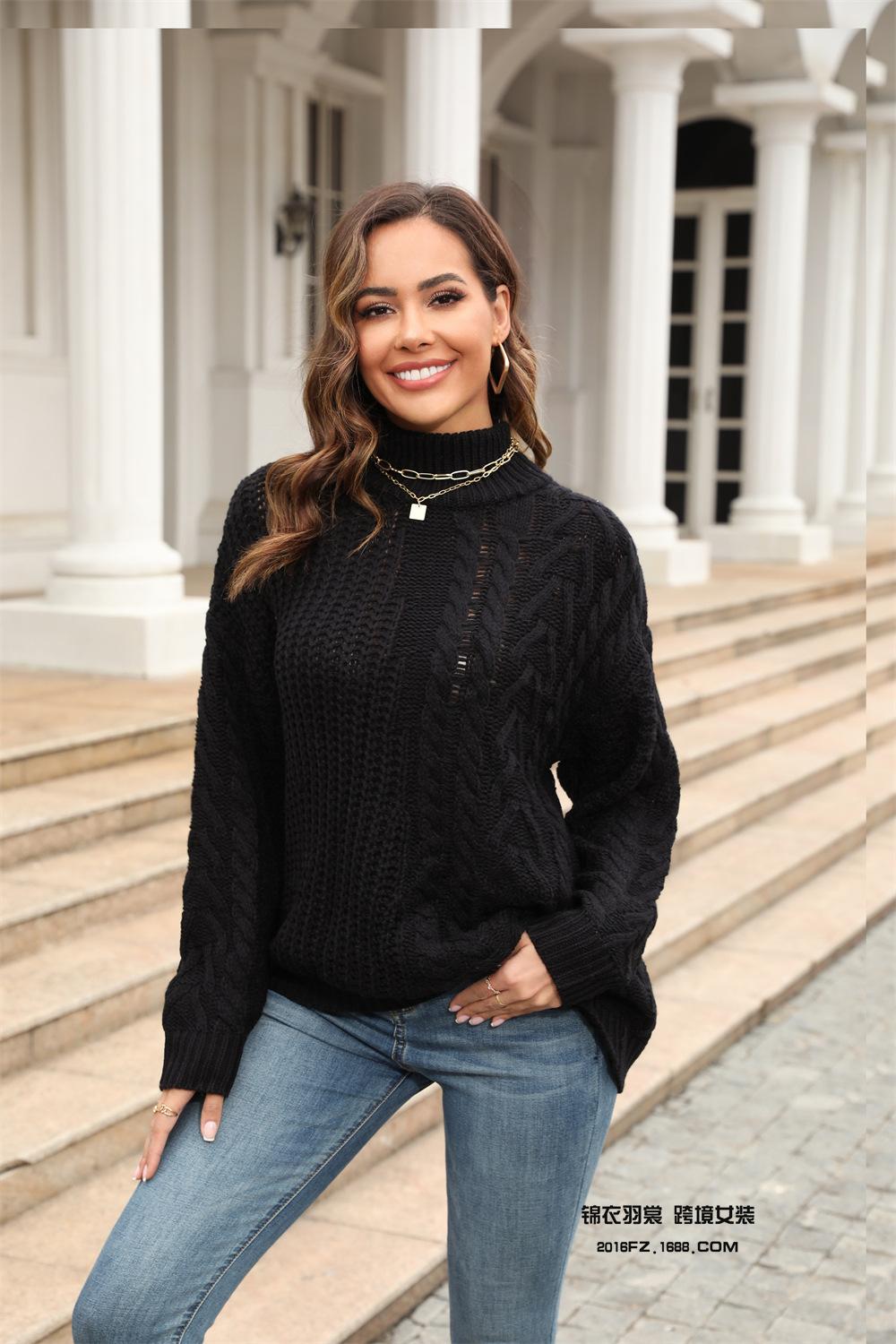 Suéter de Punto Trenzado Popular de Amazon para Mujer Primavera 2025 Nuevo Transfronterizo Talla Grande Holgado Cuello Medio Alto