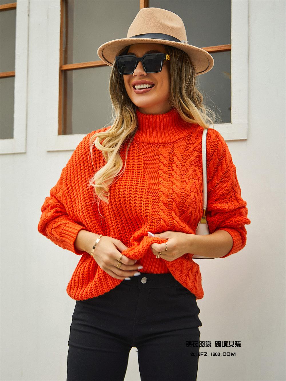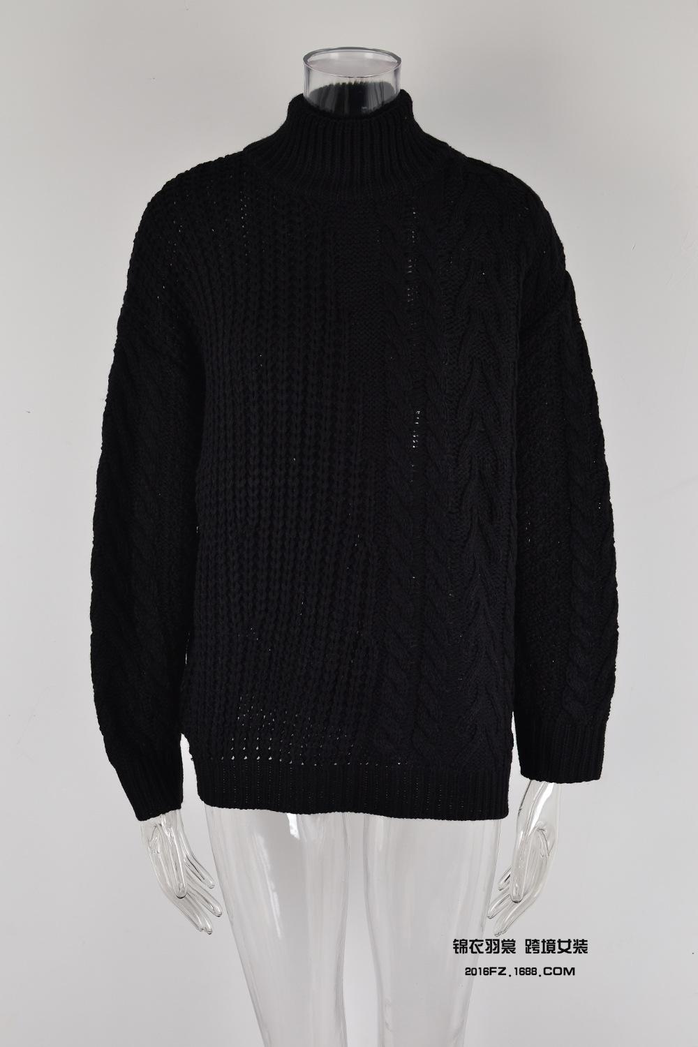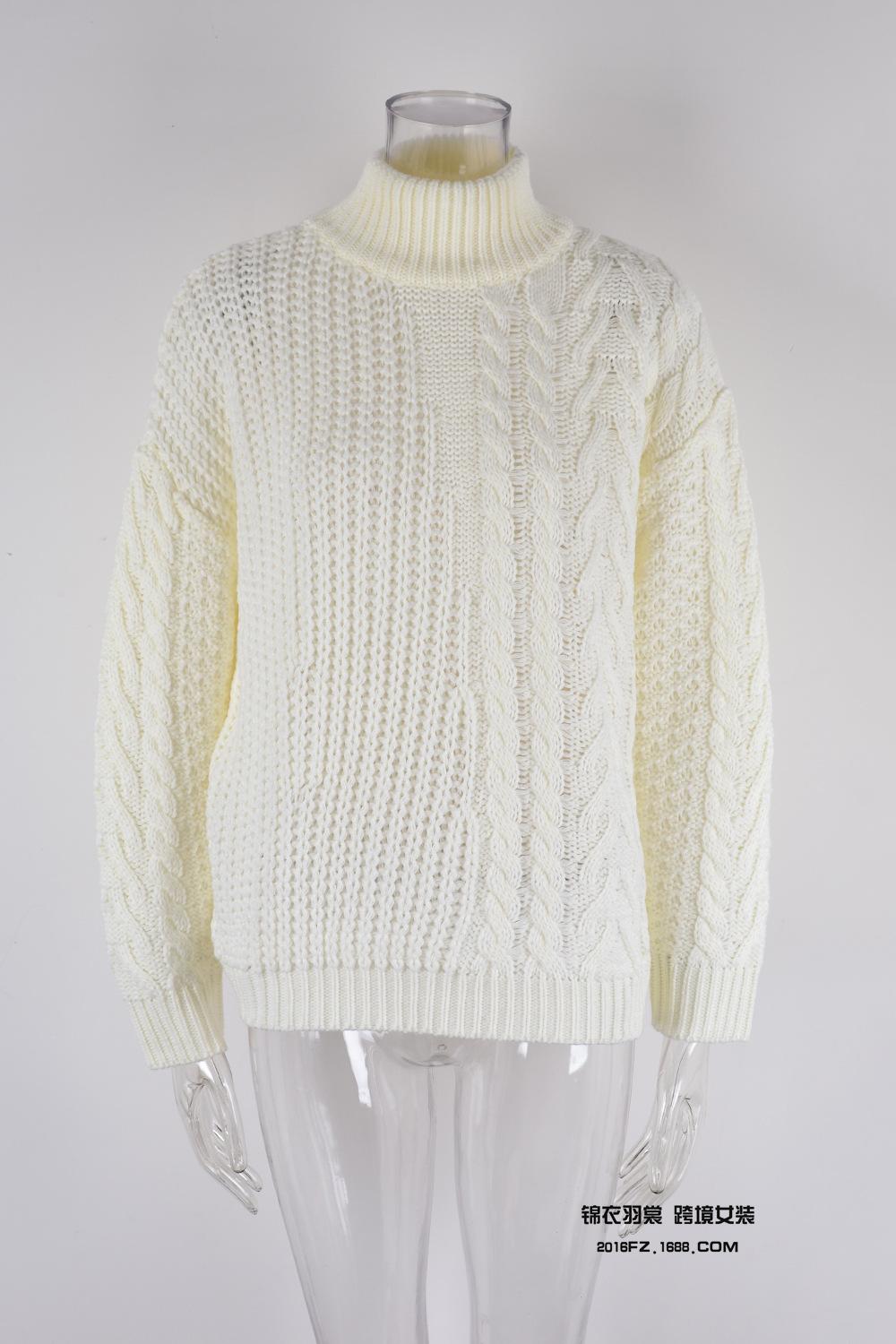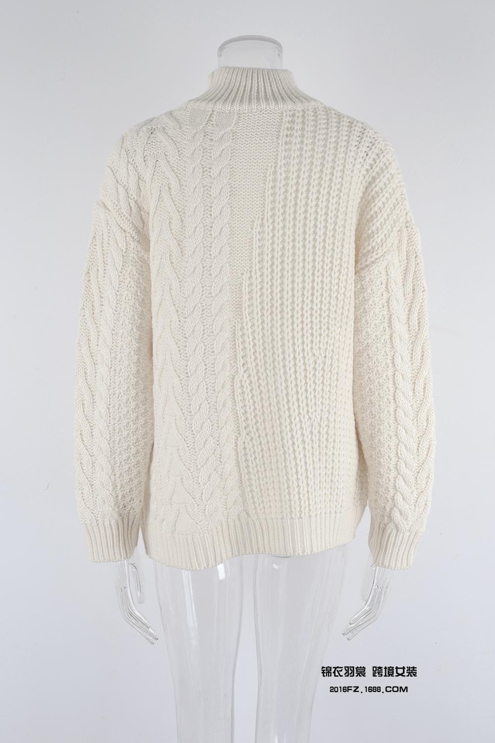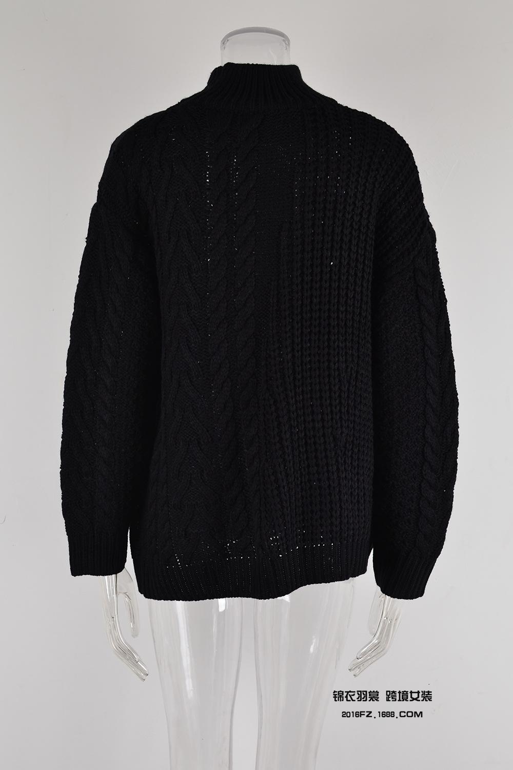 Suéter de Punto Trenzado Popular de Amazon para Mujer Primavera 2025 Nuevo Transfronterizo Talla Grande Holgado Cuello Medio Alto