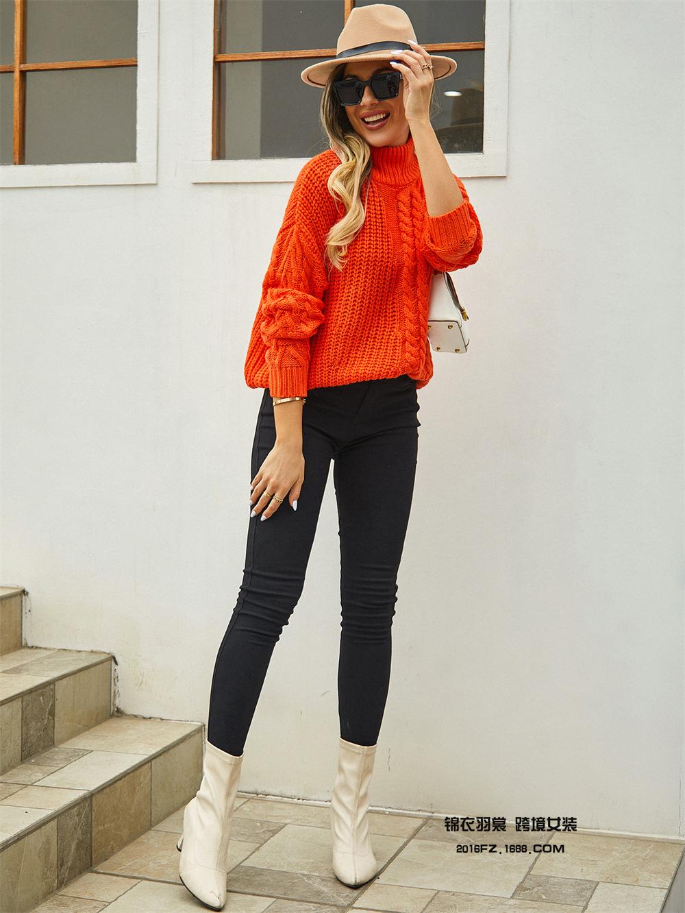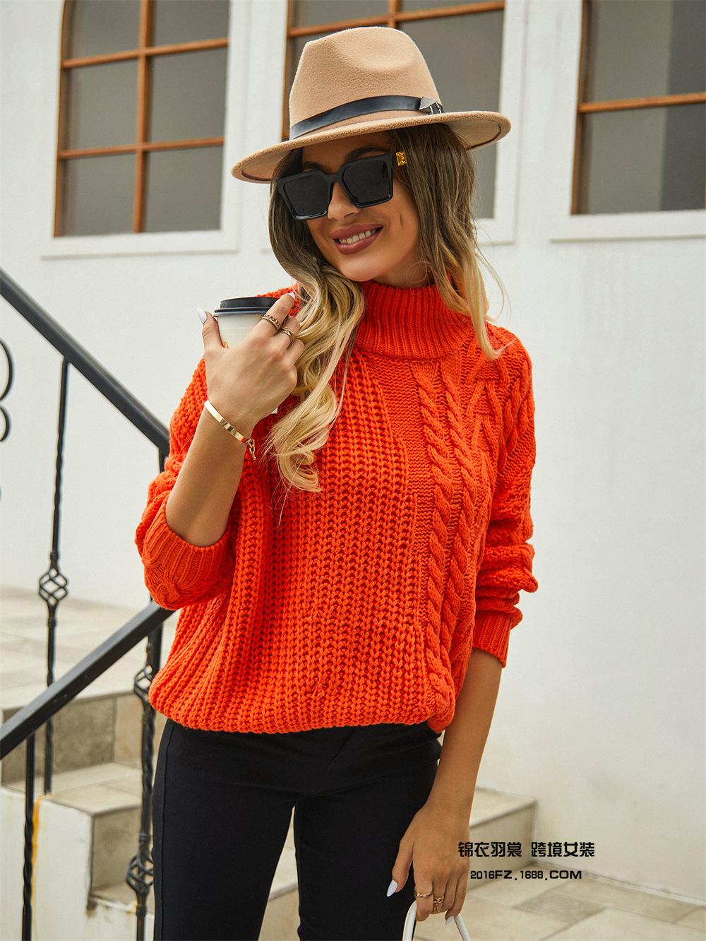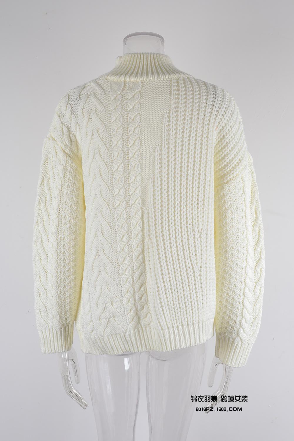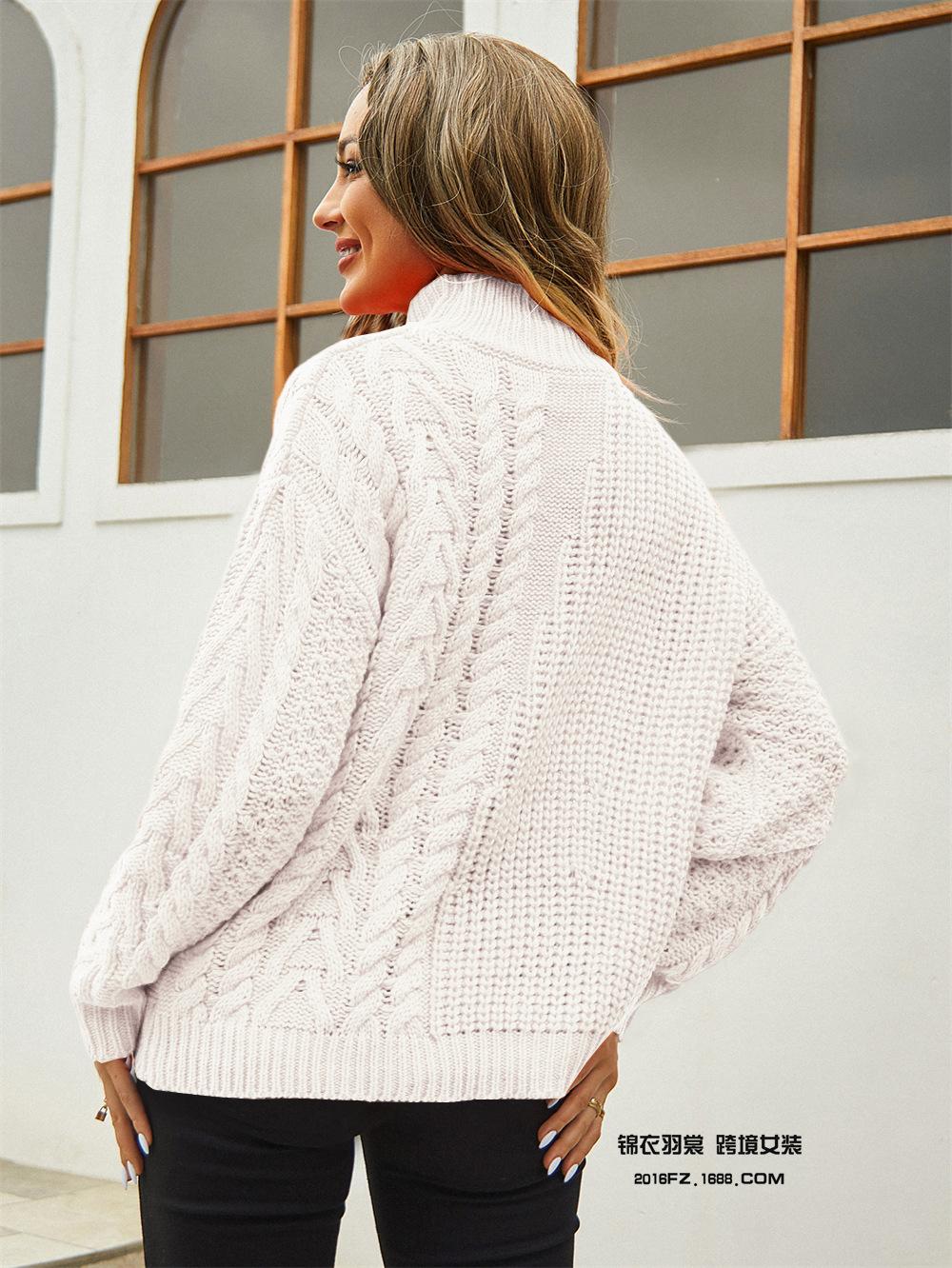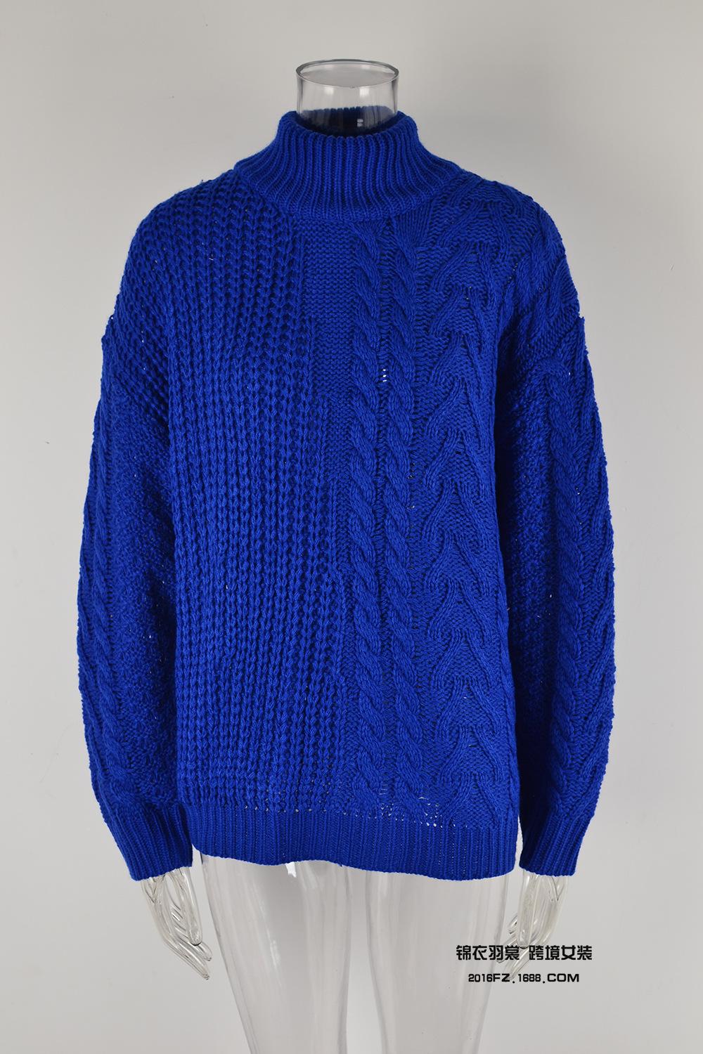 Suéter de Punto Trenzado Popular de Amazon para Mujer Primavera 2025 Nuevo Transfronterizo Talla Grande Holgado Cuello Medio Alto