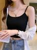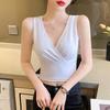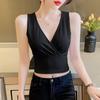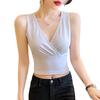 Camiseta de tirantes finos de algodón puro blanco de verano para mujer, con escote en V cruzado y cintura alta, para uso interior y exterior.