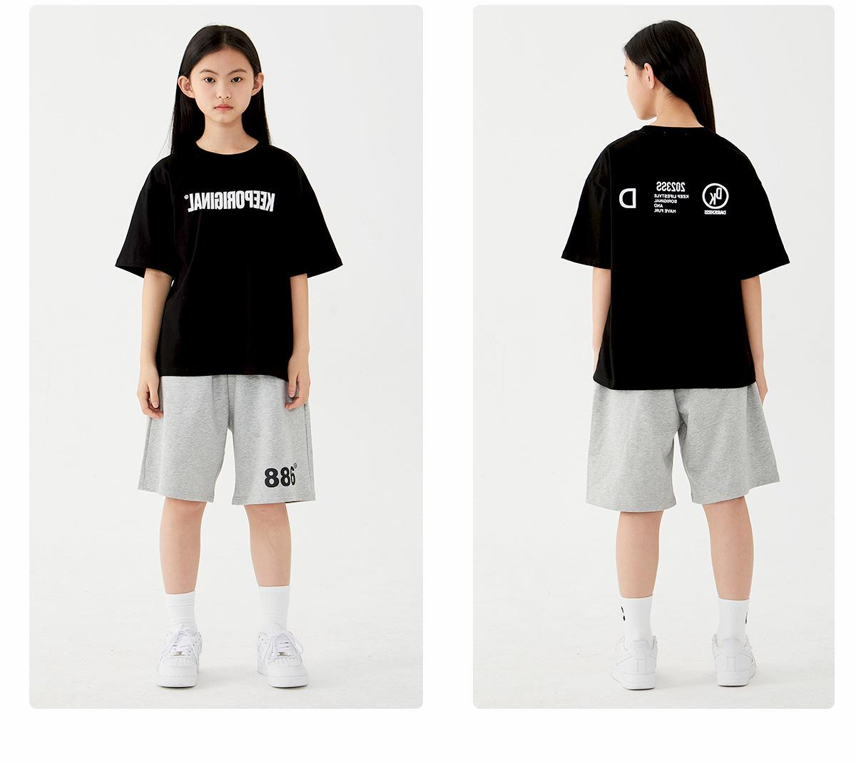 Pantalones cortos deportivos de verano de moda para niños y niñas de DK Children's Wear, ropa exterior para niños, pantalones holgados de cinco puntos de algodón puro, finos