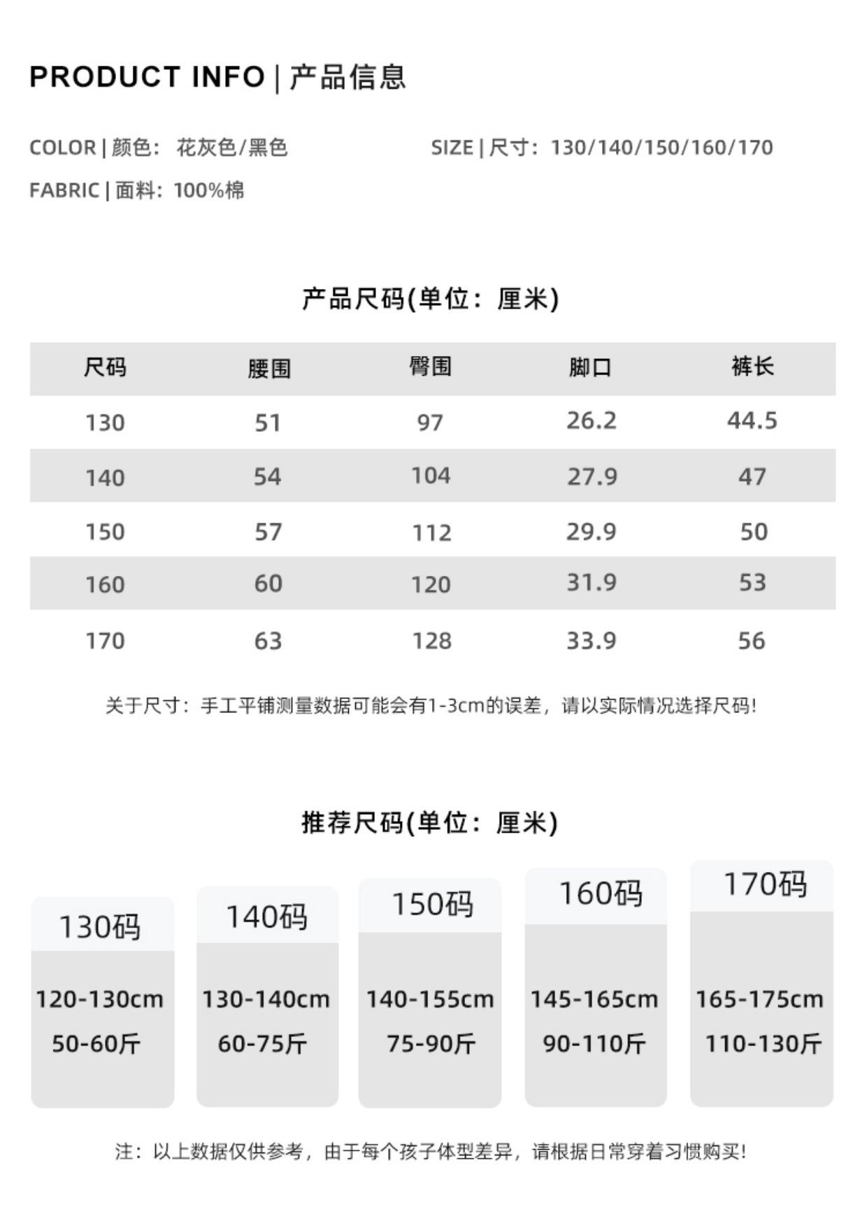 130cm, 140cm, 150cm, 160cm, 170cm
