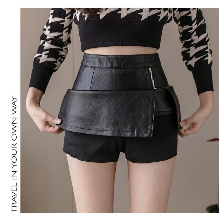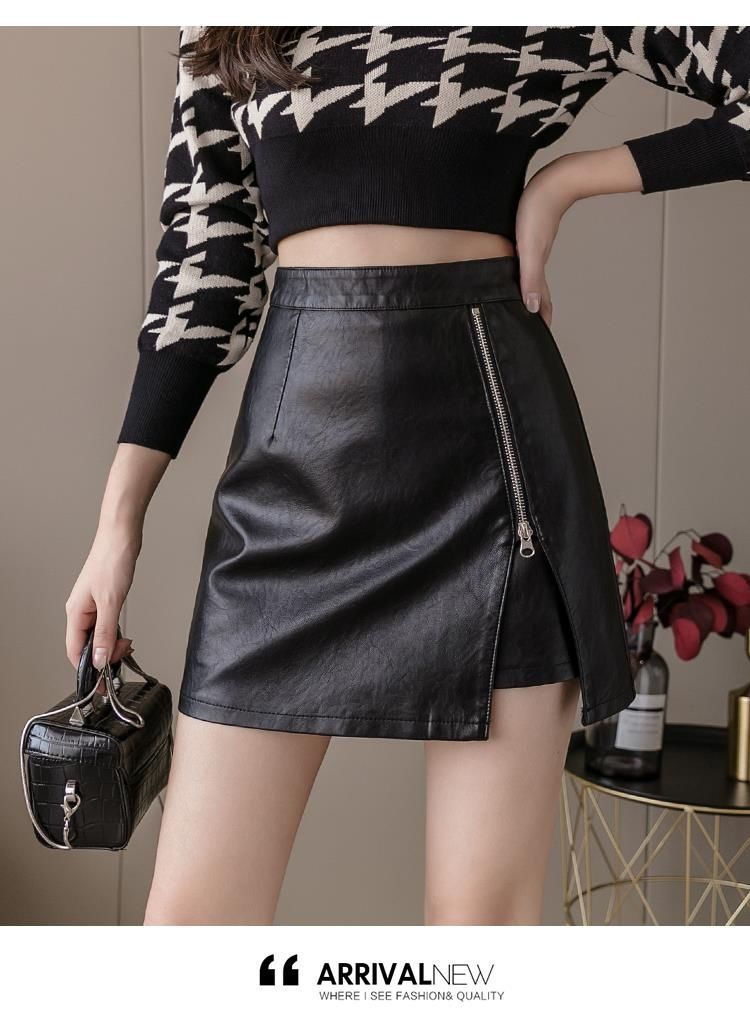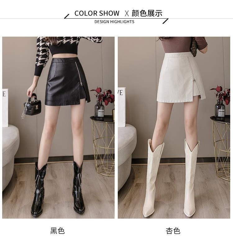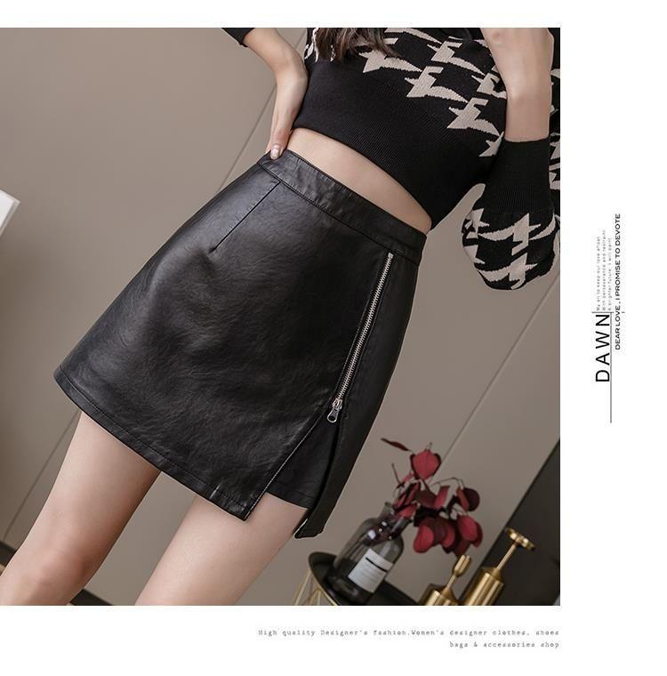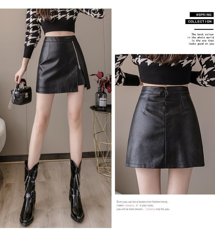 Falda de Cuero Pequeña Falda para Mujer 2022 Otoño e Invierno Nueva Irregular Cintura Alta Falda Antideslizante Falda Línea A Falda Corta Falda de Cadera