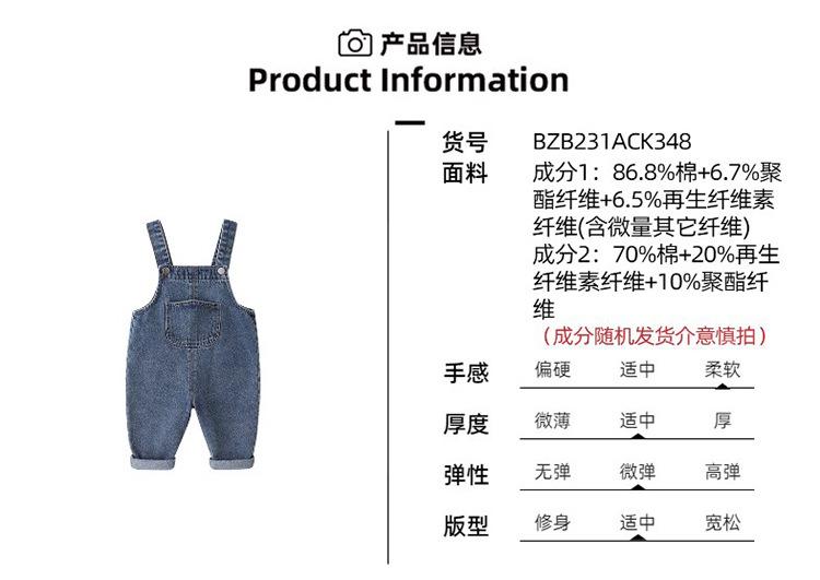 Gray polo sweater spot, Beige white polo sweater spot, Dark blue denim suspenders spot, Light blue jeans spot,...