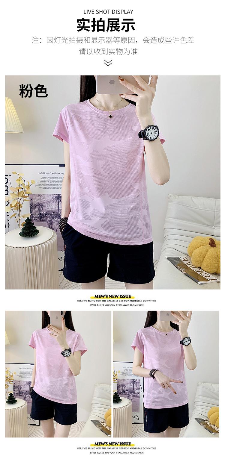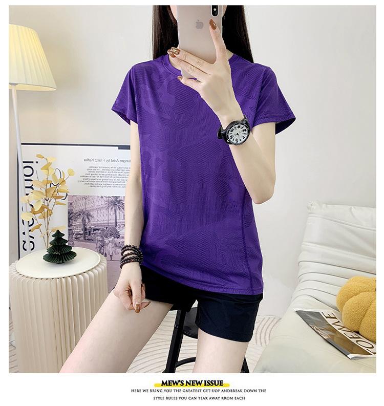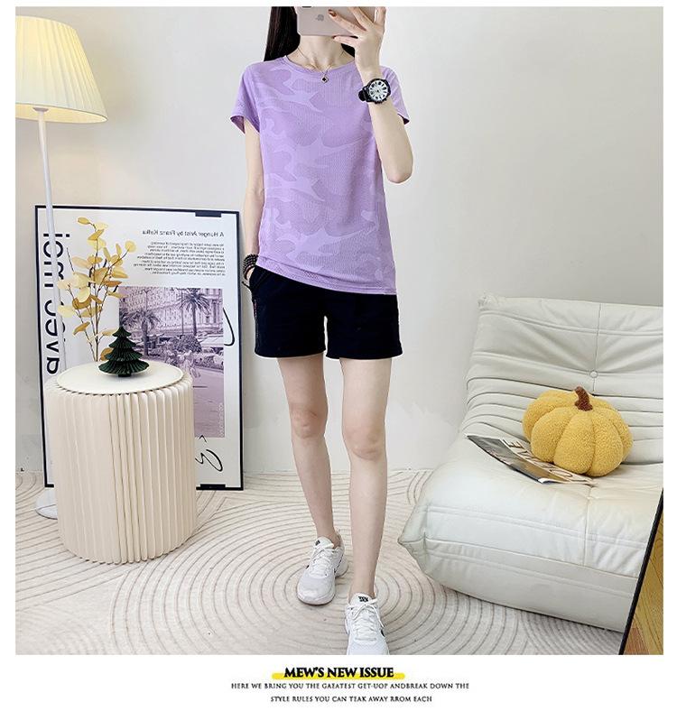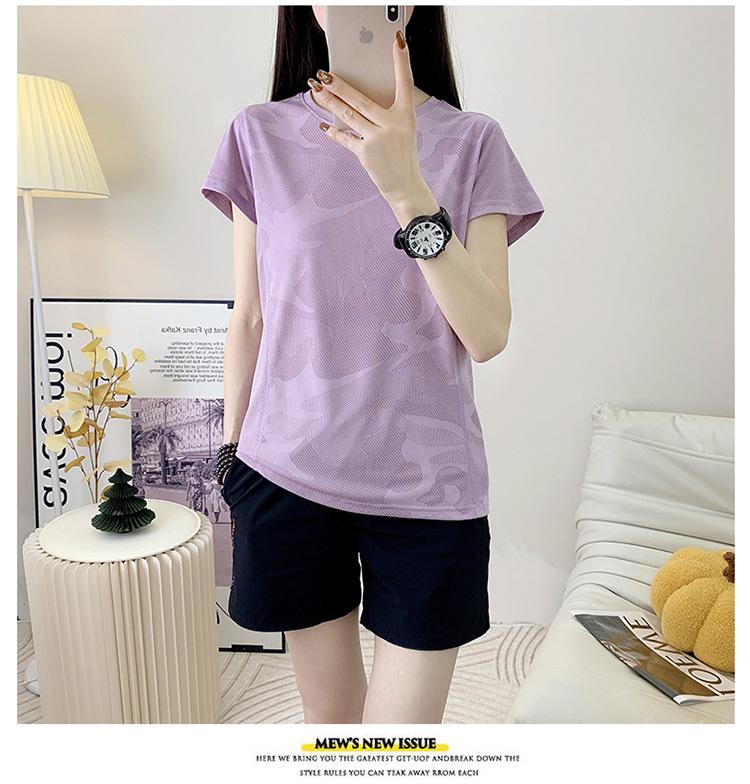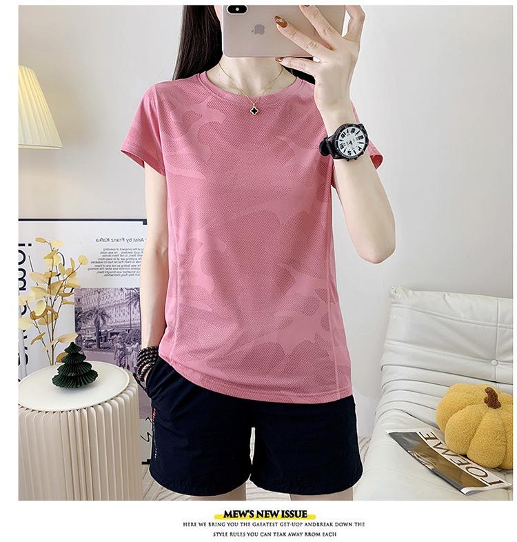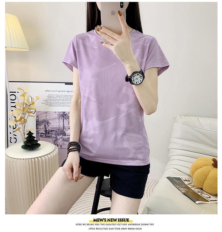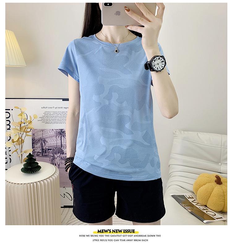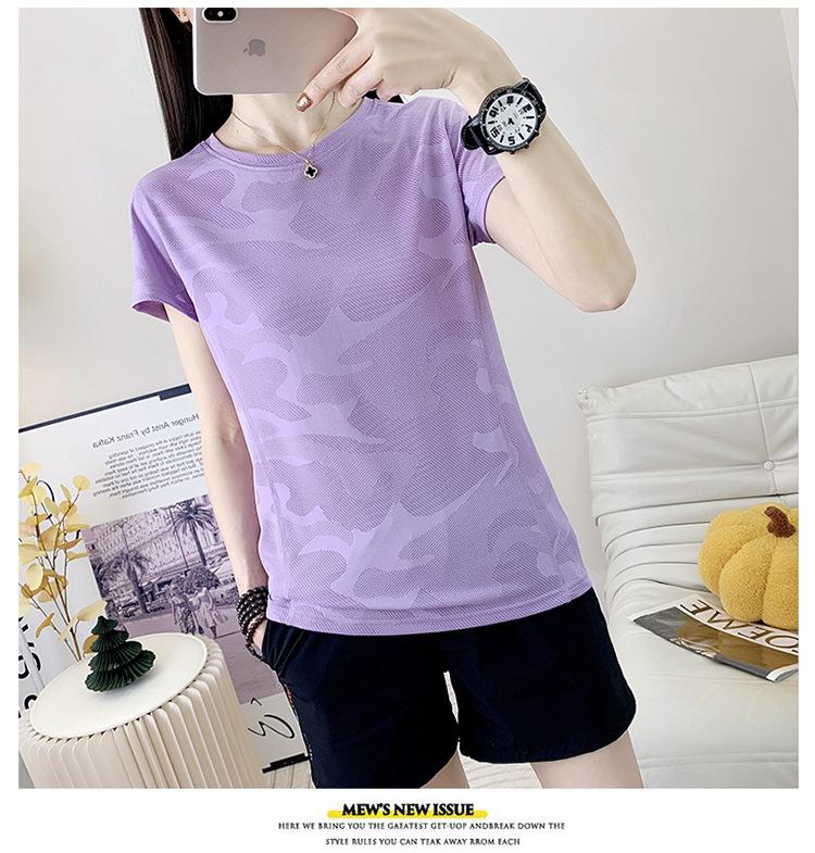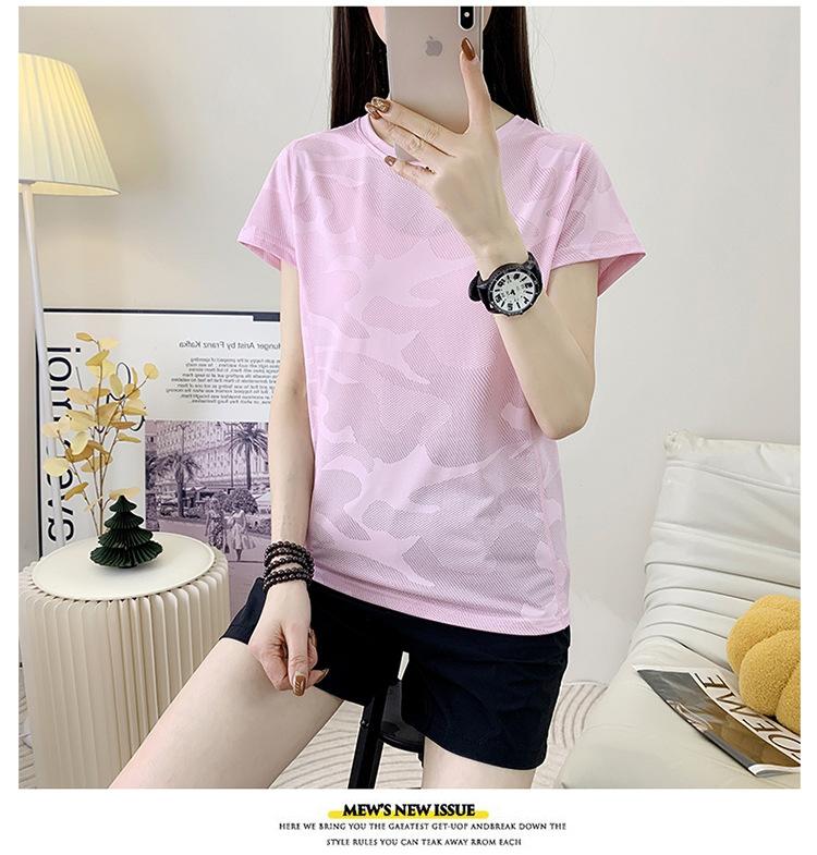 Camiseta de verano 2024 para mujer, de seda de hielo, de manga corta, de camuflaje, holgada, combinable, informal, fina, deportiva, informal