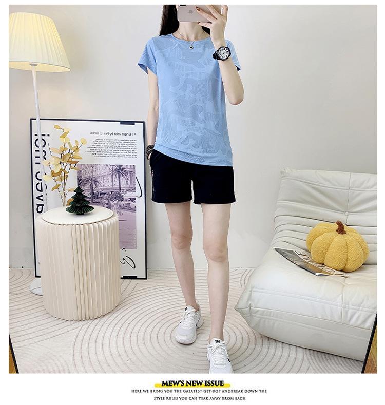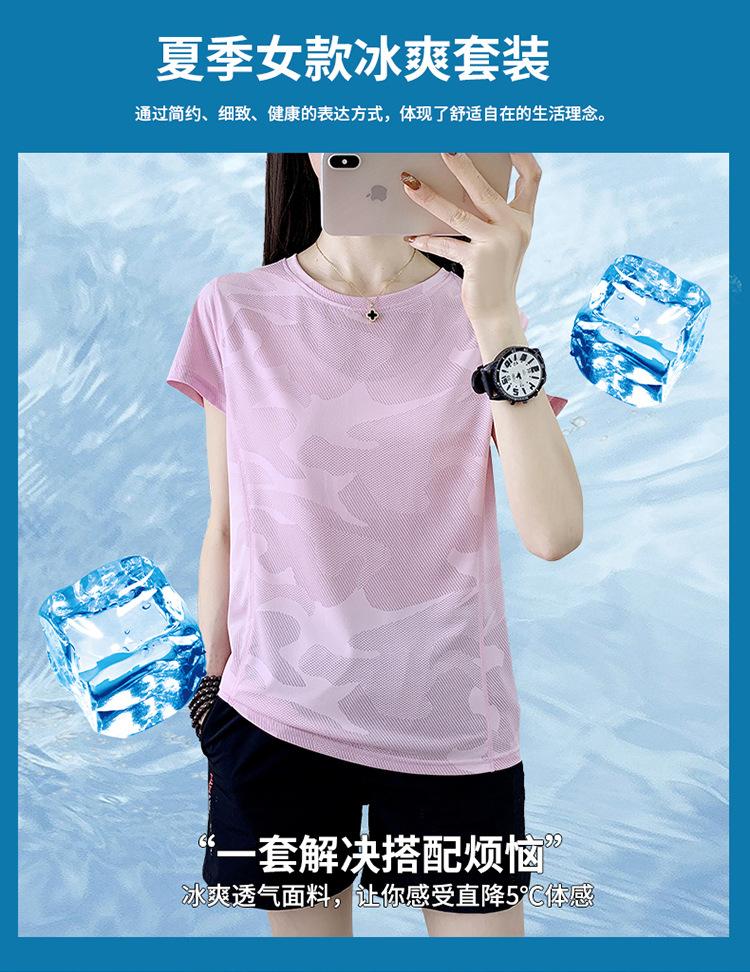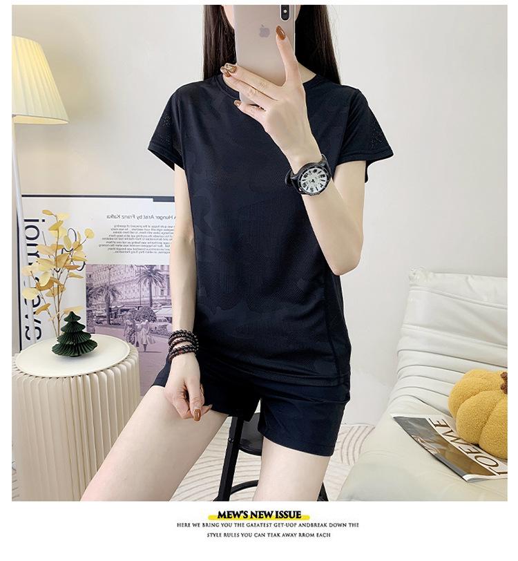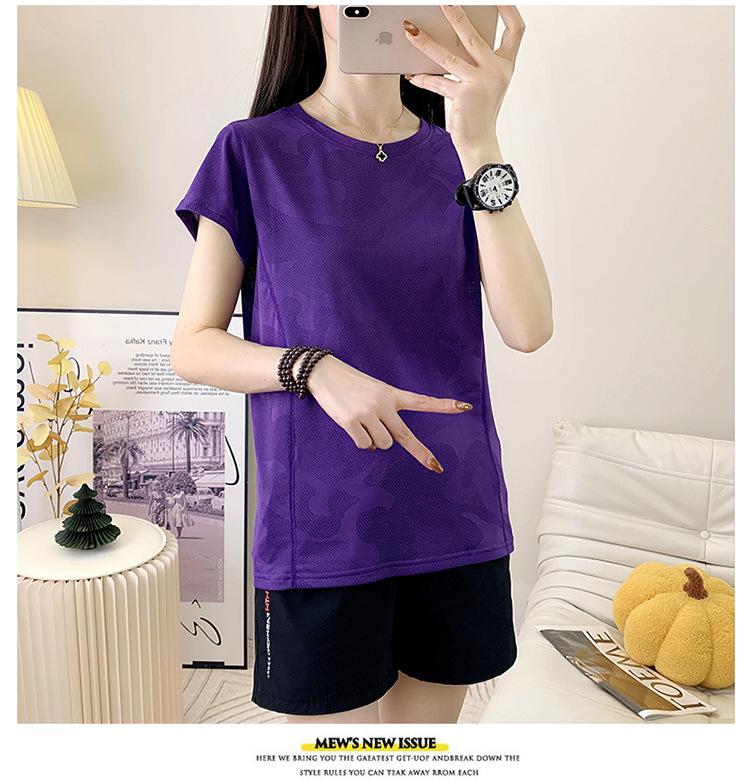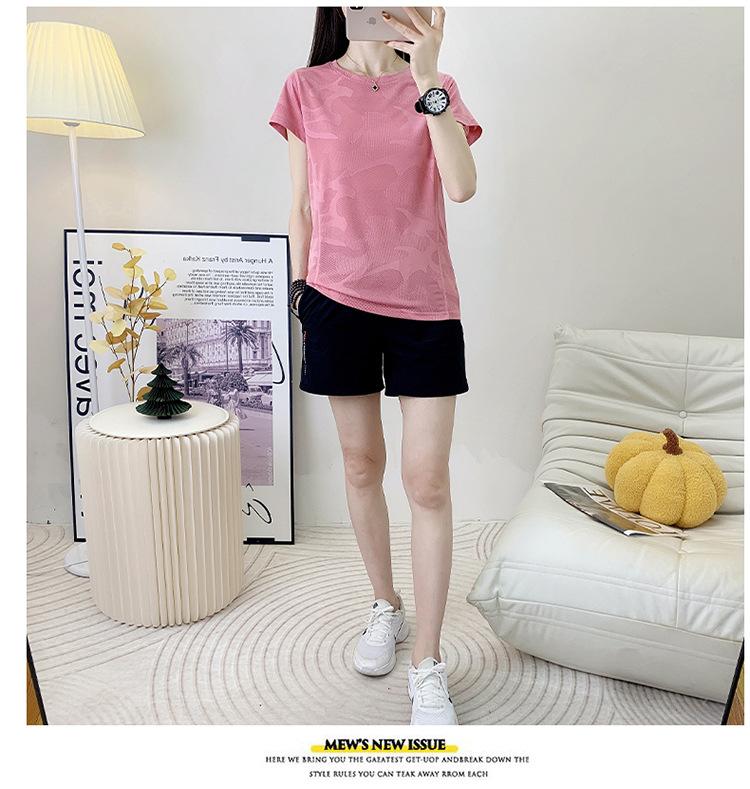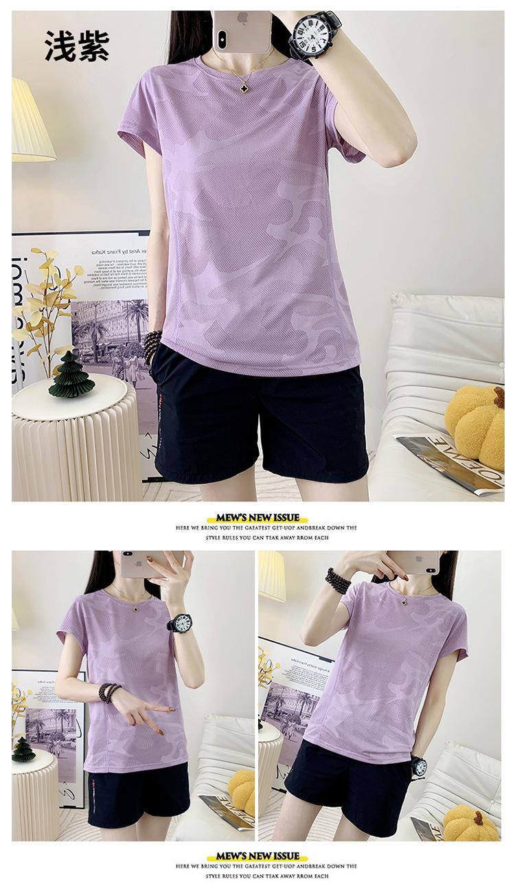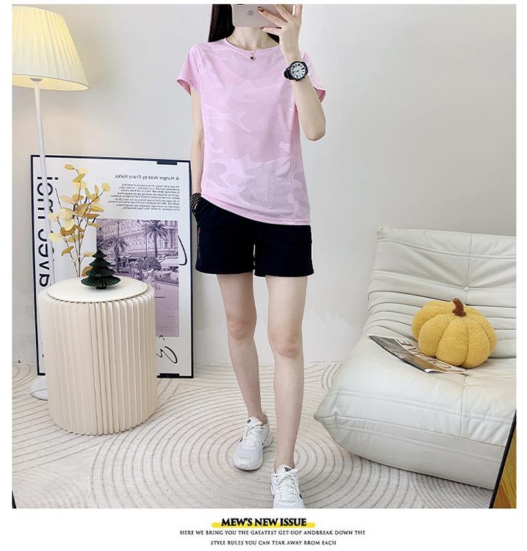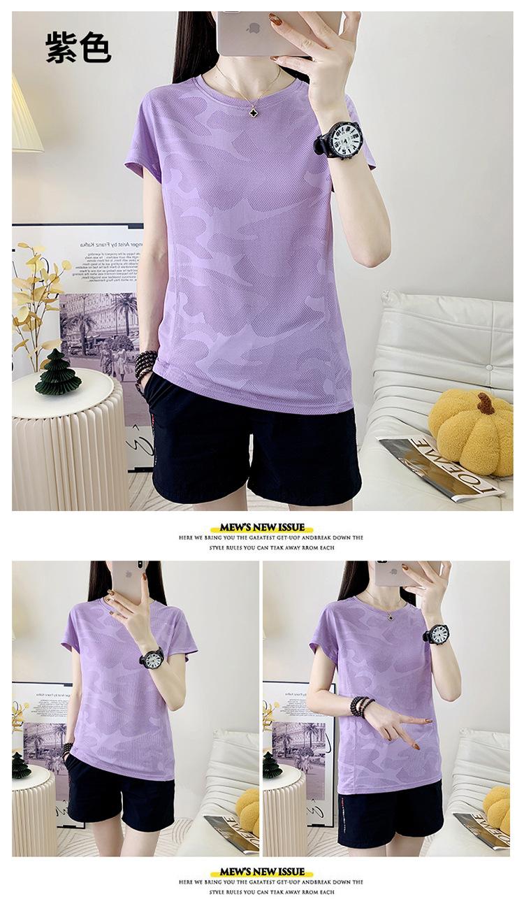 Camiseta de verano 2024 para mujer, de seda de hielo, de manga corta, de camuflaje, holgada, combinable, informal, fina, deportiva, informal