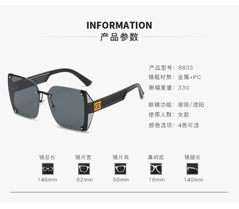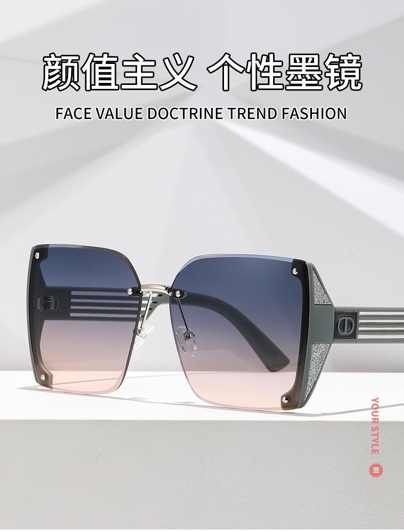 Nuevas gafas de sol de moda de metal sin montura estilo europeo y americano 2024, gafas de sol lisas para mujer, gafas simples, modernas y elegantes