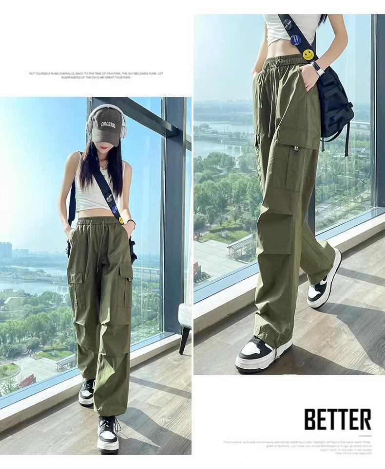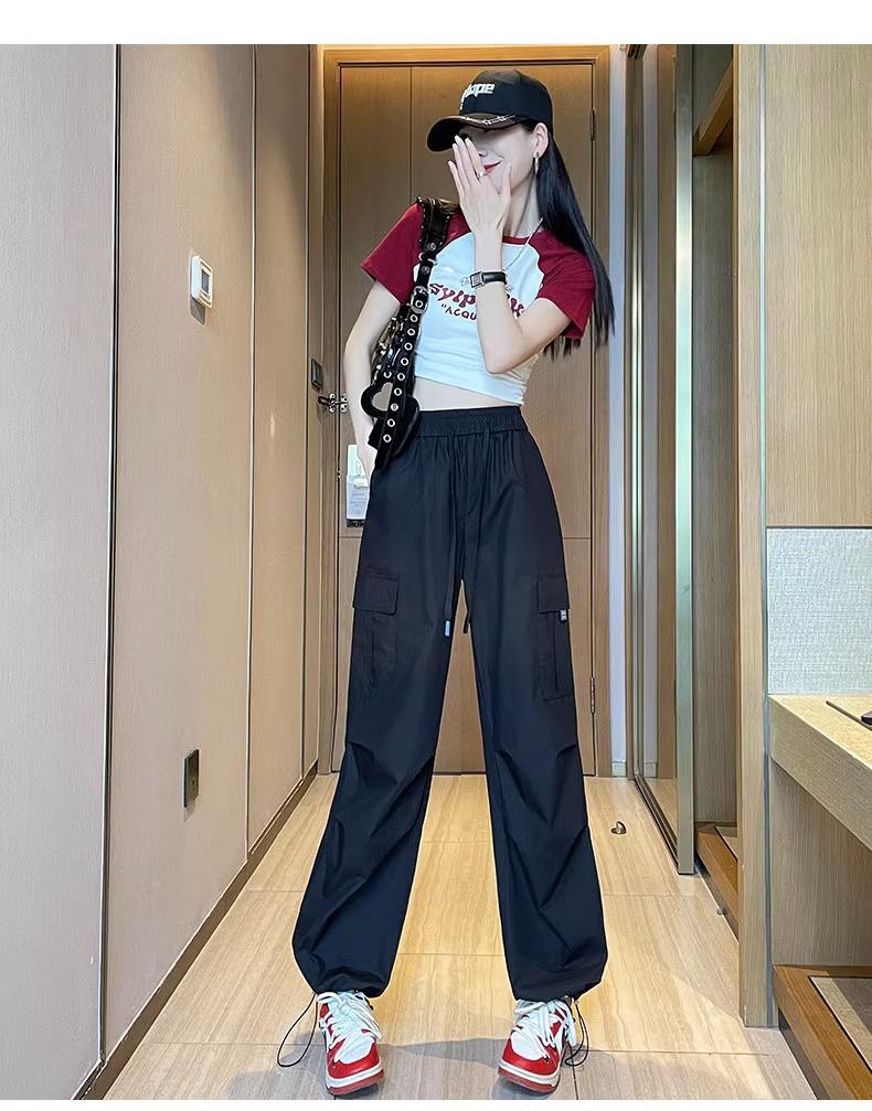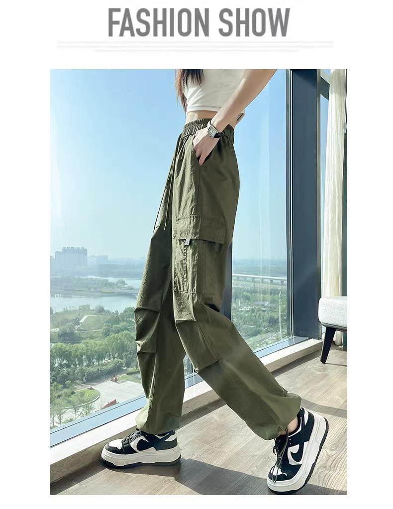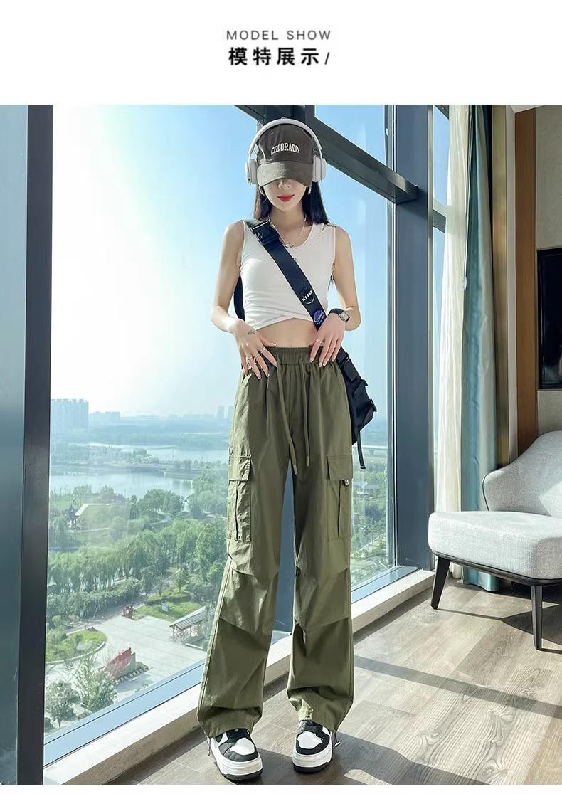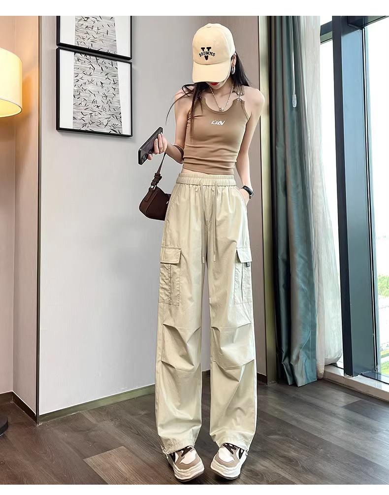 Monos de calle estilo americano para mujer, de verano, nuevos, con cordón, cintura alta, holgados, rectos, de tubo, adelgazantes, informales, modernos.