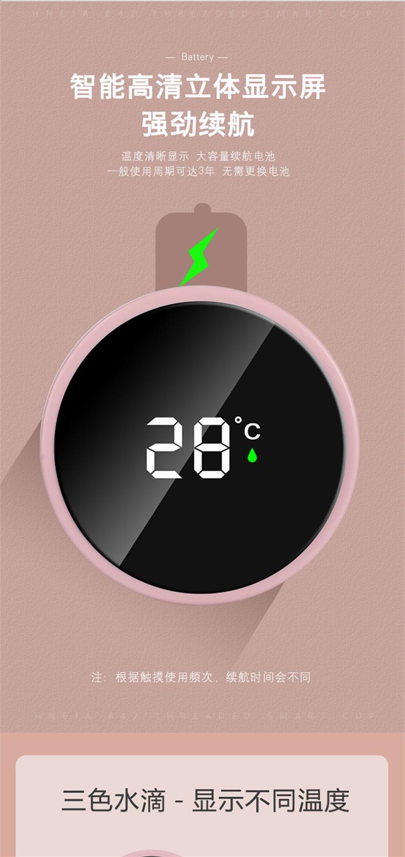 1. Taza inteligente con pantalla de temperatura Hean Ejia B41, diseño de pantalla tridimensional de taza recta, pantalla de temperatura de tres colores.