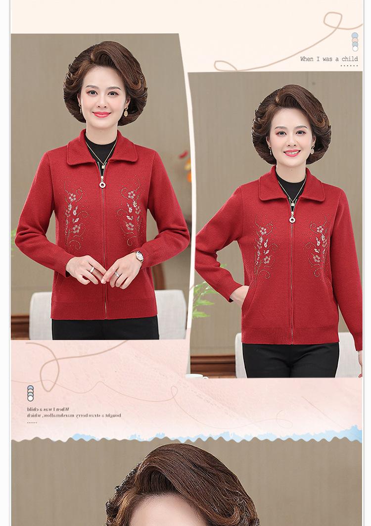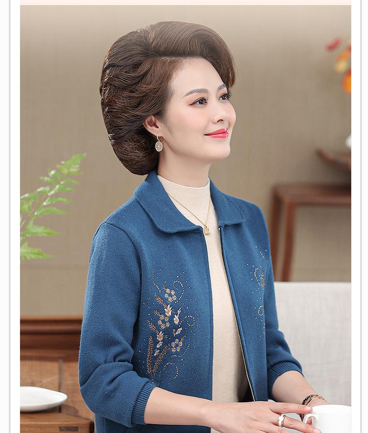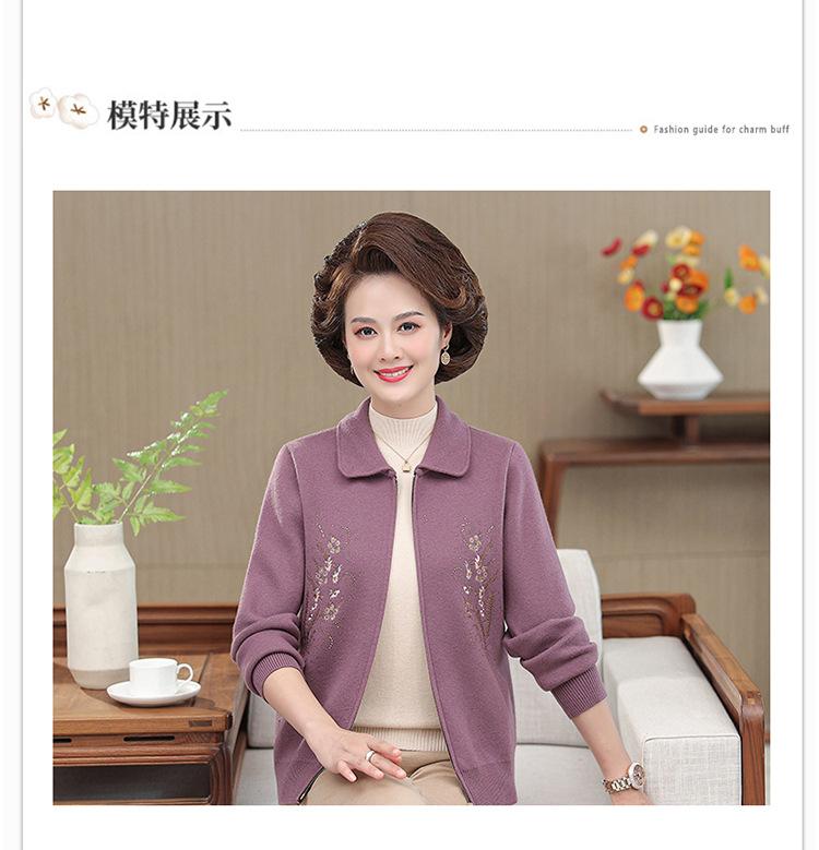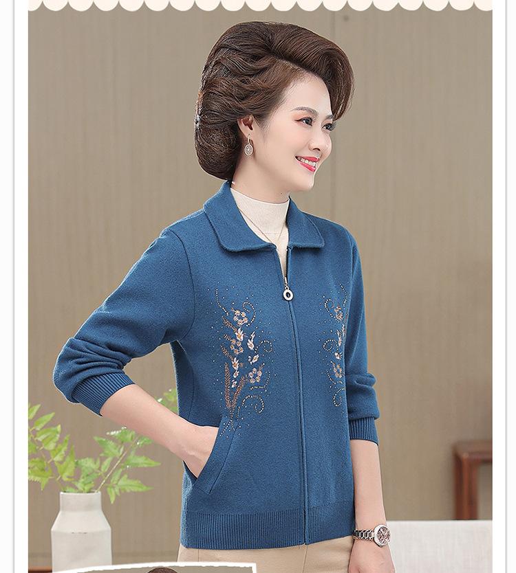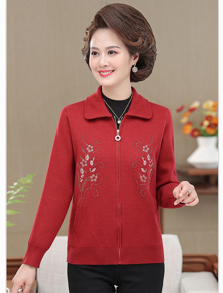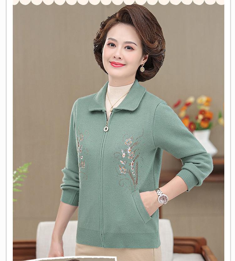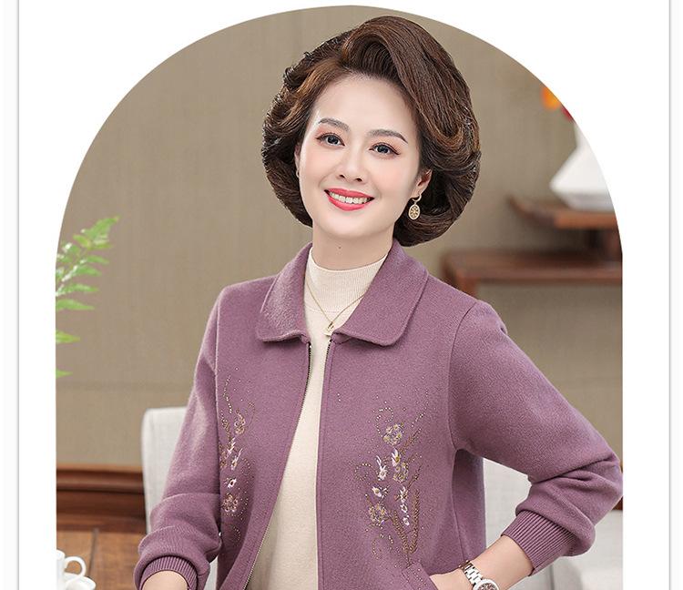 Suéter de Punto con Solapa Color Sólido Bordado Talla Grande para Madre Cárdigan Grueso con Cremallera Abrigo de Otoño e Invierno para Mujeres de Mediana Edad y Ancianas