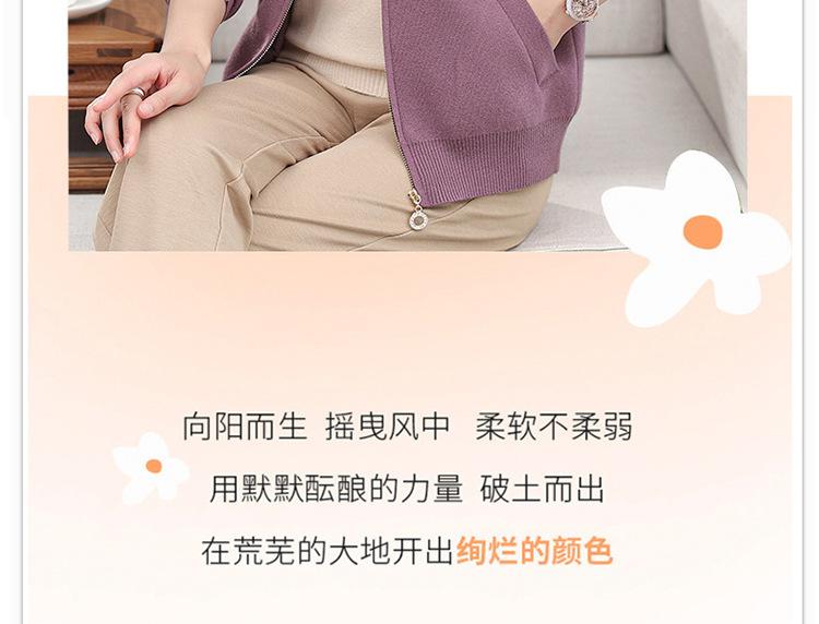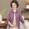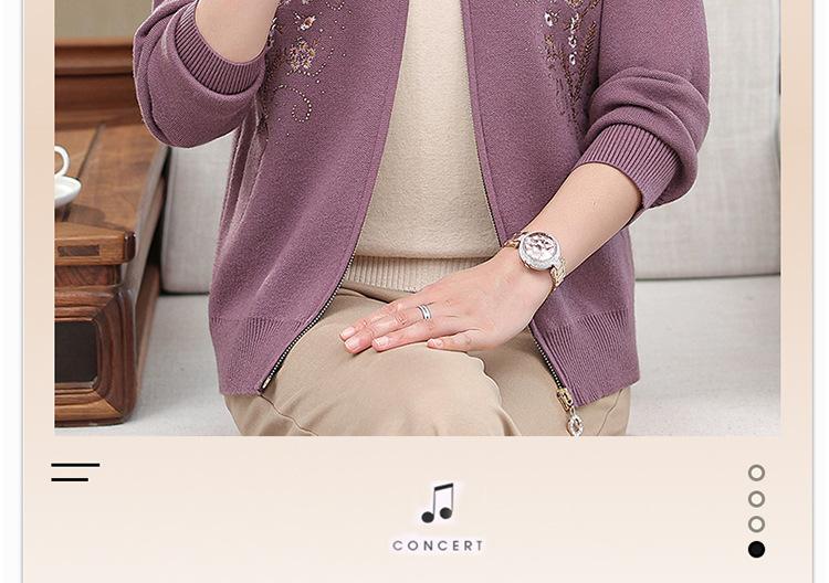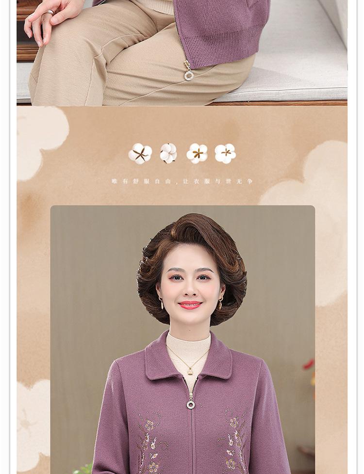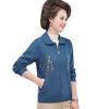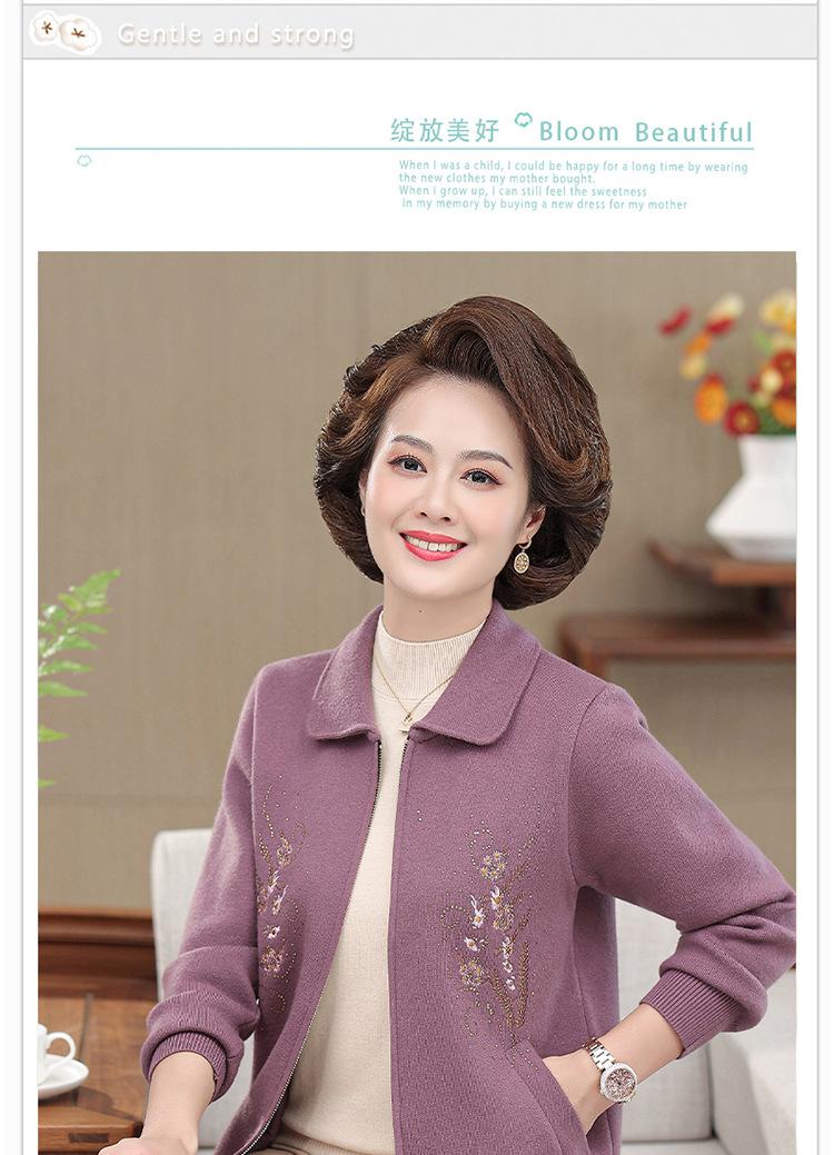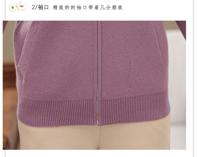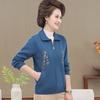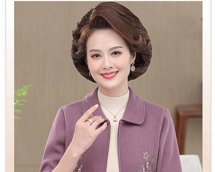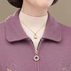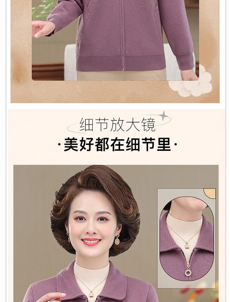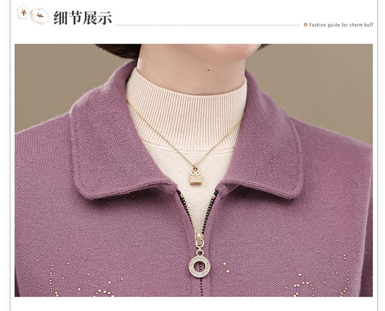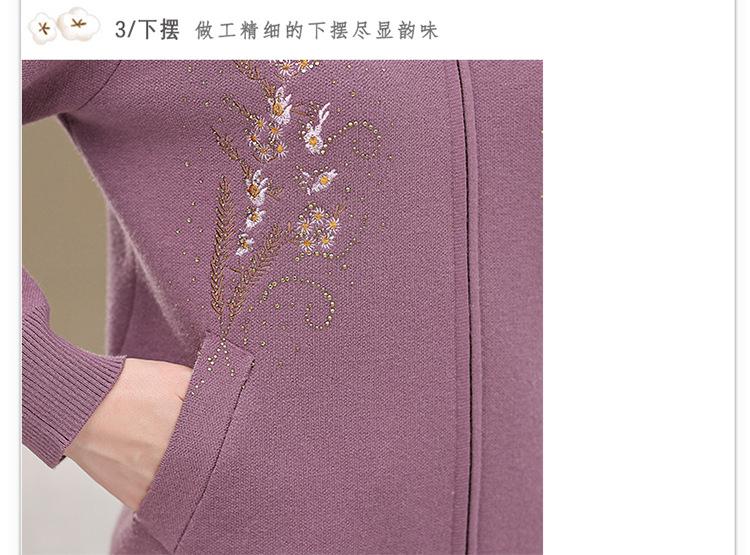 Suéter de Punto con Solapa Color Sólido Bordado Talla Grande para Madre Cárdigan Grueso con Cremallera Abrigo de Otoño e Invierno para Mujeres de Mediana Edad y Ancianas