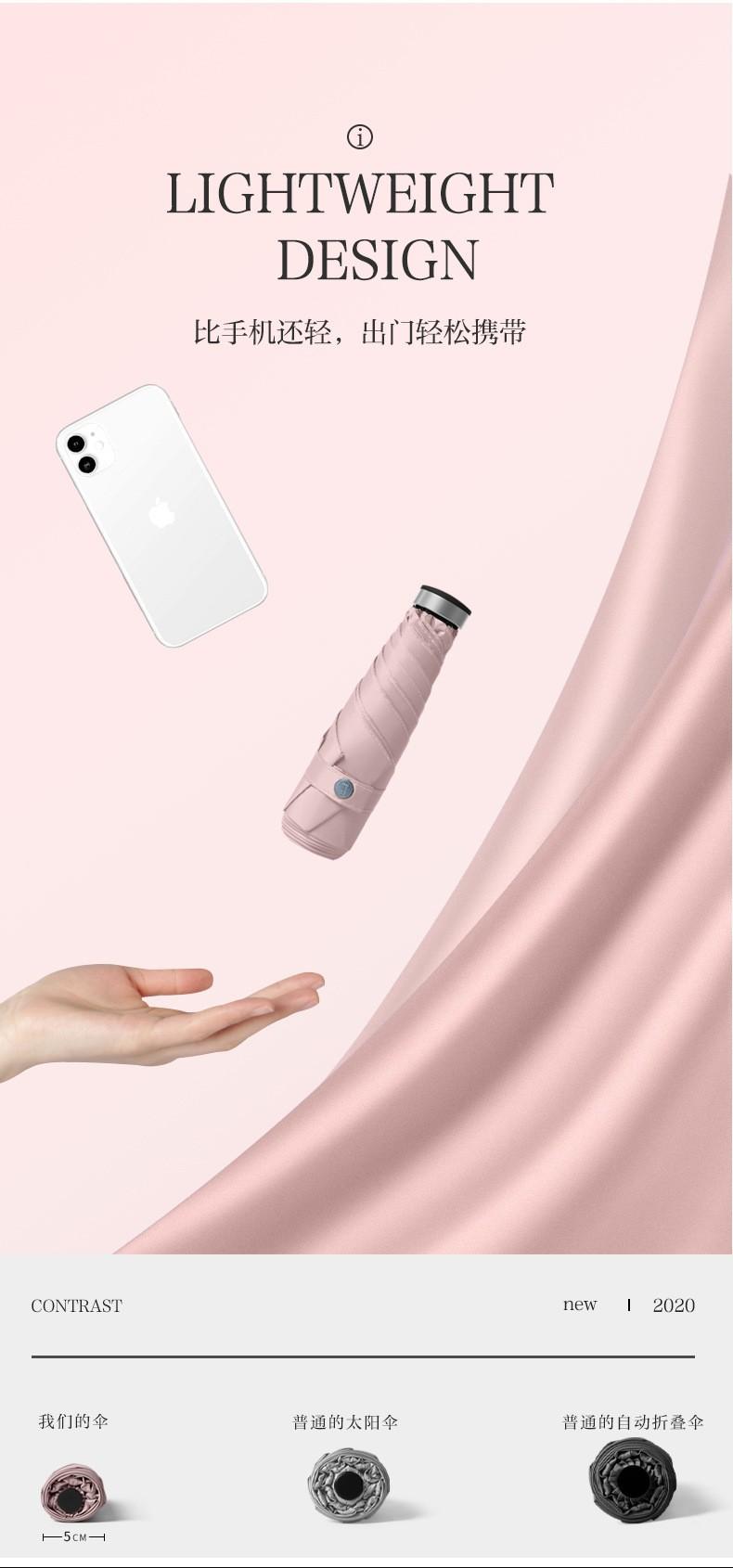 Paraguas Sombrilla Ultraligero 50% Plegable Color Sólido Vinilo Regalo Boutique Portátil con Paraguas de Bolsillo para Mujer Paraguas de Sol para Mujer
