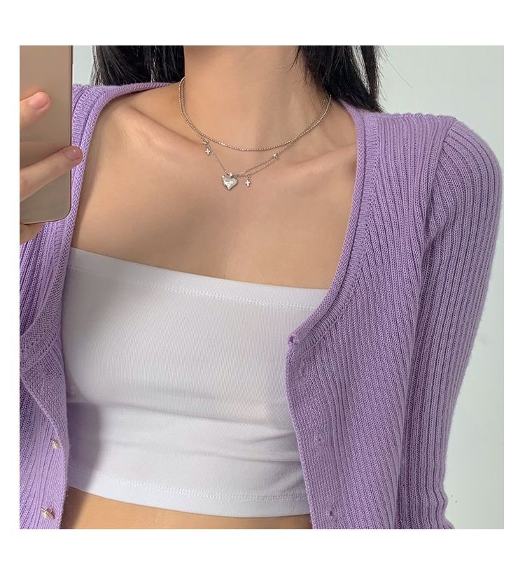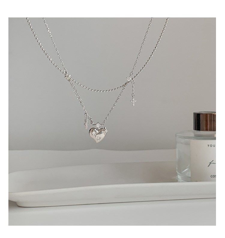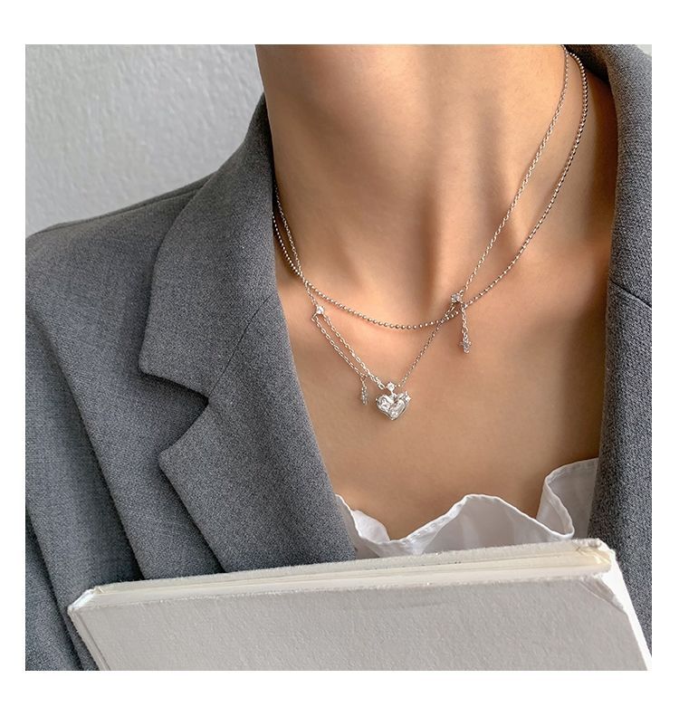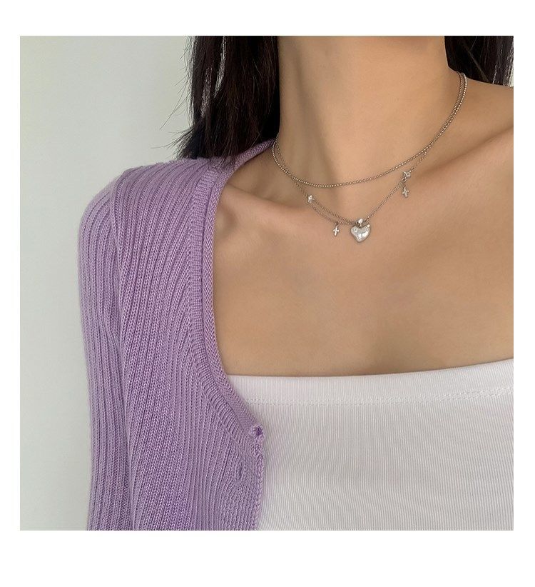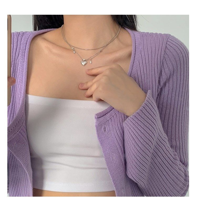 Collar de Diseño Nicho Sentido del Diseño Avanzado Amor Capa Doble Cruz Lujo Ligero Nicho Cadena Clavícula