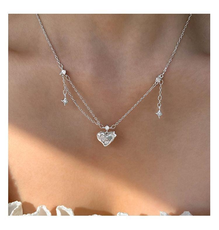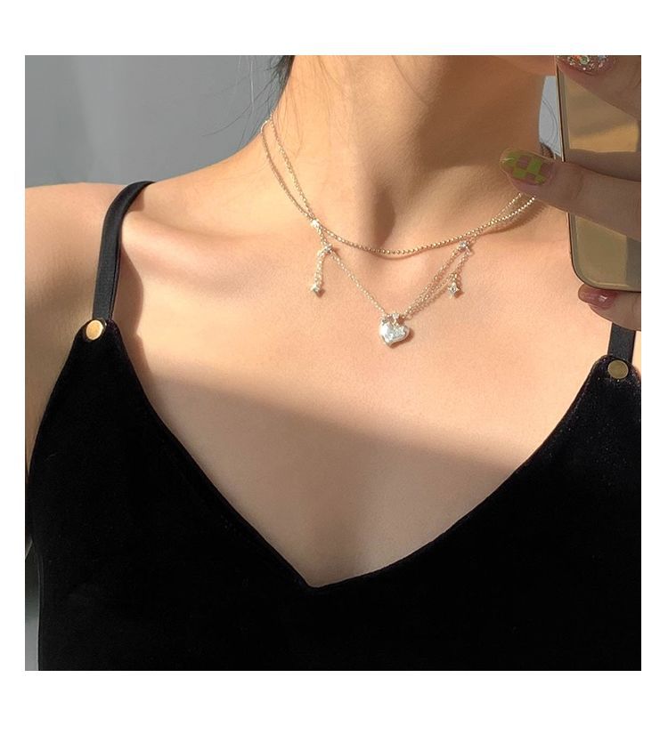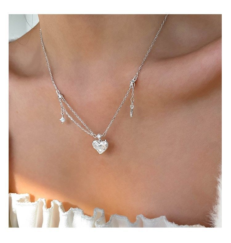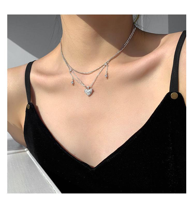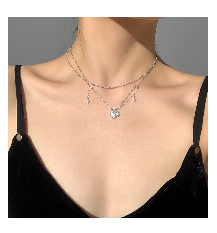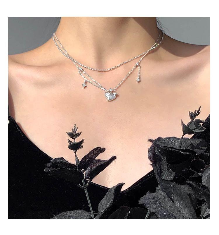 Collar de Diseño Nicho Sentido del Diseño Avanzado Amor Capa Doble Cruz Lujo Ligero Nicho Cadena Clavícula