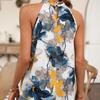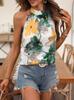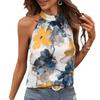 Disponible en stock, blusa con cuello en la espalda y abertura con estampado de flores para mujer, primavera y verano 2024, transfronteriza europea y americana, Amazon