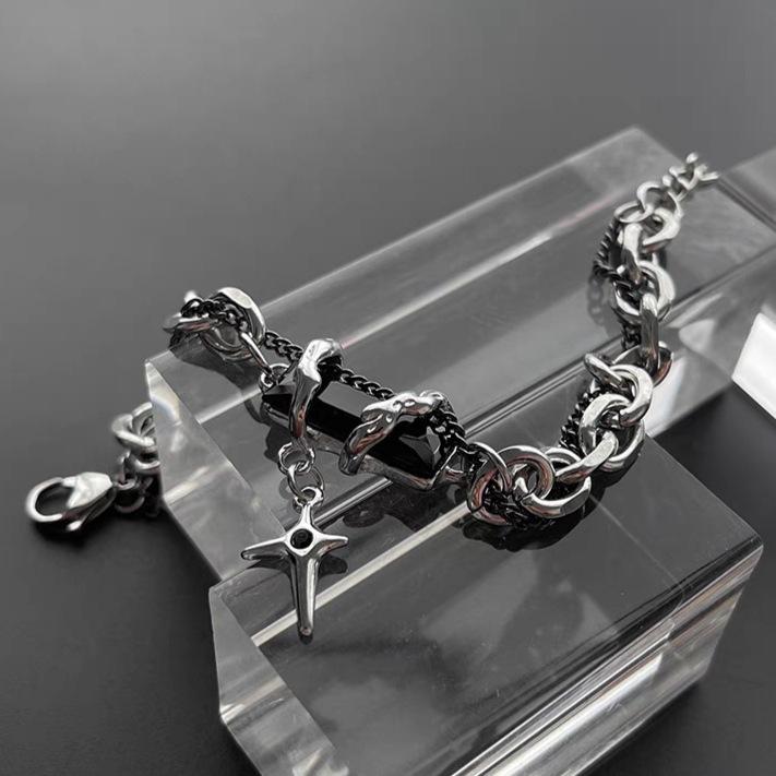 Pulsera de cruz estrella de piedra blanca y negra para hombre y mujer, diseño de nicho ins que combina con todo, lujo ligero, alta gama, pulsera de pareja, moda