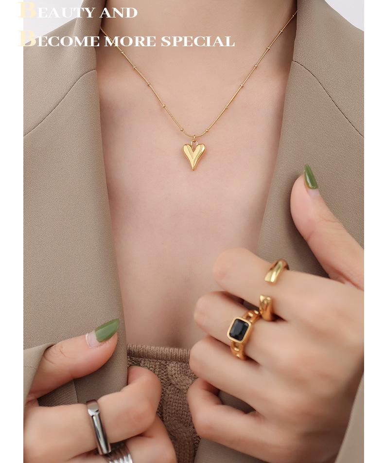 Collar largo con colgante de amor, estilo europeo y americano, con cadena de clavícula chapada en oro puro de 18 quilates y acero de titanio, P575.