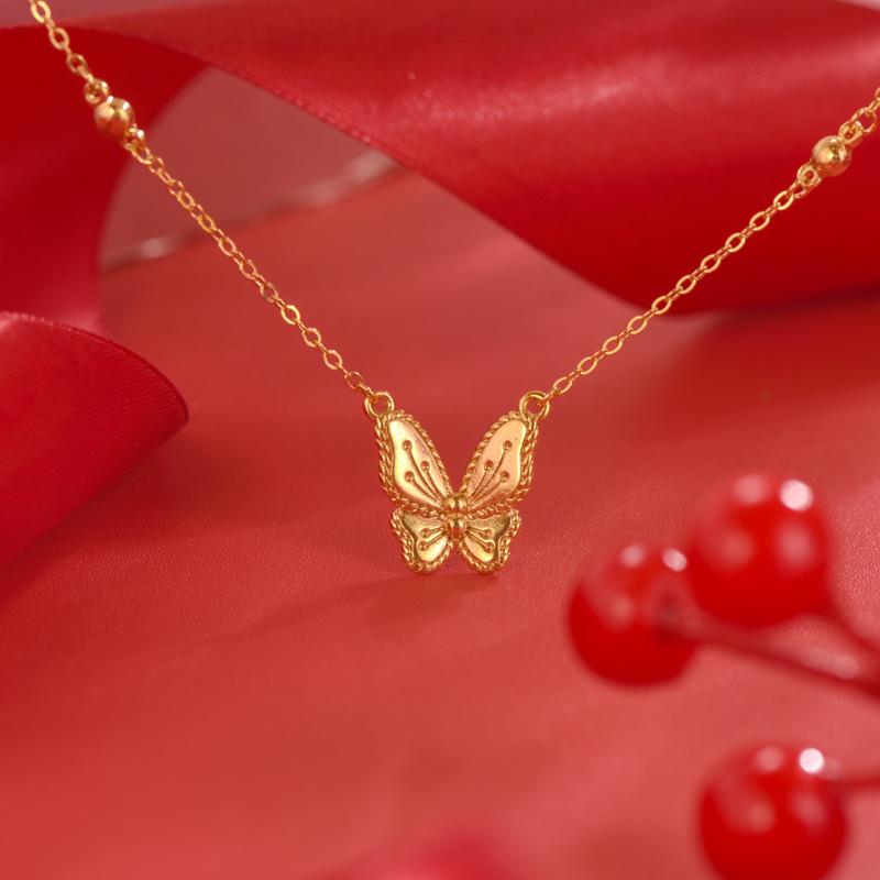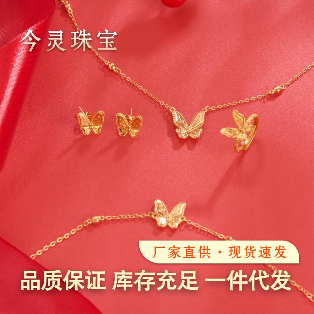 Collar Mariposa Sueño Festival de la Misma Flor y Luna de la Familia Zhou Joyería de Mariposa Chapada en Oro traje Joyería de Alta Gama Aretes