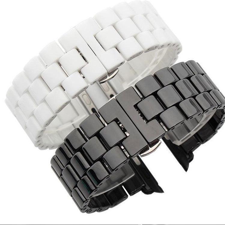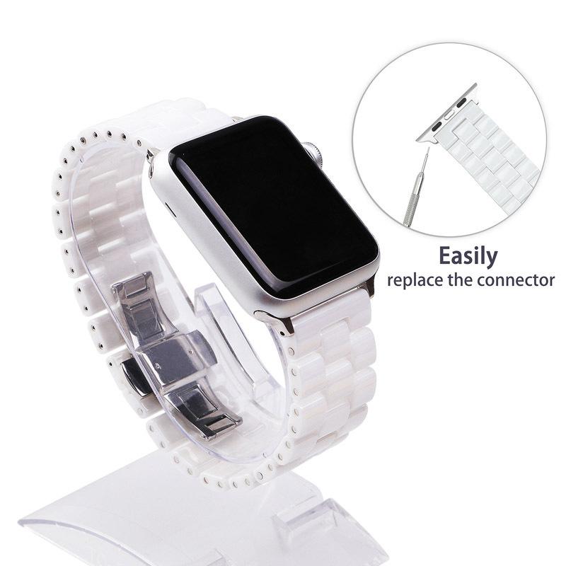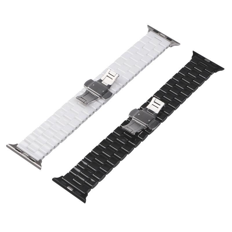 Compatible con Apple Watch, tres cuentas, hebilla de mariposa de cerámica, correa para iWatch S8 de 18/20/22 mm.