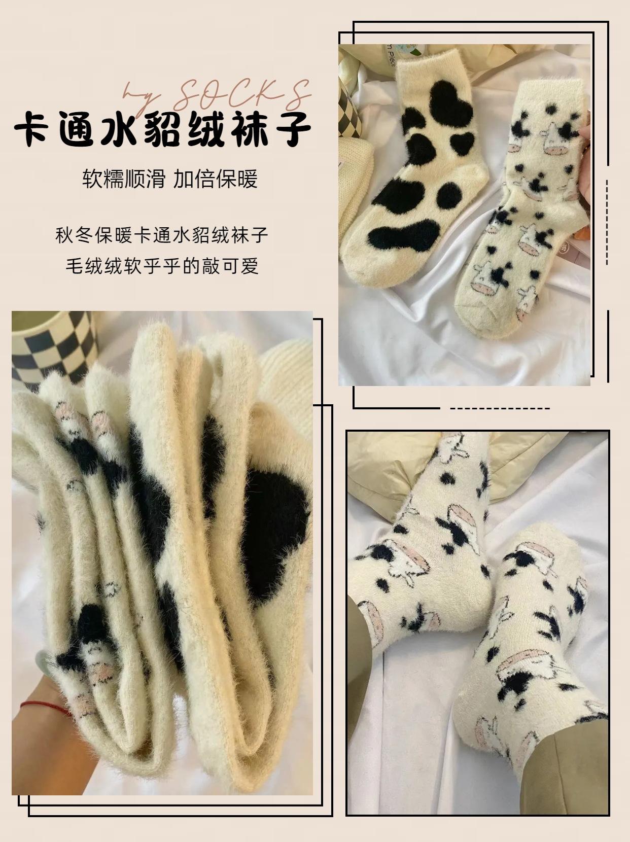 Calcetines de terciopelo coral de otoño e invierno, calcetines para dormir de visón, calcetines de media caña para mujer, gruesos y cálidos con forro polar interior, calcetines de nieve de felpa