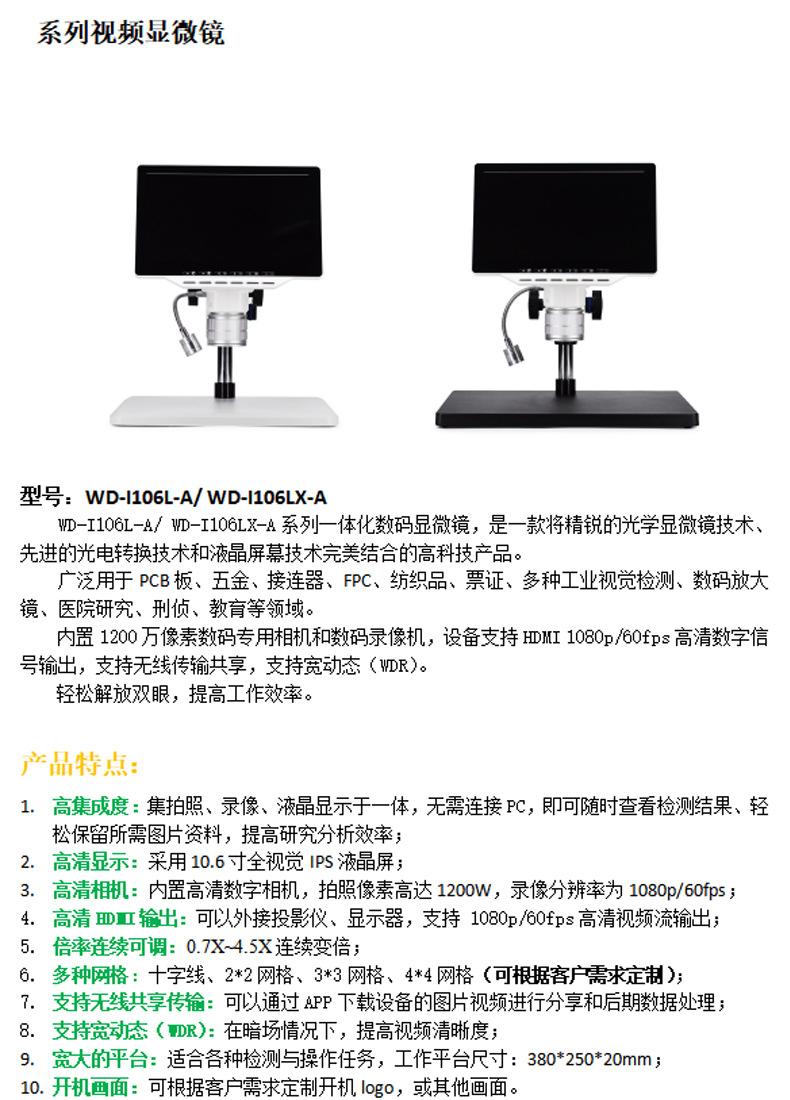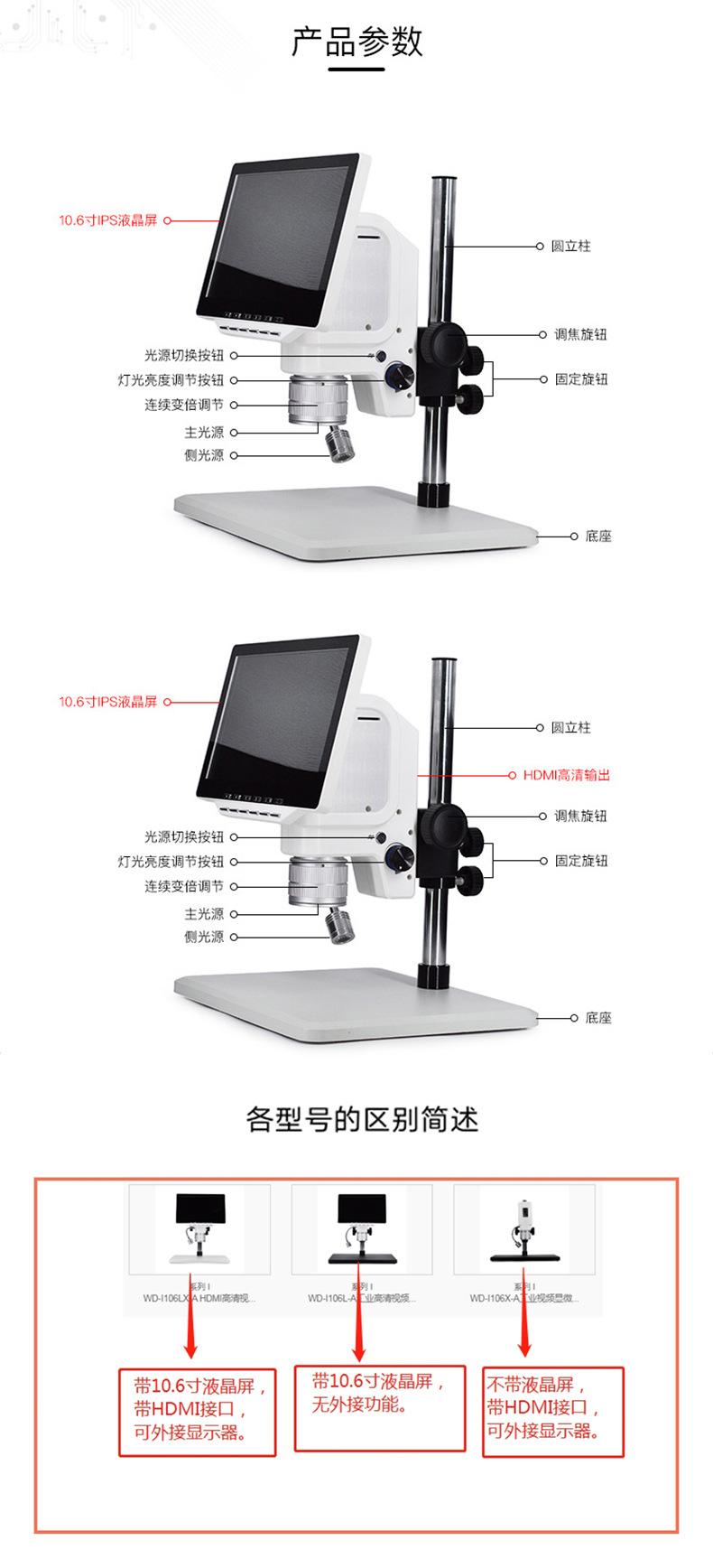 Microscopio industrial con grabación de video en HD para reducir la fatiga visual. Serie wd-i106. Microscopio de video en HD.