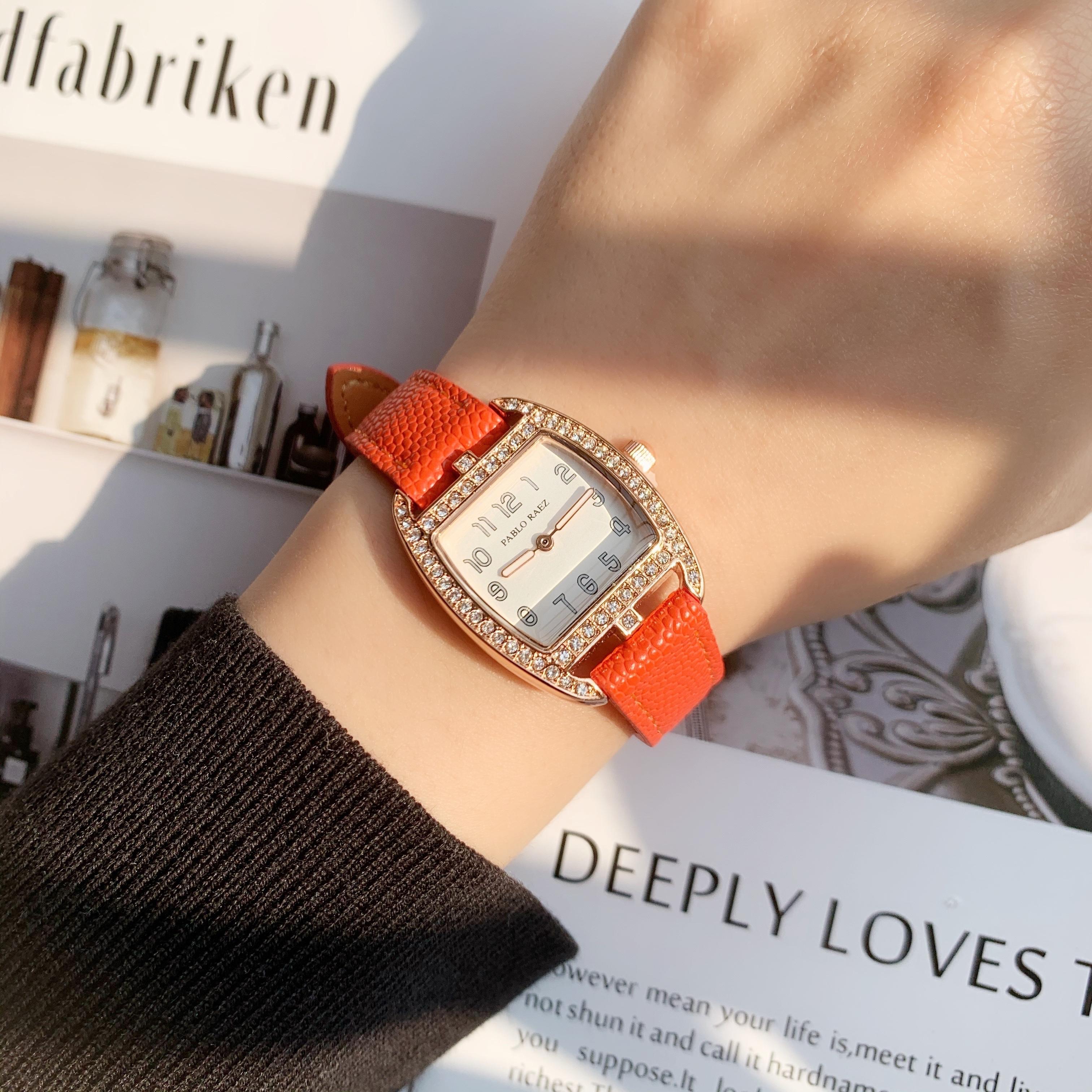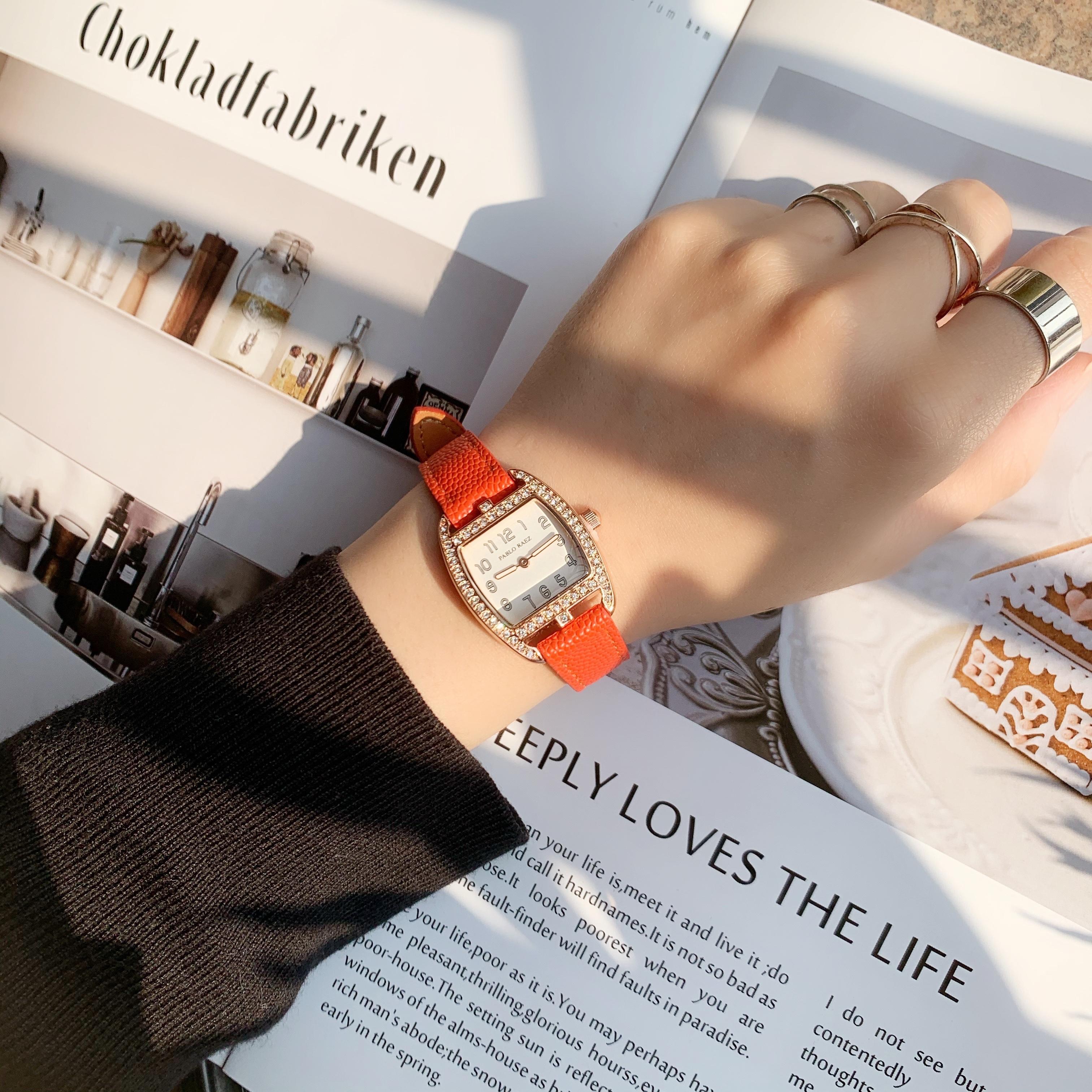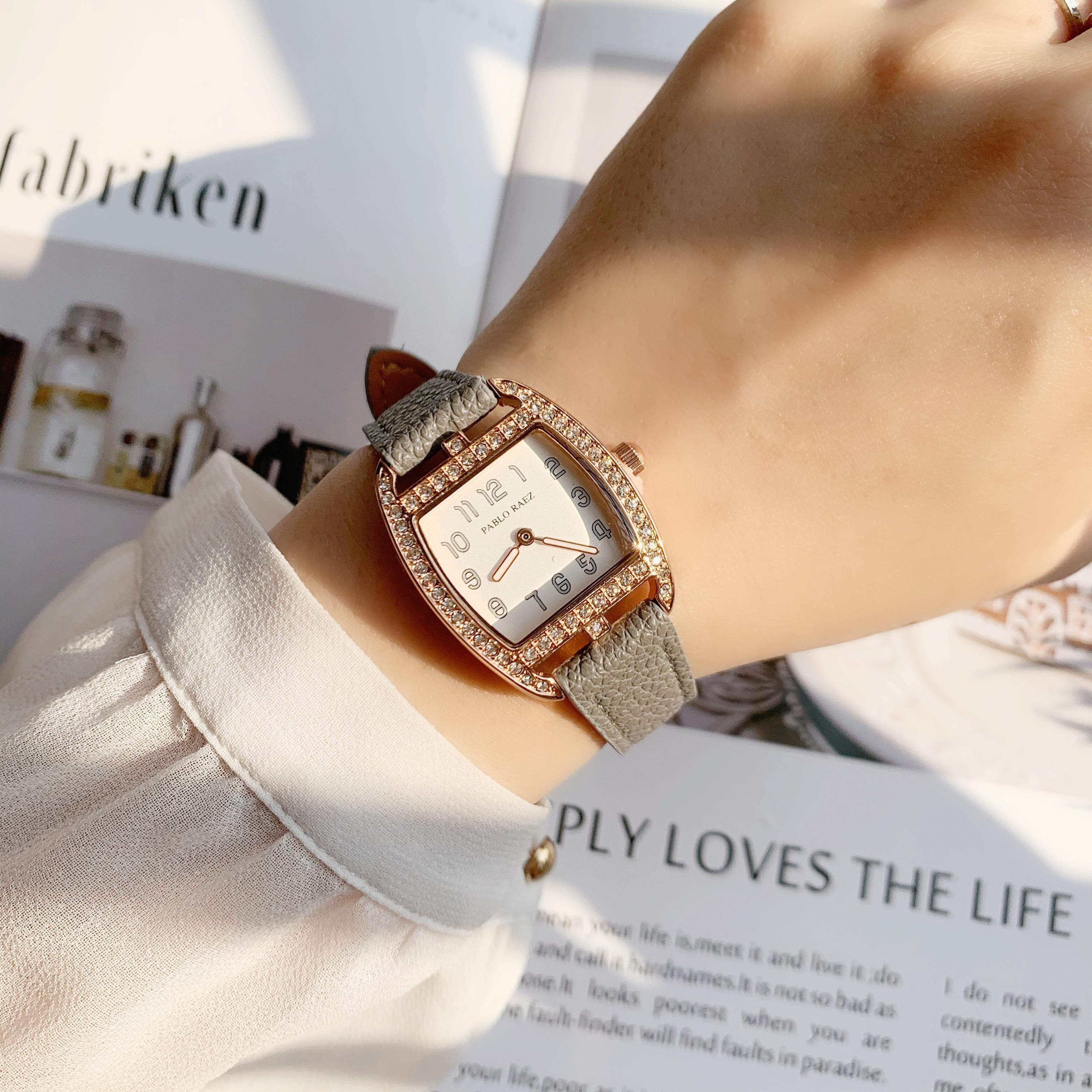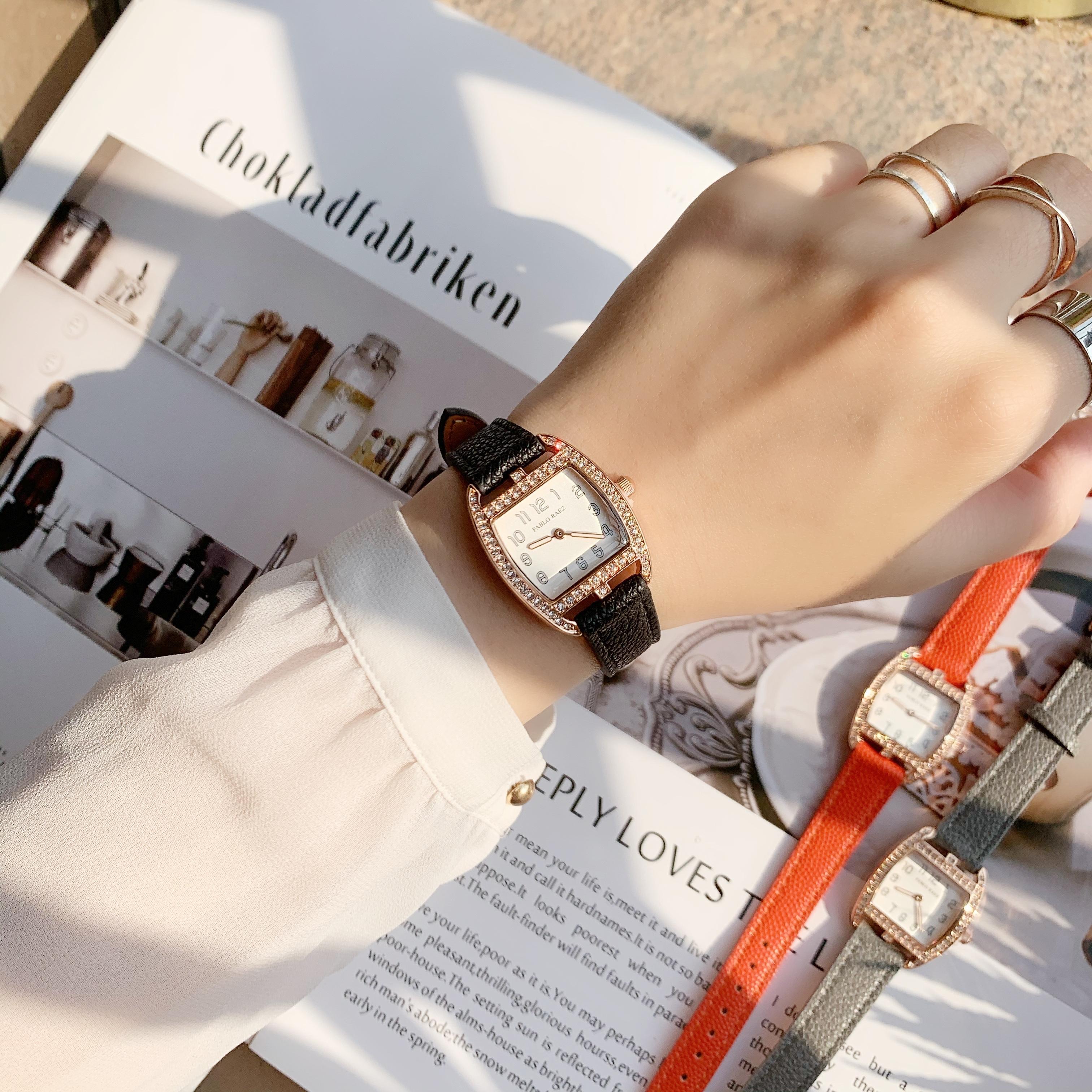 Reloj de mujer estilo vintage INS con correa con patrón de lichi y diamantes, reloj de cuarzo negro, oro rosa, ligero, lujoso, con diamantes.