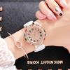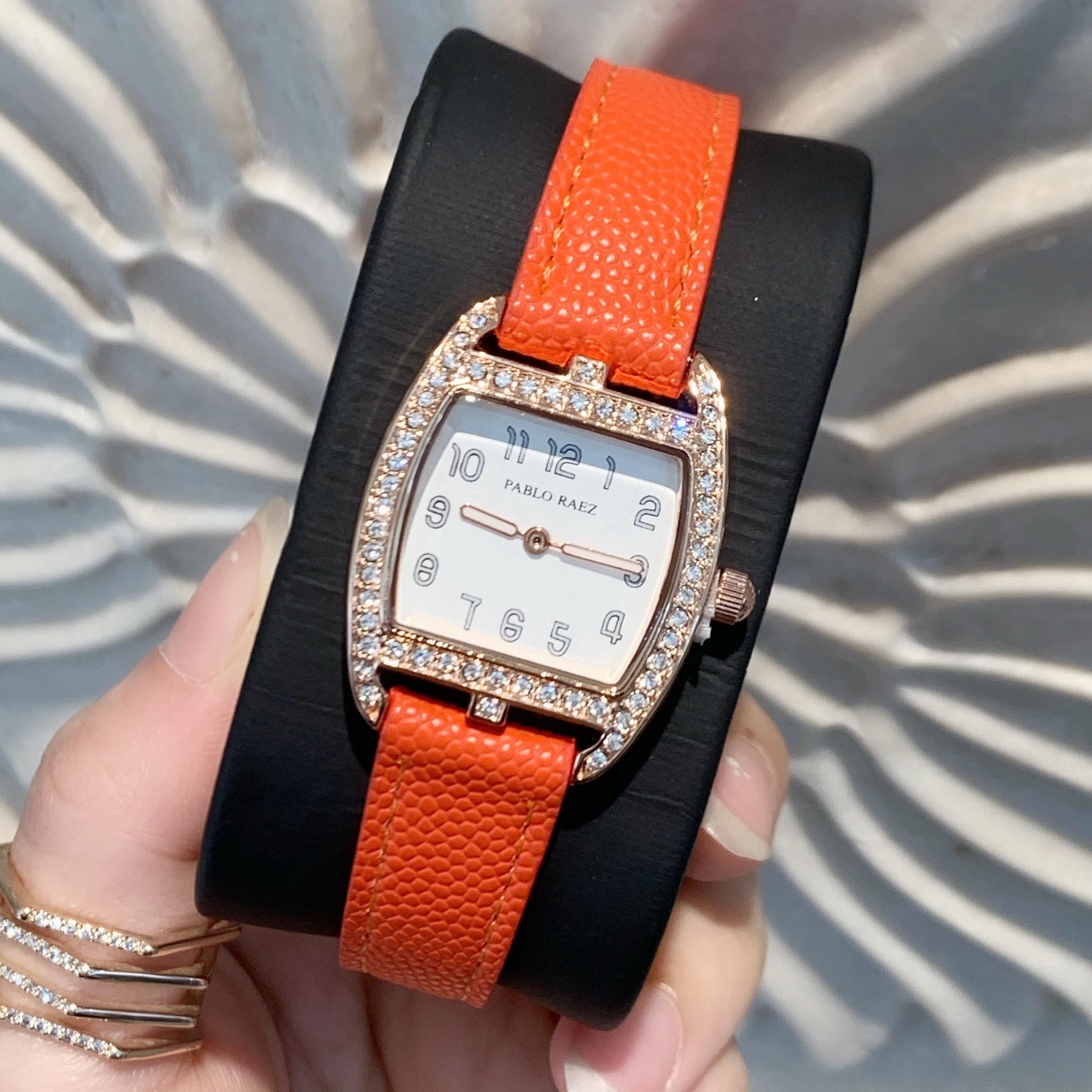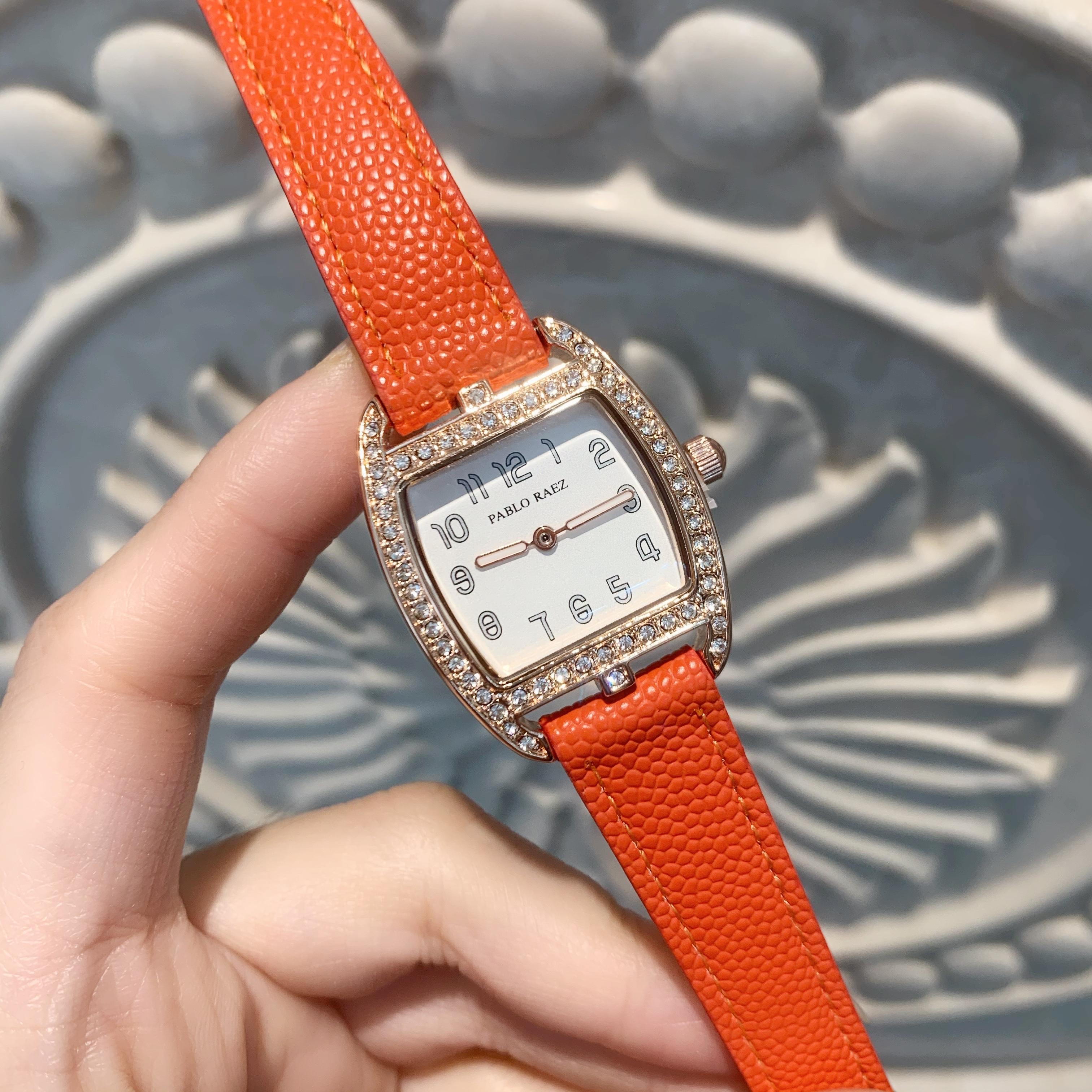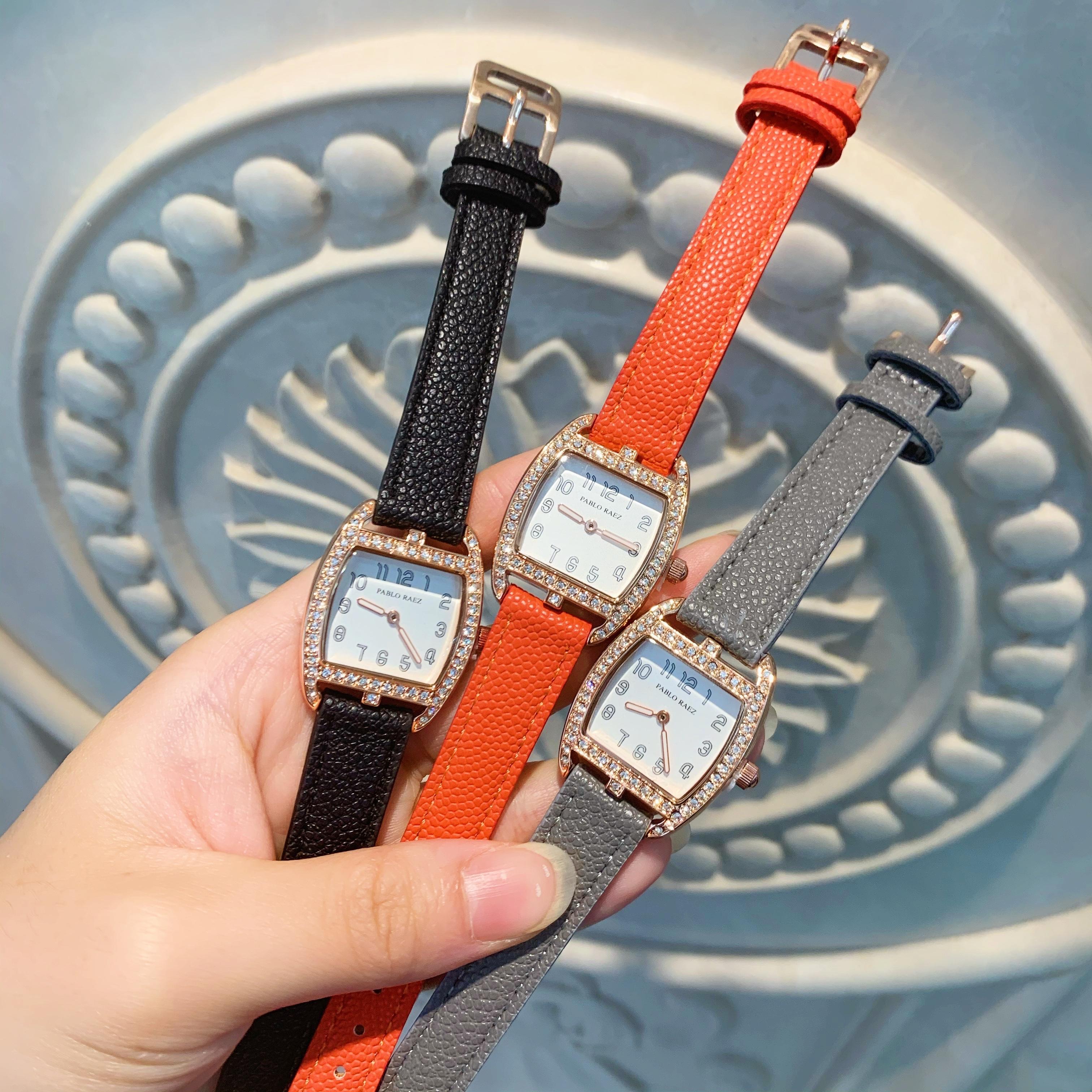 Reloj de mujer estilo vintage INS con correa con patrón de lichi y diamantes, reloj de cuarzo negro, oro rosa, ligero, lujoso, con diamantes.