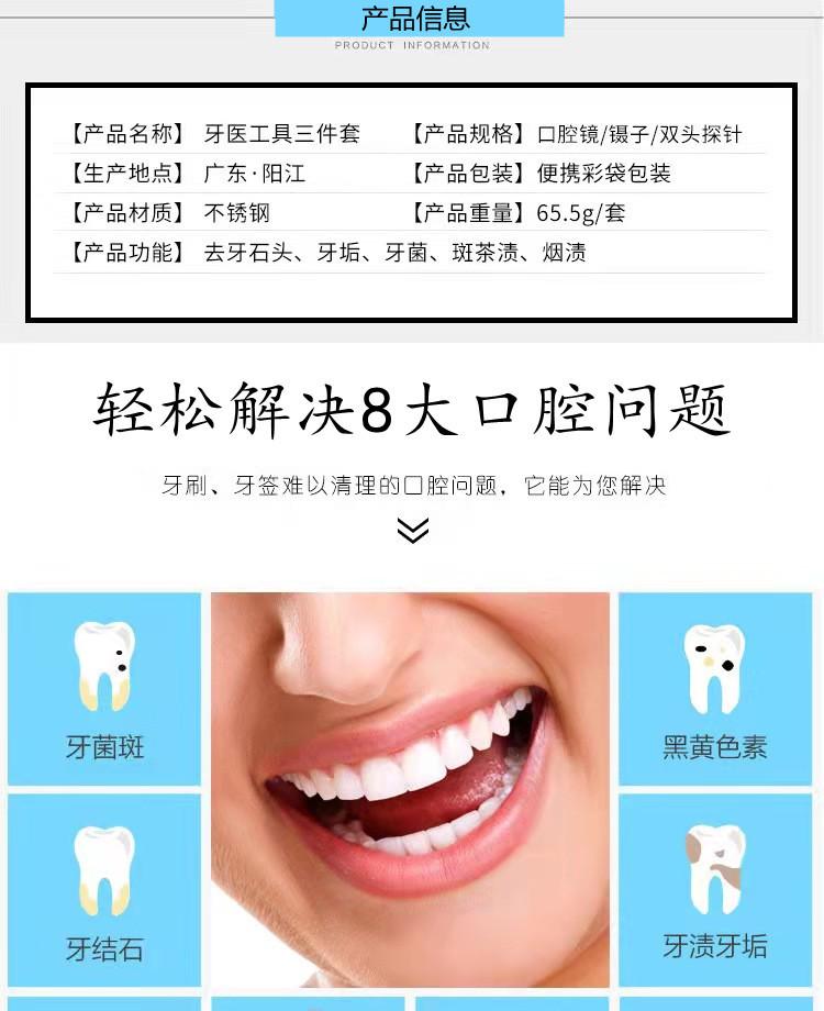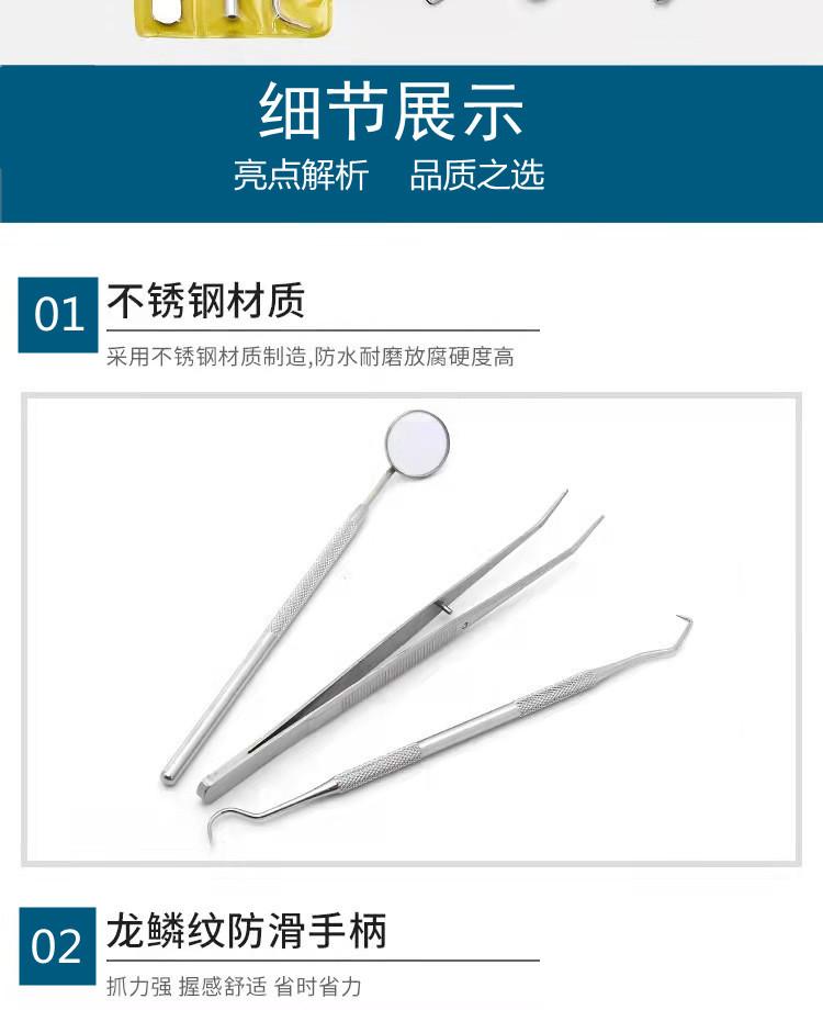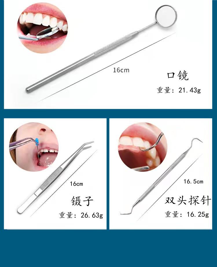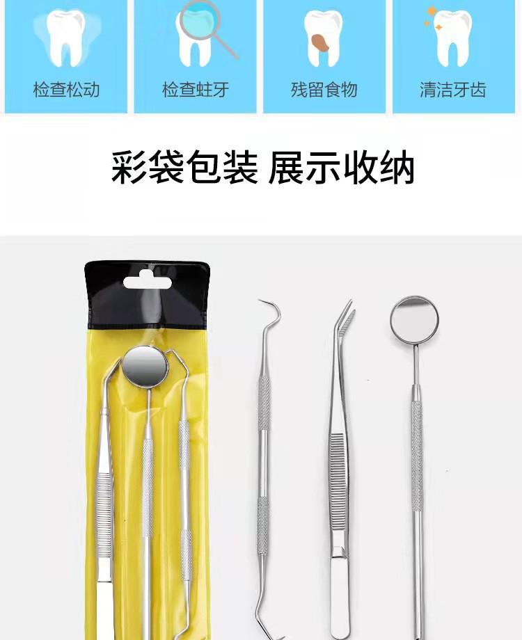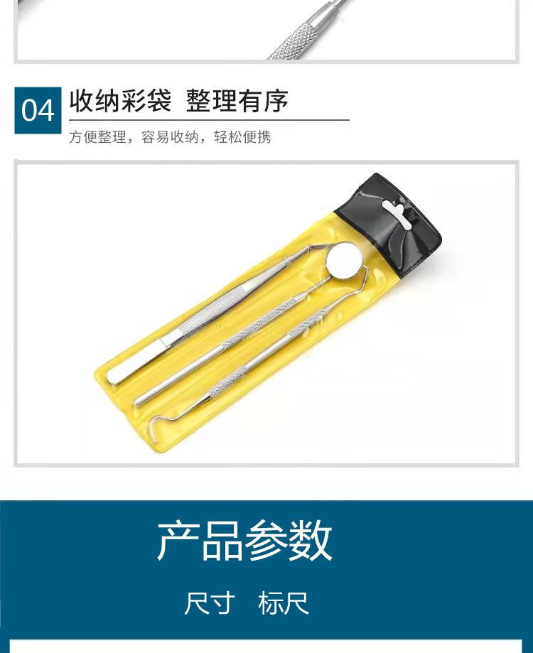 Mouth mirror, Probe, Tweezers, Color bag set of 3
