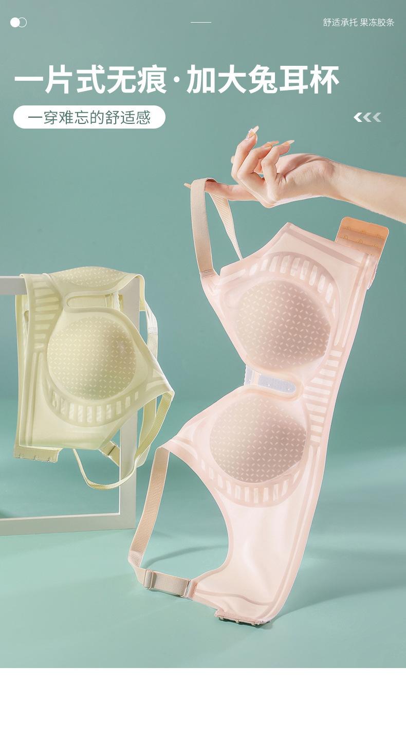 Ropa interior con tiras de gelatina y orejas de conejo, pecho grande, pequeño, ajustado, fruncido lateral, fresco, transpirable, antigolpes, que no se corre.