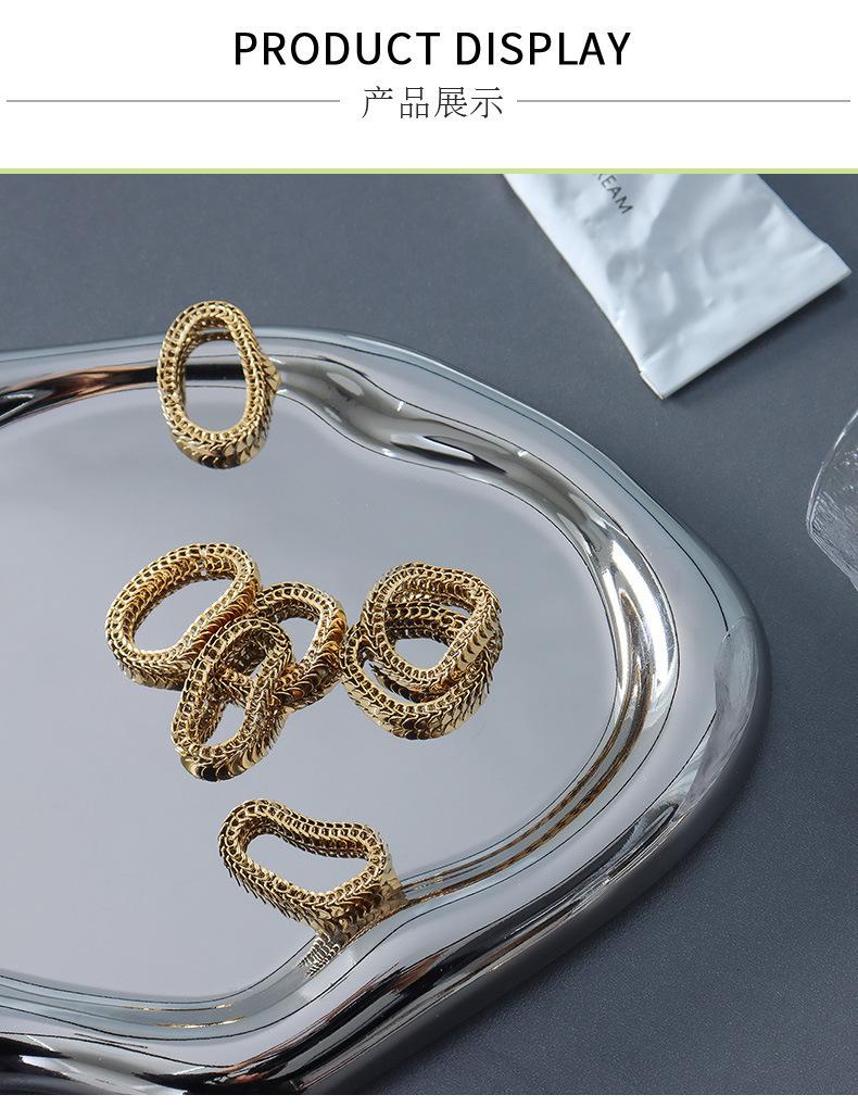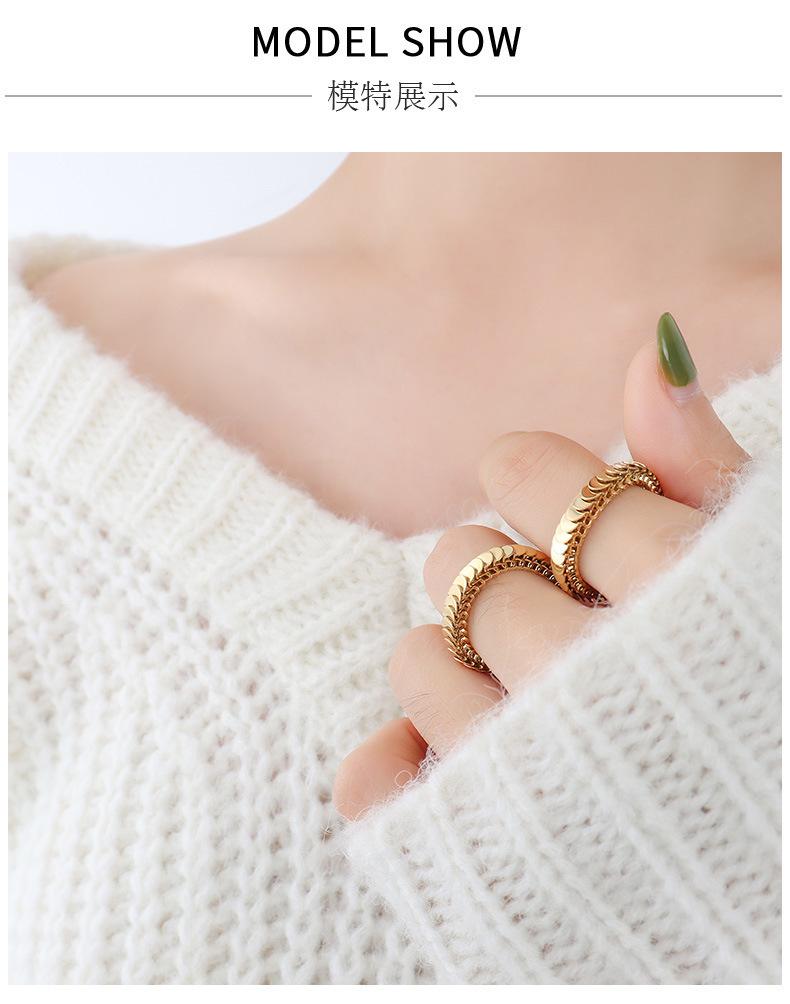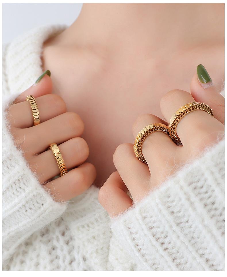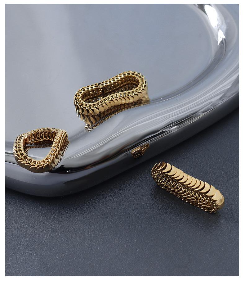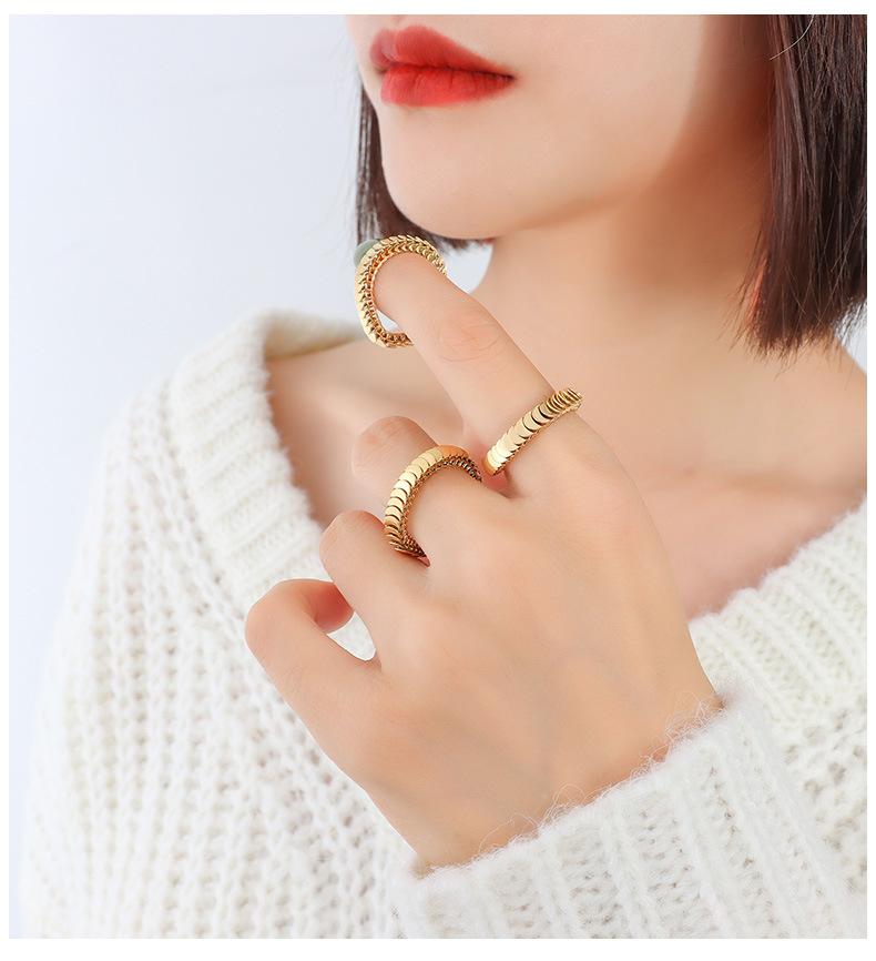 Anillo de cadena de cuchillas exageradas de Europa y Estados Unidos con estilo frío, diseño de lujo ligero, joyería de acero de titanio chapado en oro de 18 quilates, venta al por mayor de fábrica
