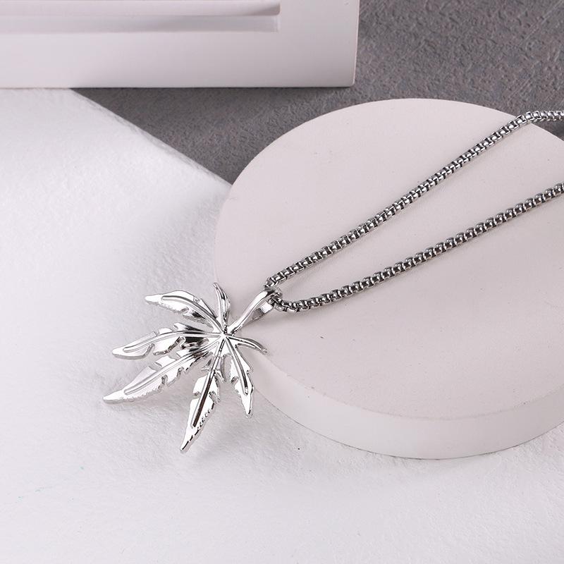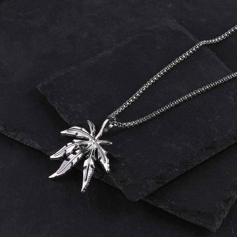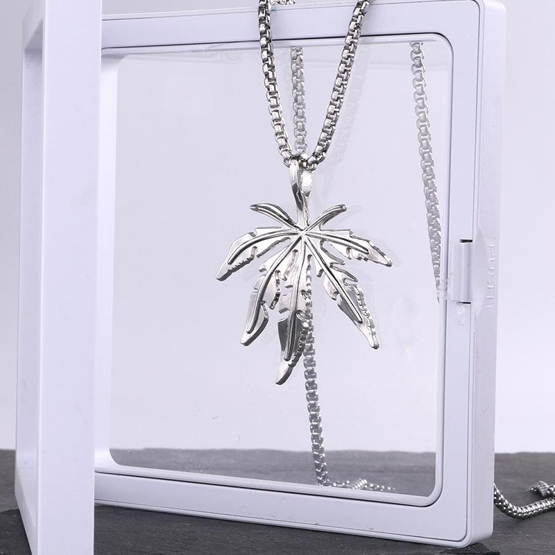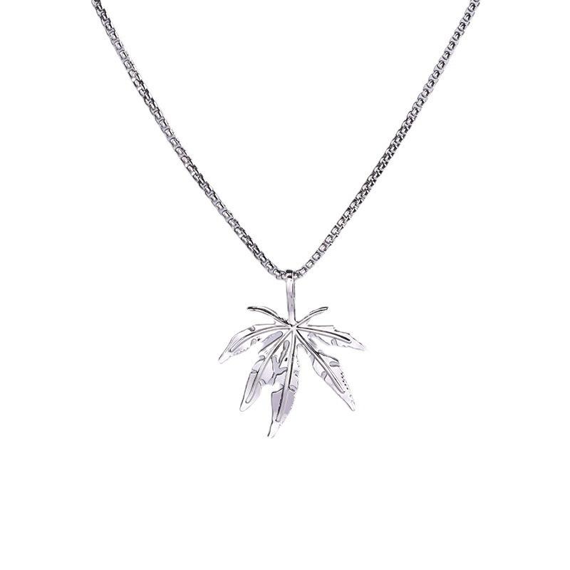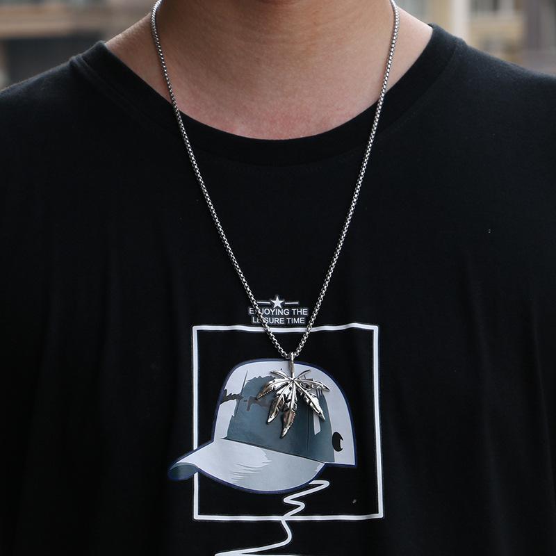 Collar transfronterizo europeo y americano de acero inoxidable para hombre, personalidad, hip hop, punk, hipster, colgante de hoja de arce, cadena simple para suéter para mujer