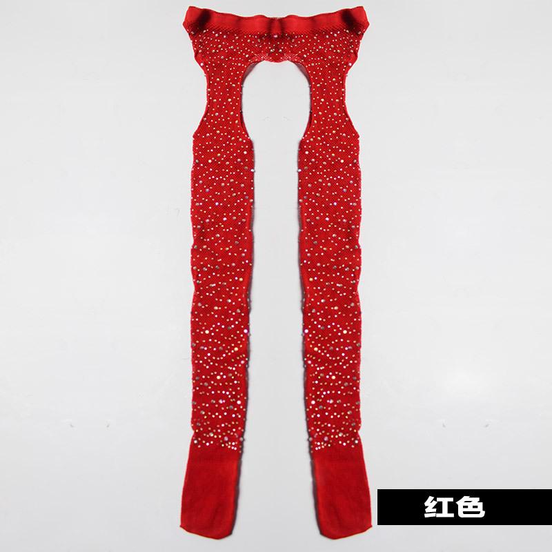 Comercio Exterior Ins Celebridad de Internet Cifrado Agujero en la Entrepierna Hueco Gratis Pequeño Color Diamante de Agua Pantalones de Perforación Caliente Calcetines de Red