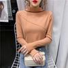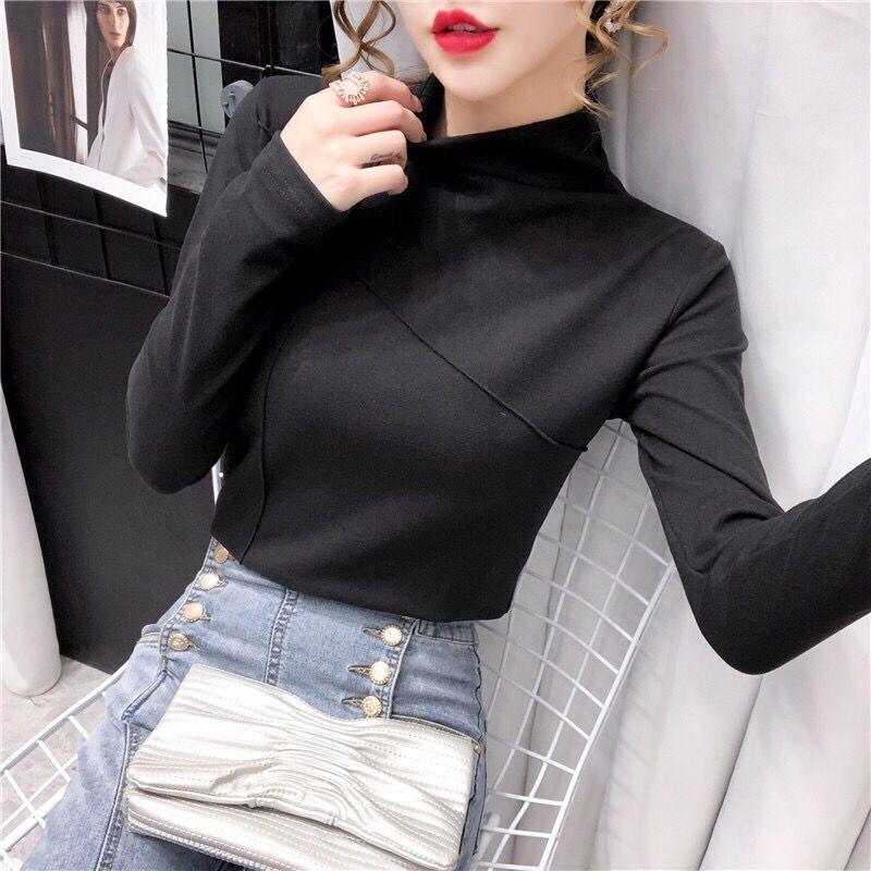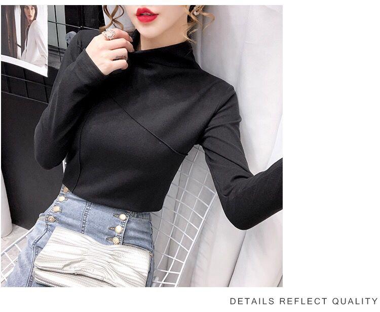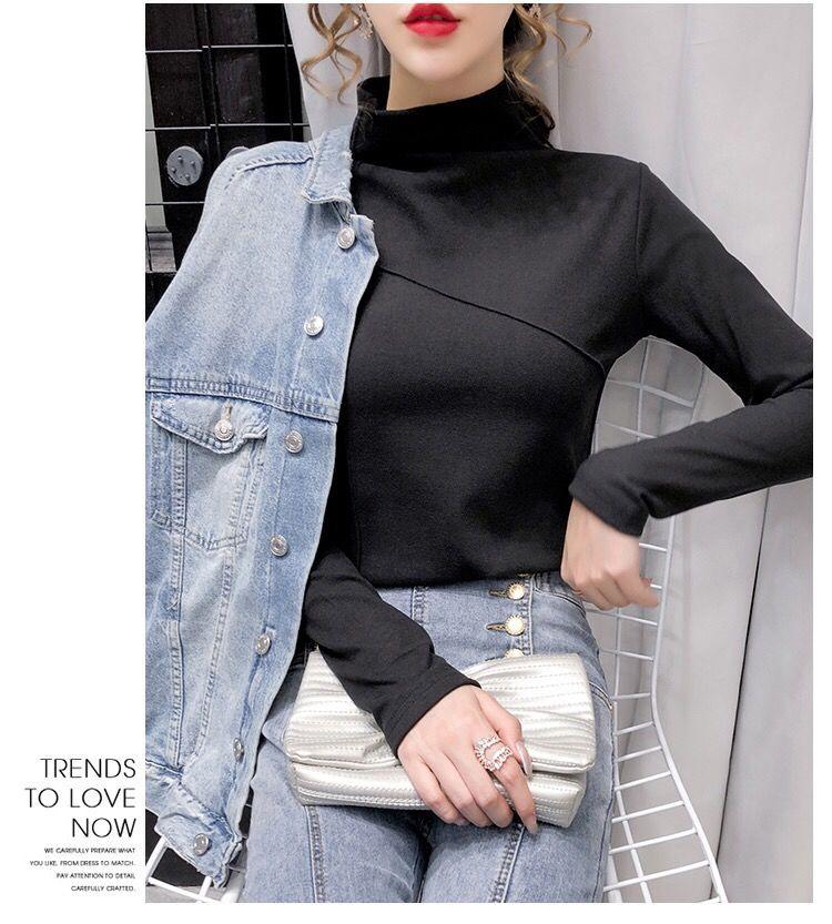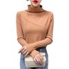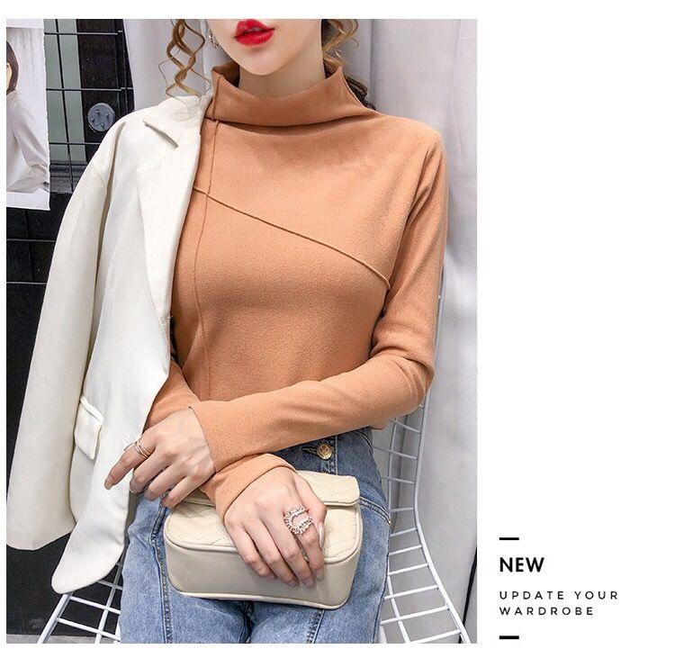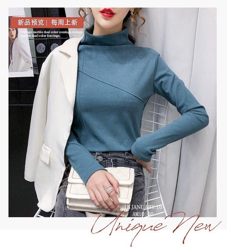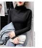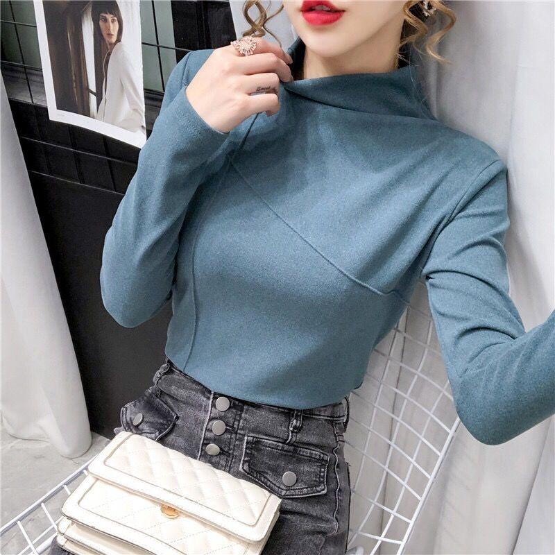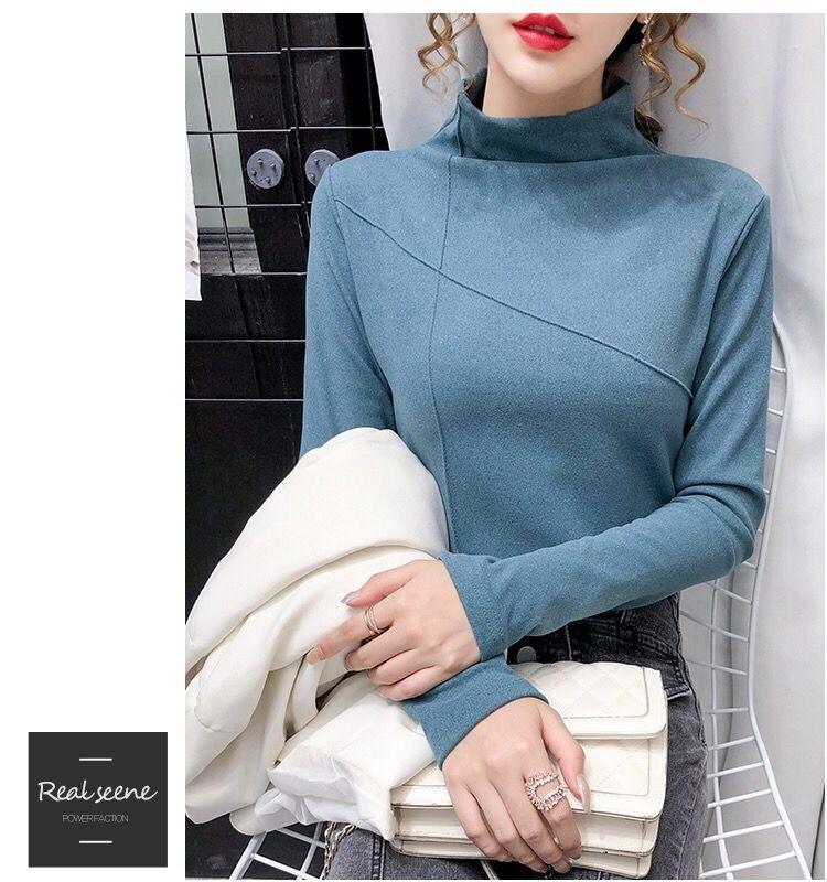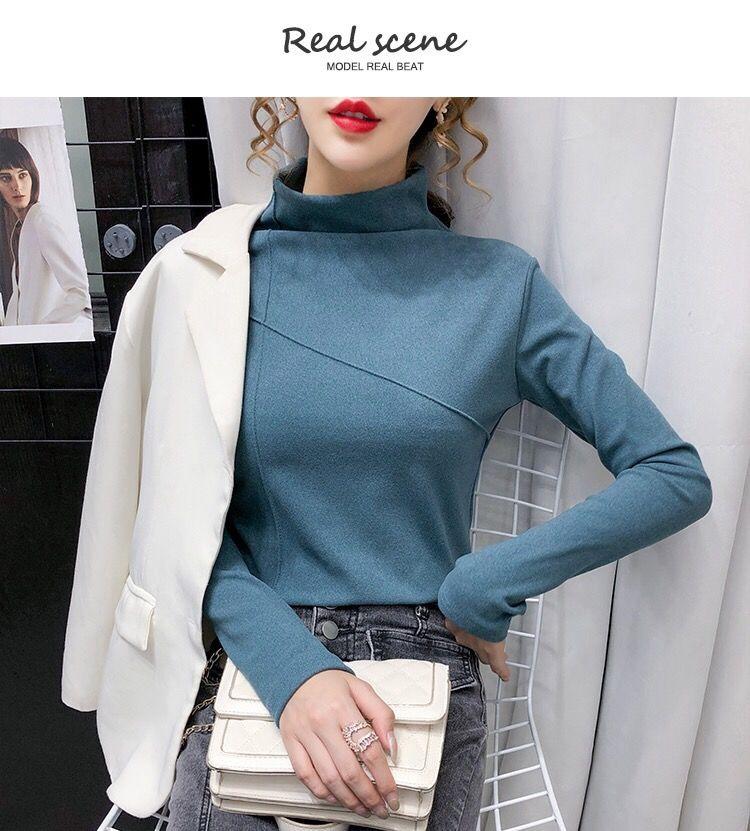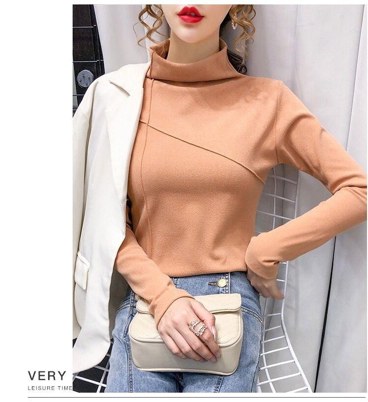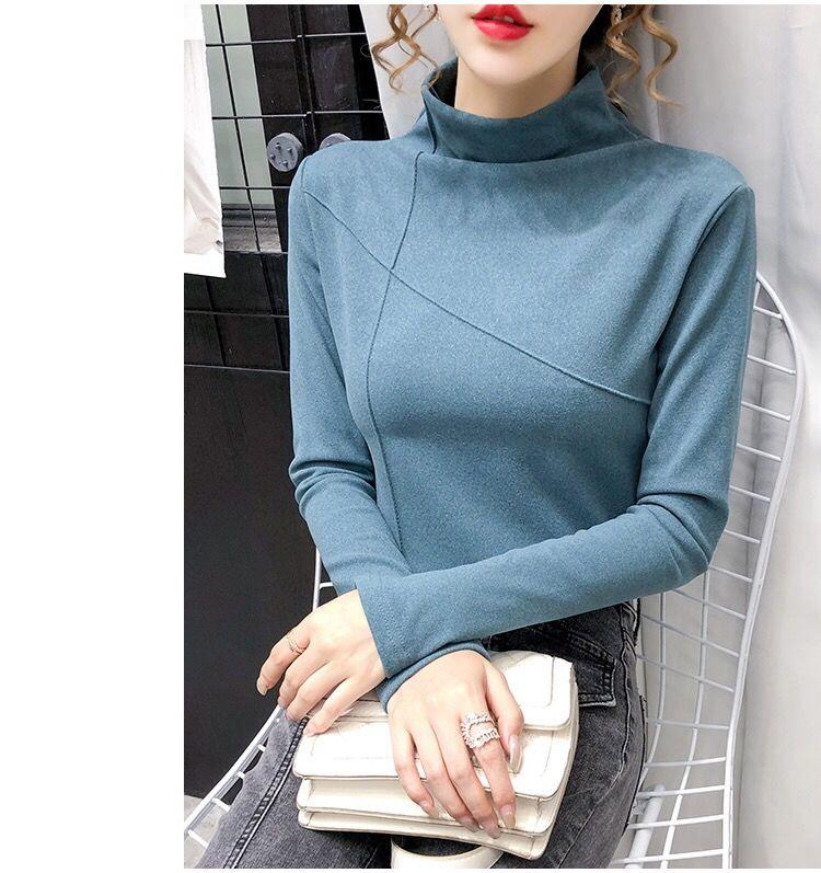 Camisa básica para mujer, otoño e invierno, forro polar grueso, terciopelo, cuello semialto, color sólido, cálida, manga corta, camisa de manga larga