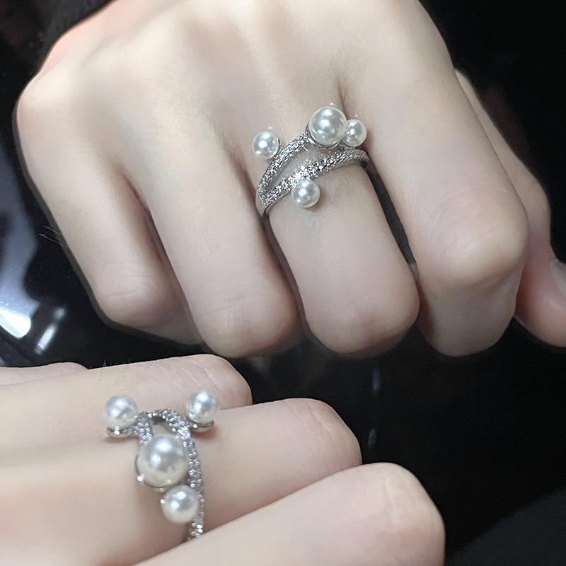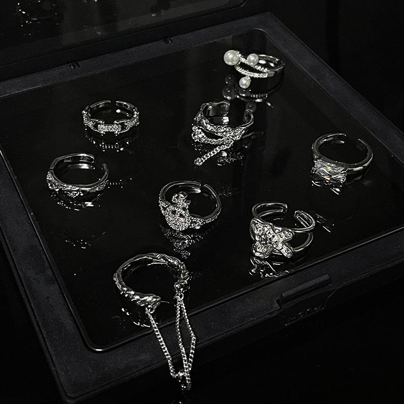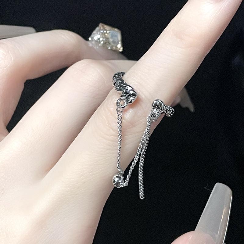 Anillo abierto Saturno con diseño de nicho, cadena de alta calidad, estilo francés frío, plisado, lleno de diamantes y circonitas.