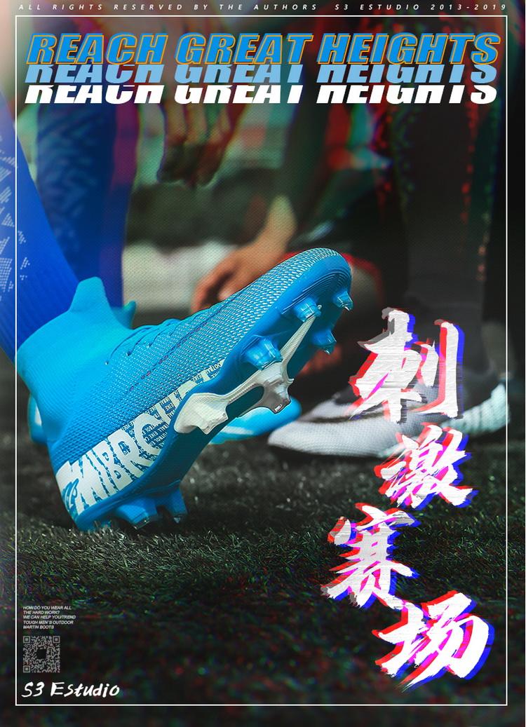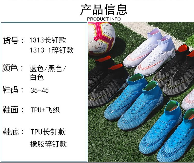 Zapatos de Fútbol Juvenil Transfronterizo para Estudiantes Masculinos Jinjiang Tacos Largos y Tacos Rotos Niños Parte Superior Alta Profesional Césped Zapatos de Entrenamiento Deportivo