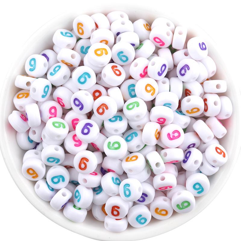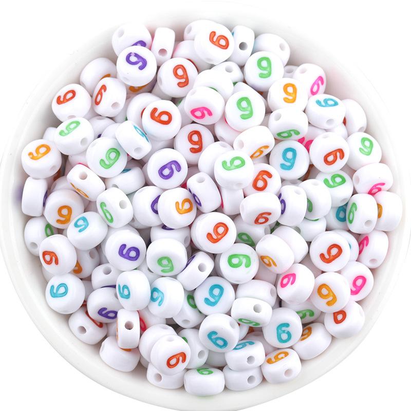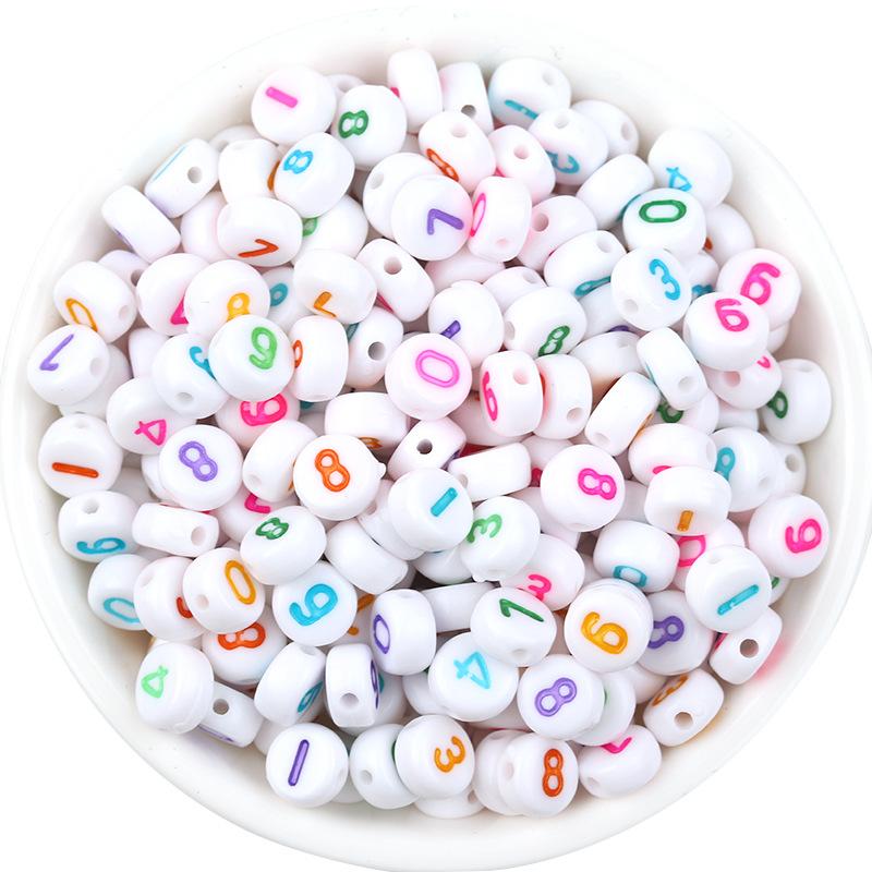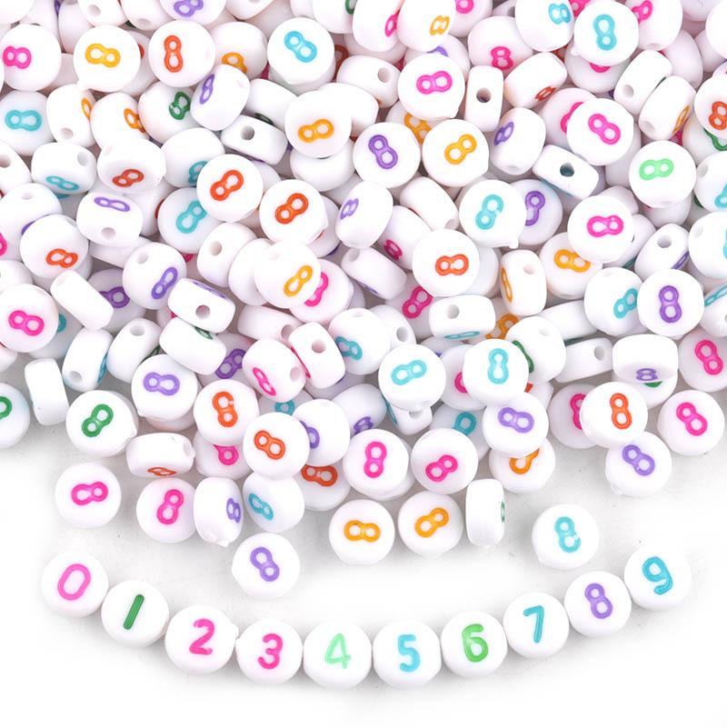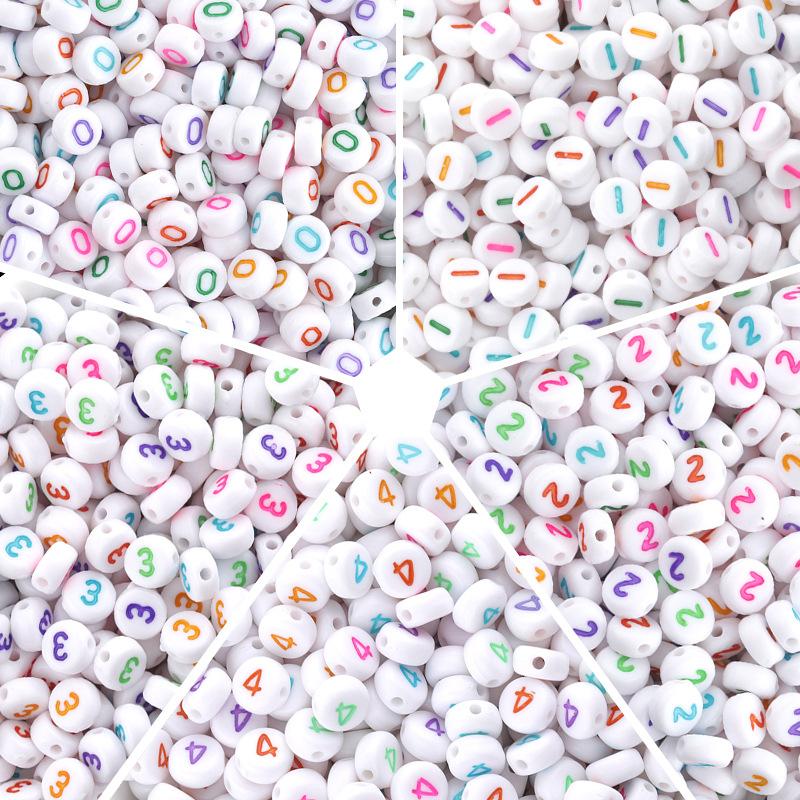 Cuentas acrílicas obladas con números, de aproximadamente 6.8 mm de largo, 3.7 mm de ancho, diámetro del agujero de 1.4 mm, 100 piezas por paquete |