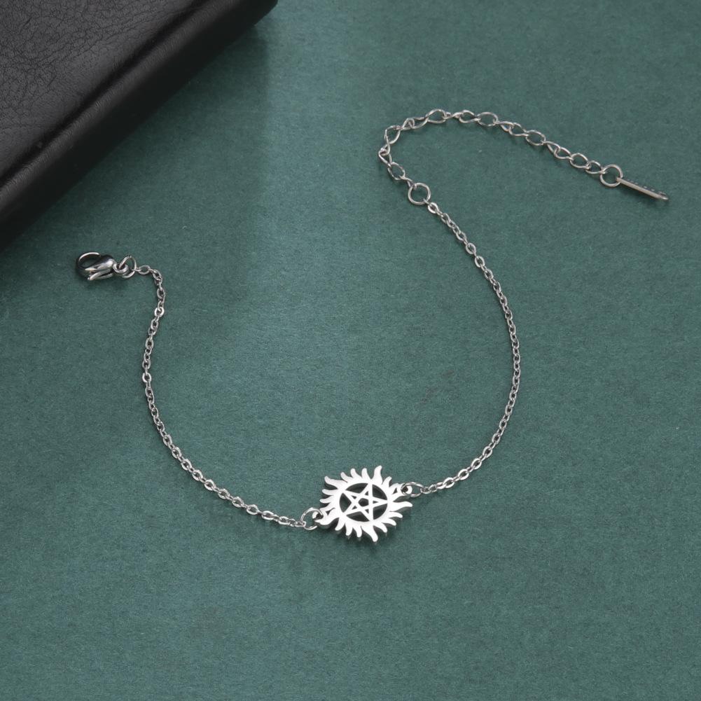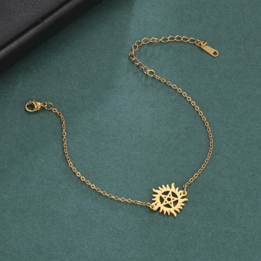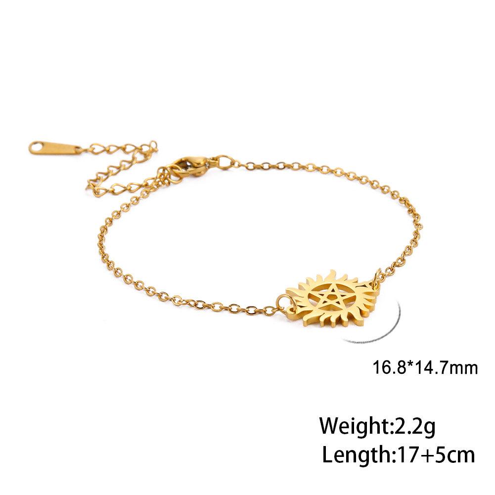 Pulsera de Acero de Titanio Cortado con Personalidad Simple y de Moda de Venta Caliente Adornos de Mano Sol Calado Colgante Pentagrama Acero Inoxidable 304