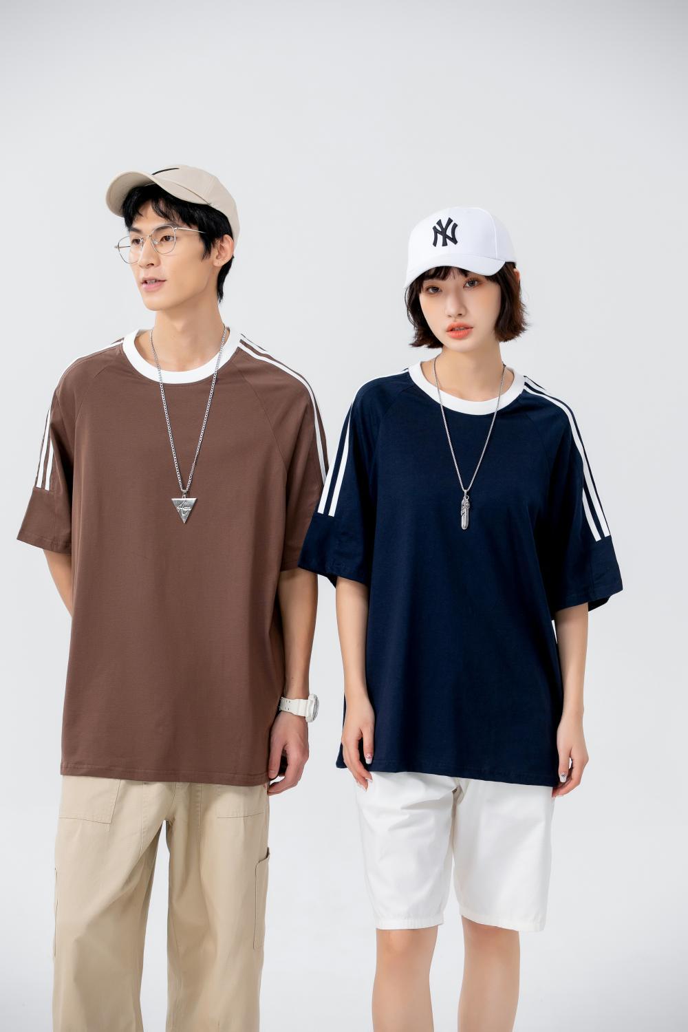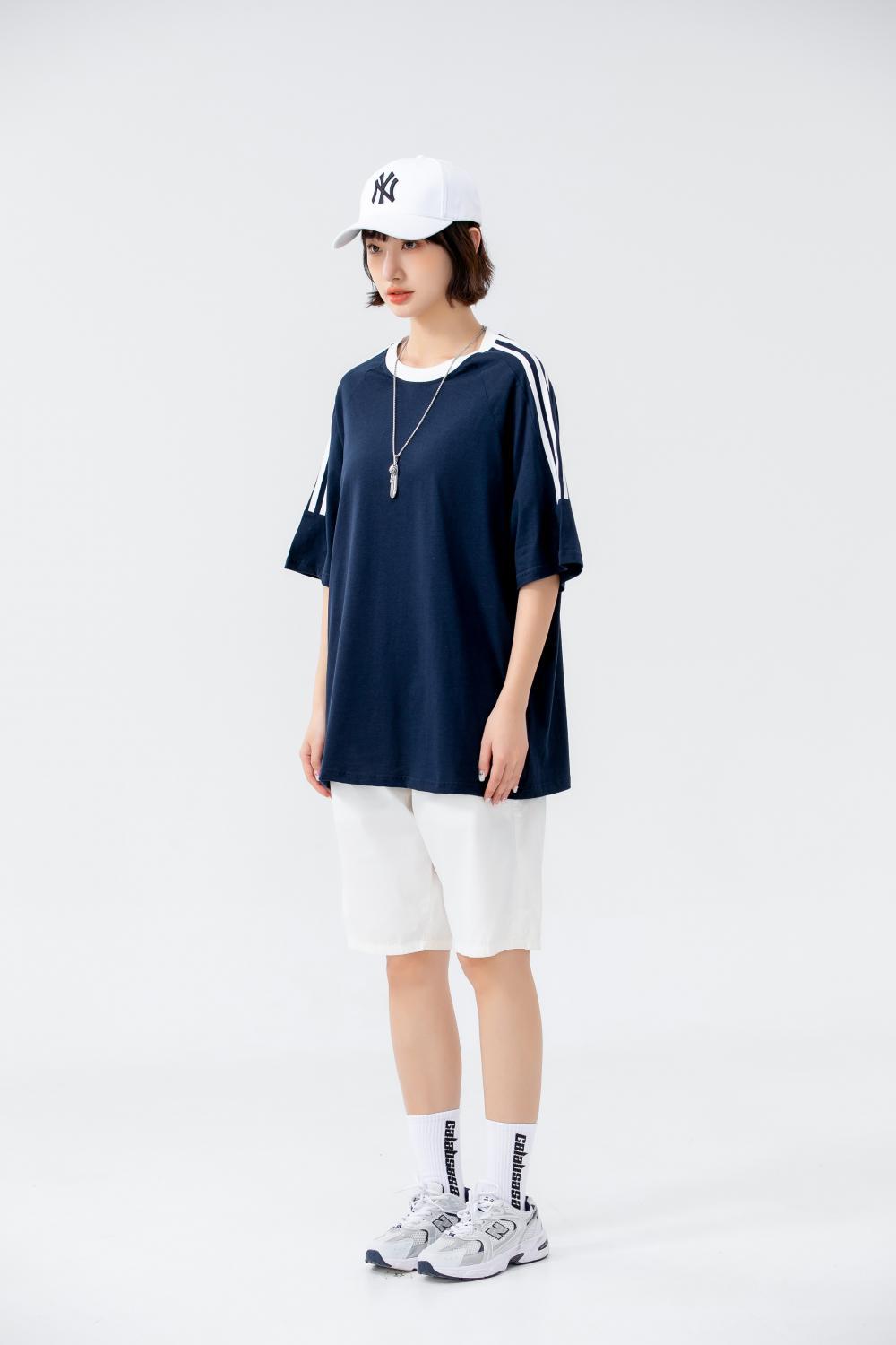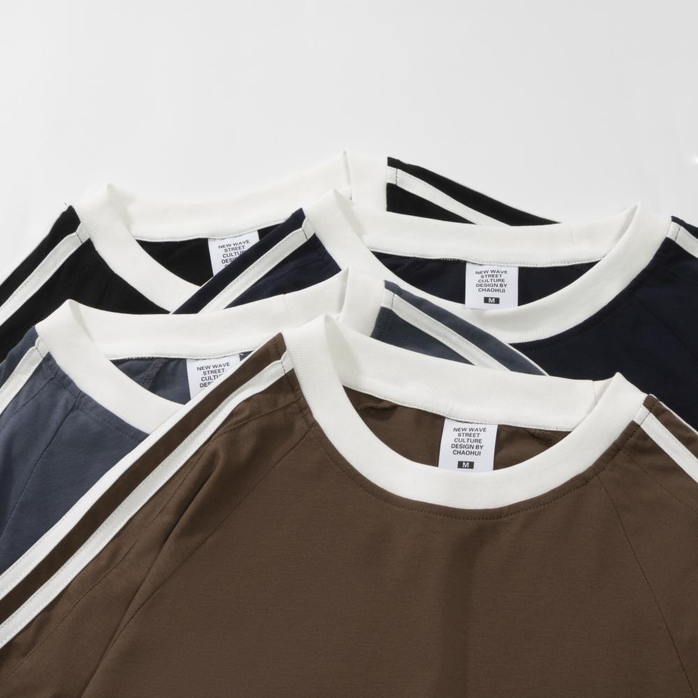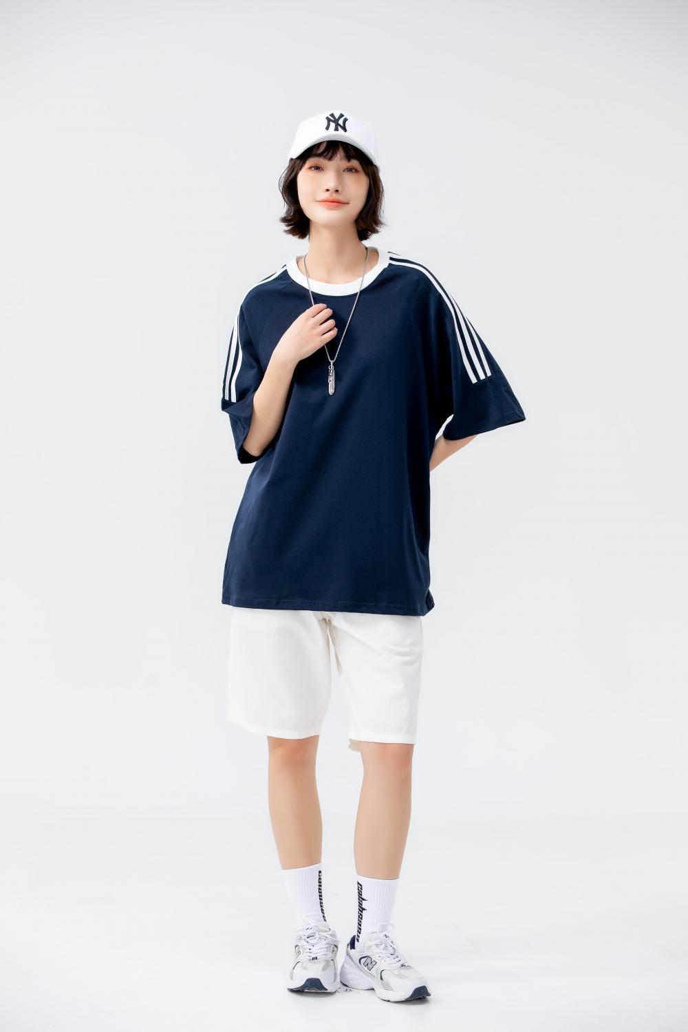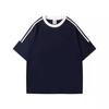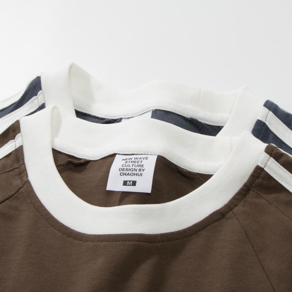 A14#210g7A Camiseta antibacteriana de tres barras con cuello redondo, algodón con amoníaco líquido fresco, manga corta, cuello redondo, impresión de logotipo, ropa para grupos, ropa para clases