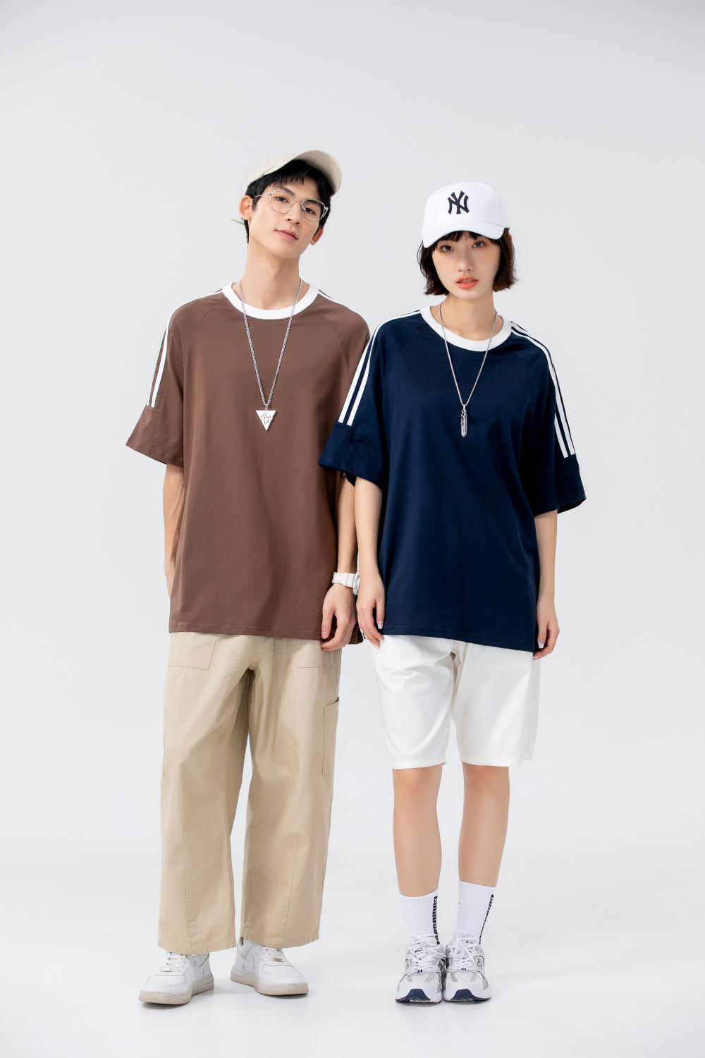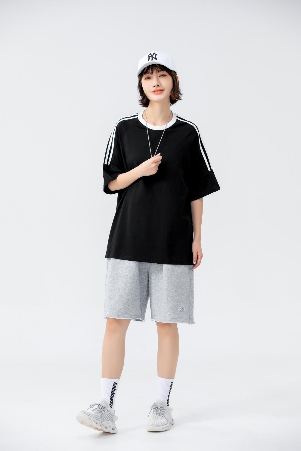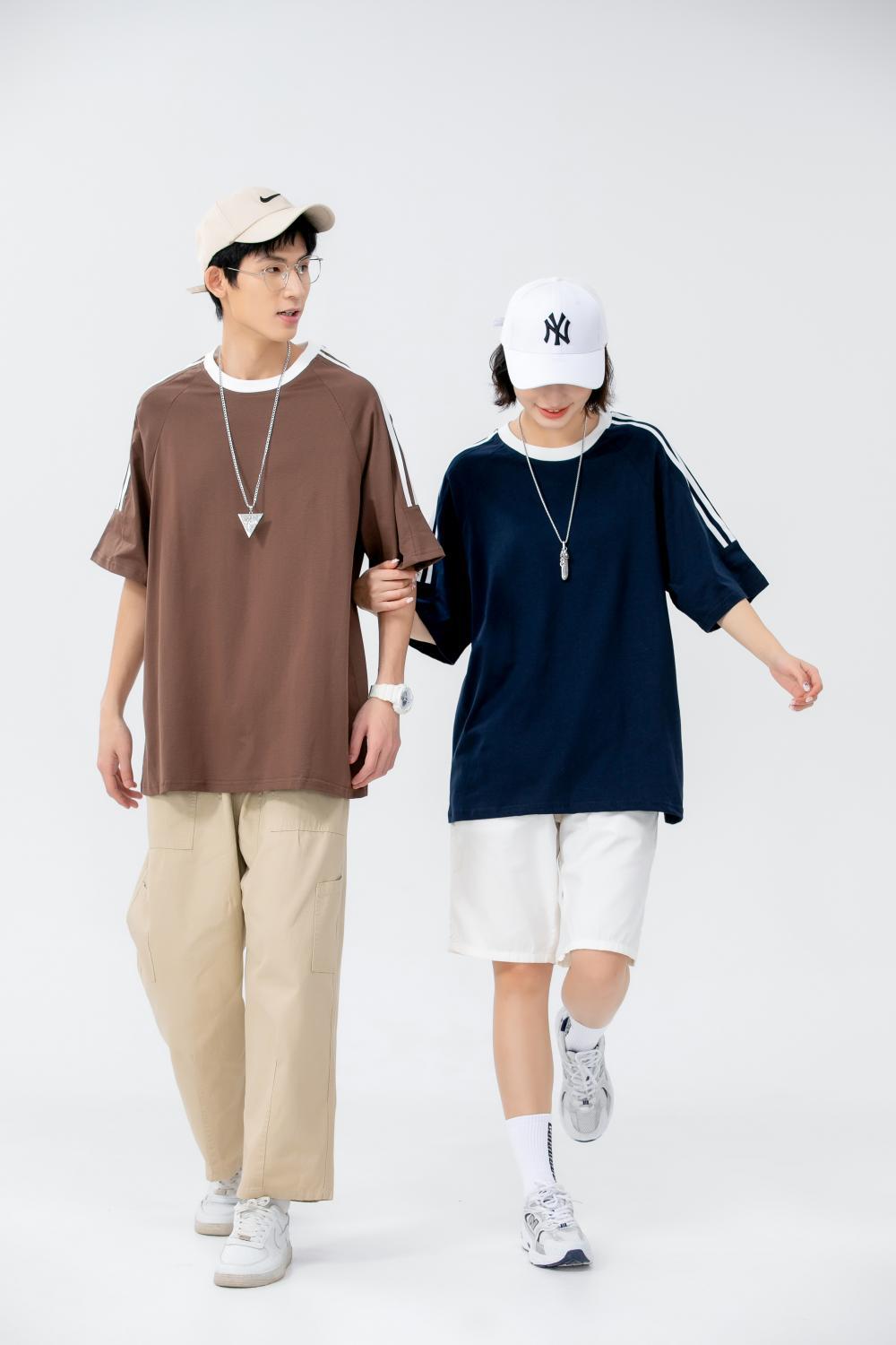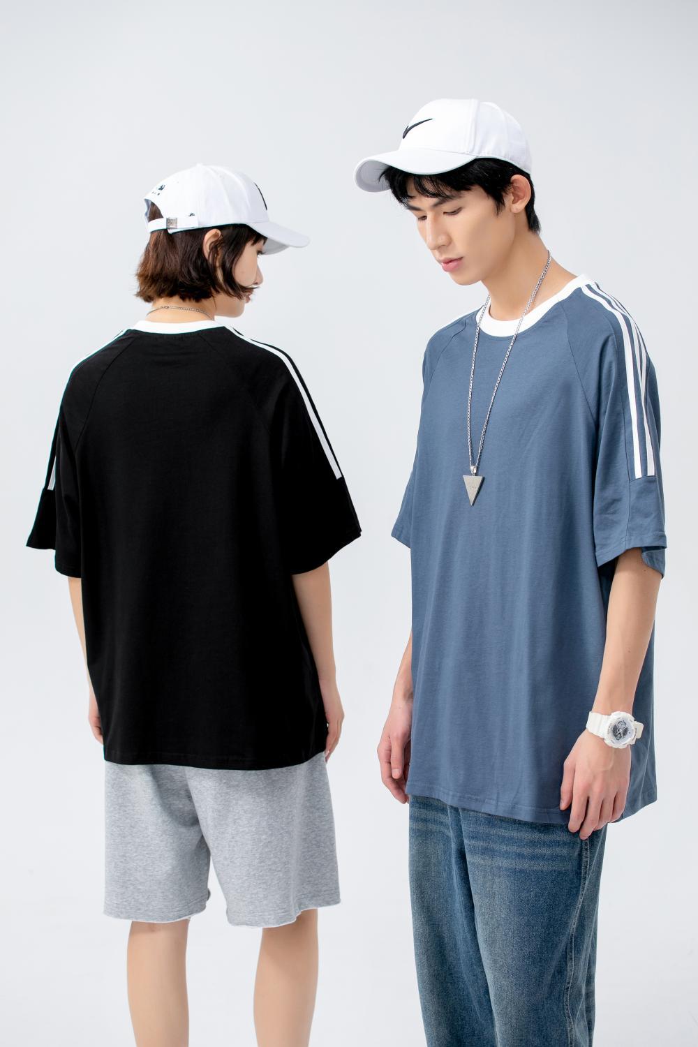 A14#210g7A Camiseta antibacteriana de tres barras con cuello redondo, algodón con amoníaco líquido fresco, manga corta, cuello redondo, impresión de logotipo, ropa para grupos, ropa para clases