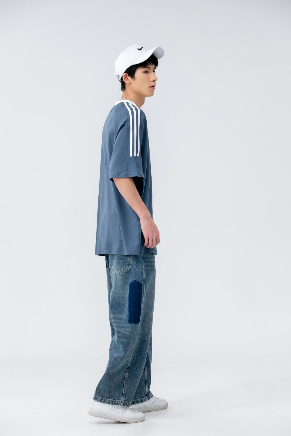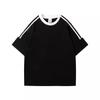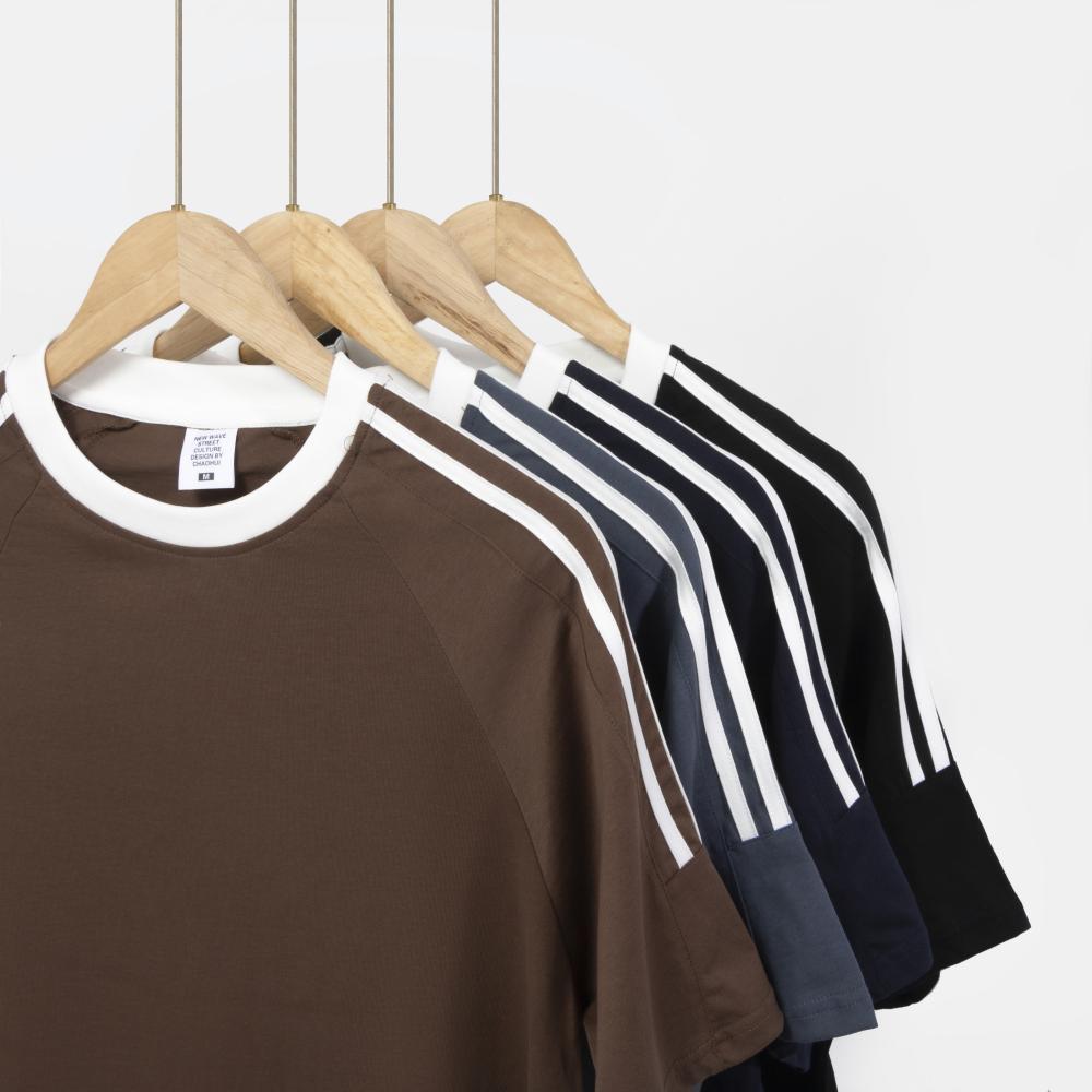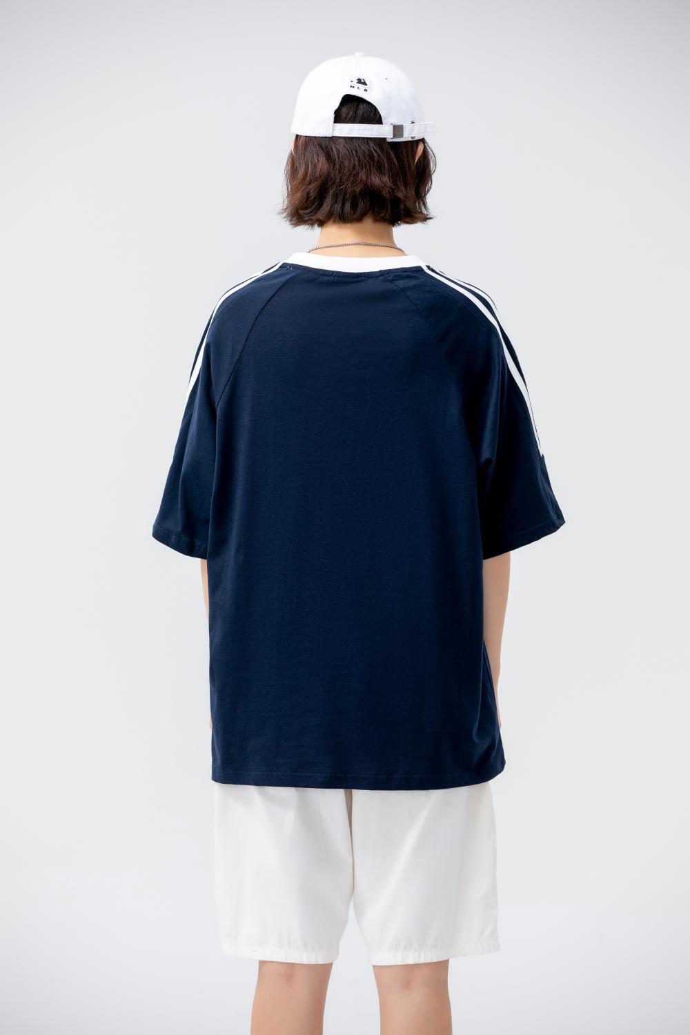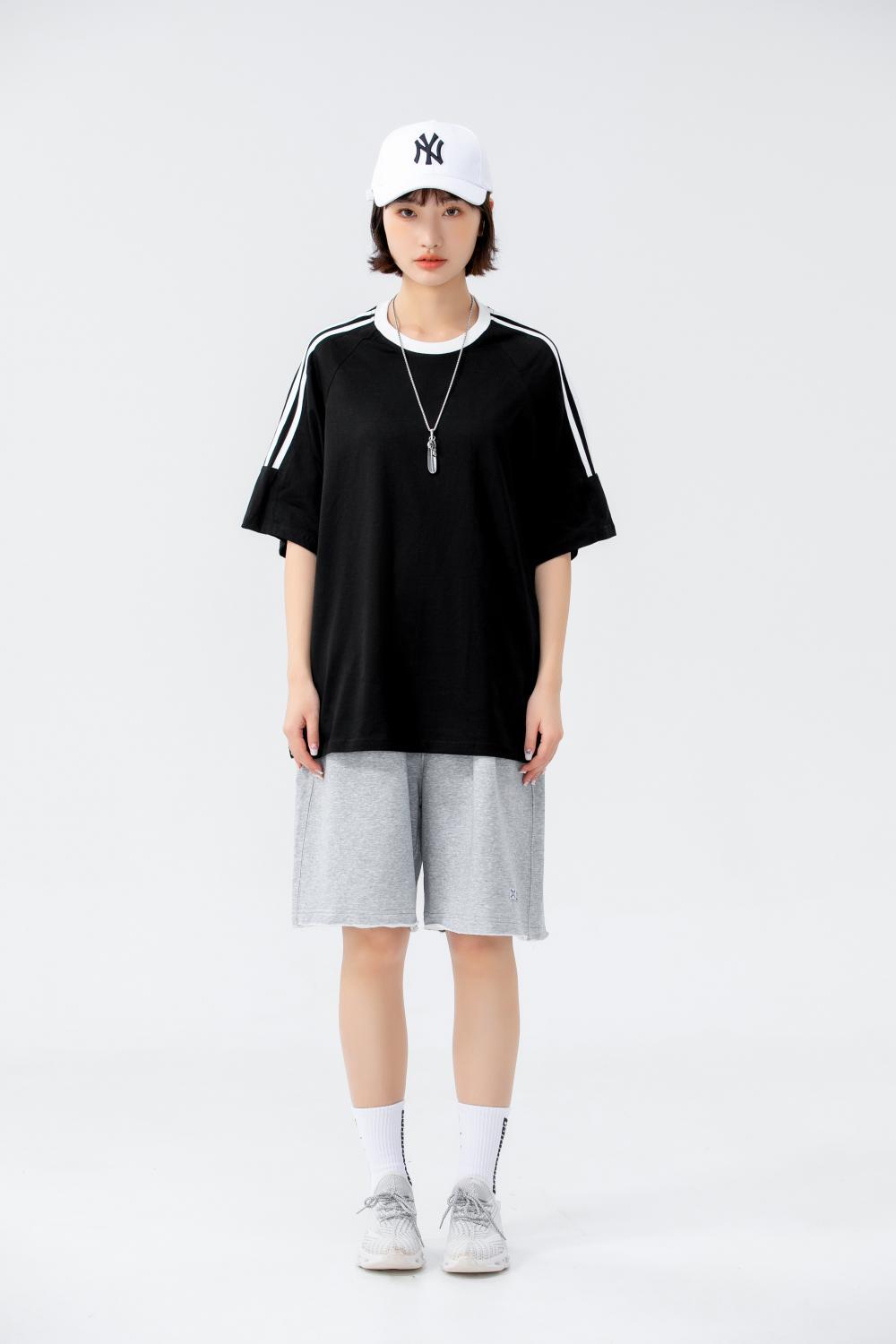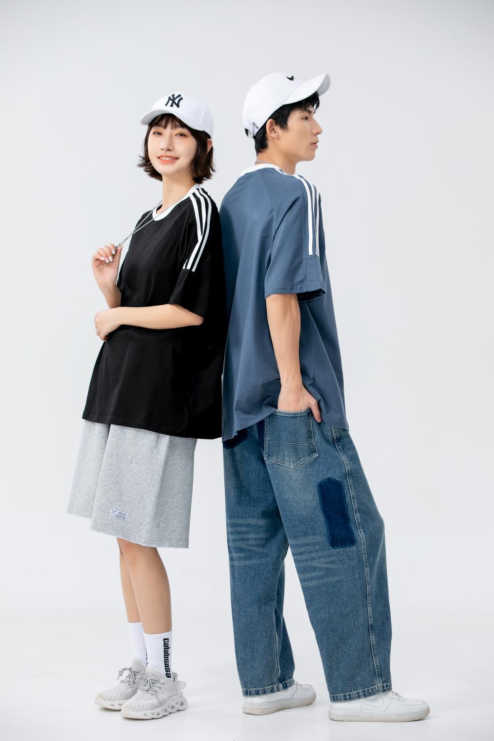 A14#210g7A Camiseta antibacteriana de tres barras con cuello redondo, algodón con amoníaco líquido fresco, manga corta, cuello redondo, impresión de logotipo, ropa para grupos, ropa para clases