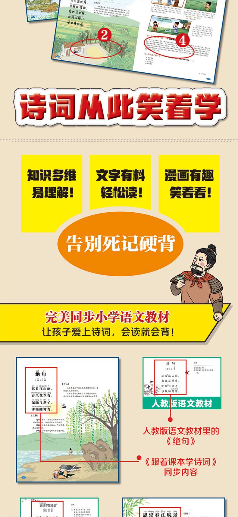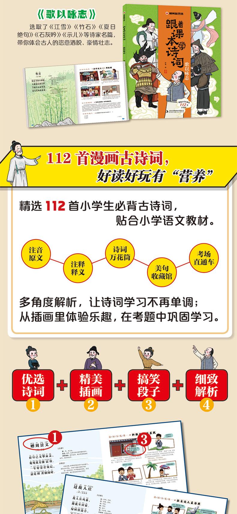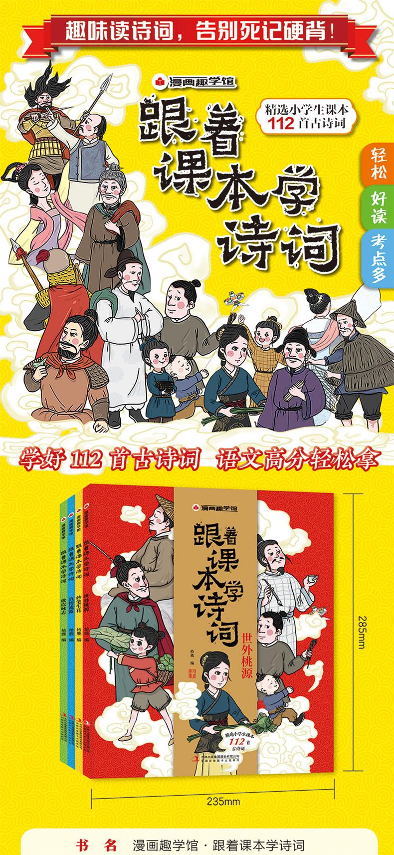 Aprende Poesía con el Libro de Texto, un Conjunto Completo de 4 Volúmenes de Libros de Imágenes Cómicas, 112 Poemas Antiguos con Notación Fonética, Rompecabezas Educativos para Estudiantes de Primaria