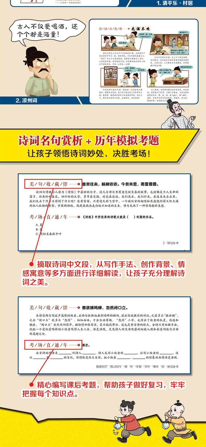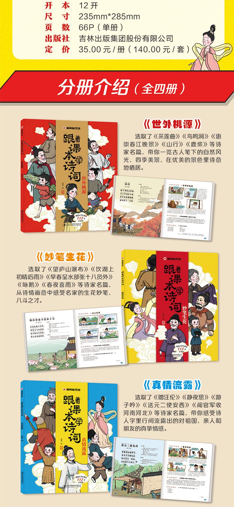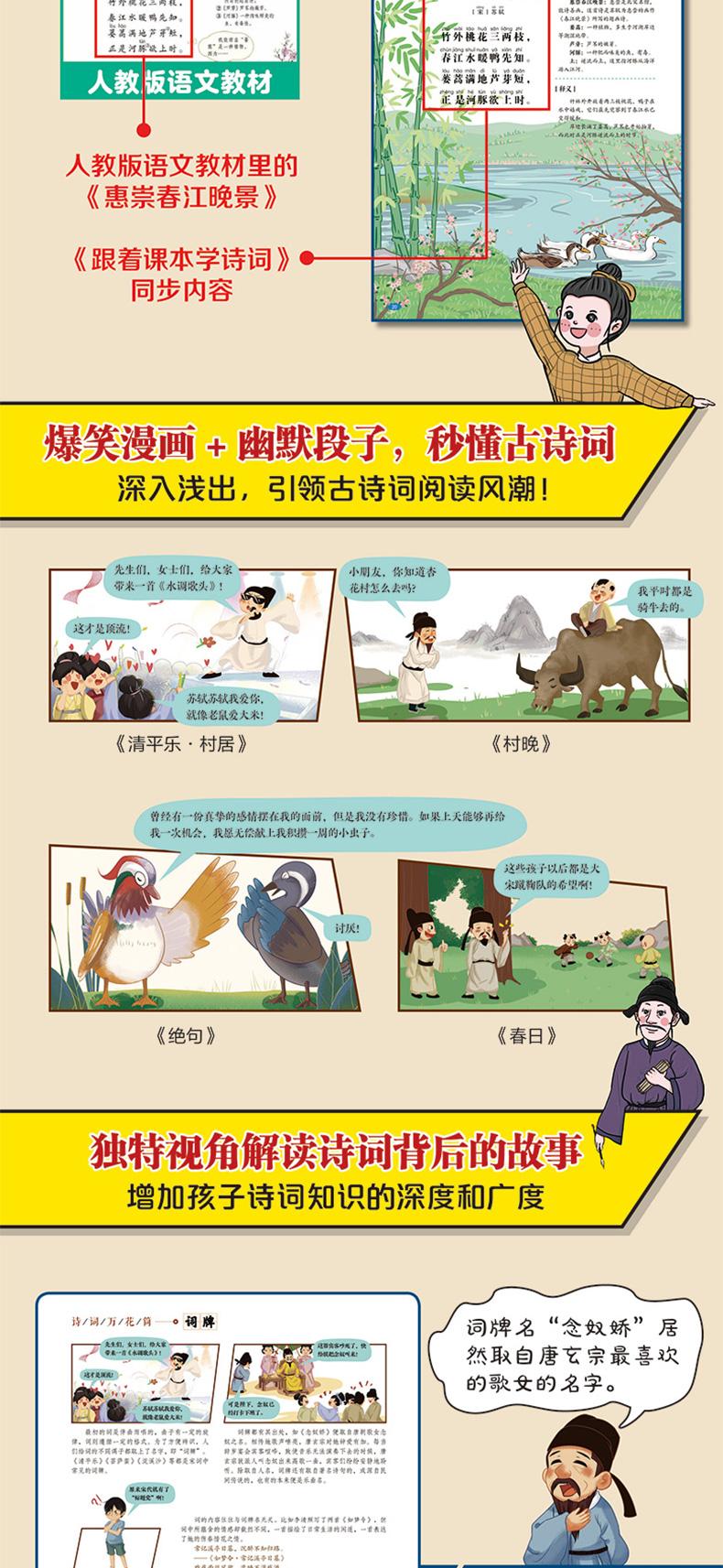 Aprende Poesía con el Libro de Texto, un Conjunto Completo de 4 Volúmenes de Libros de Imágenes Cómicas, 112 Poemas Antiguos con Notación Fonética, Rompecabezas Educativos para Estudiantes de Primaria
