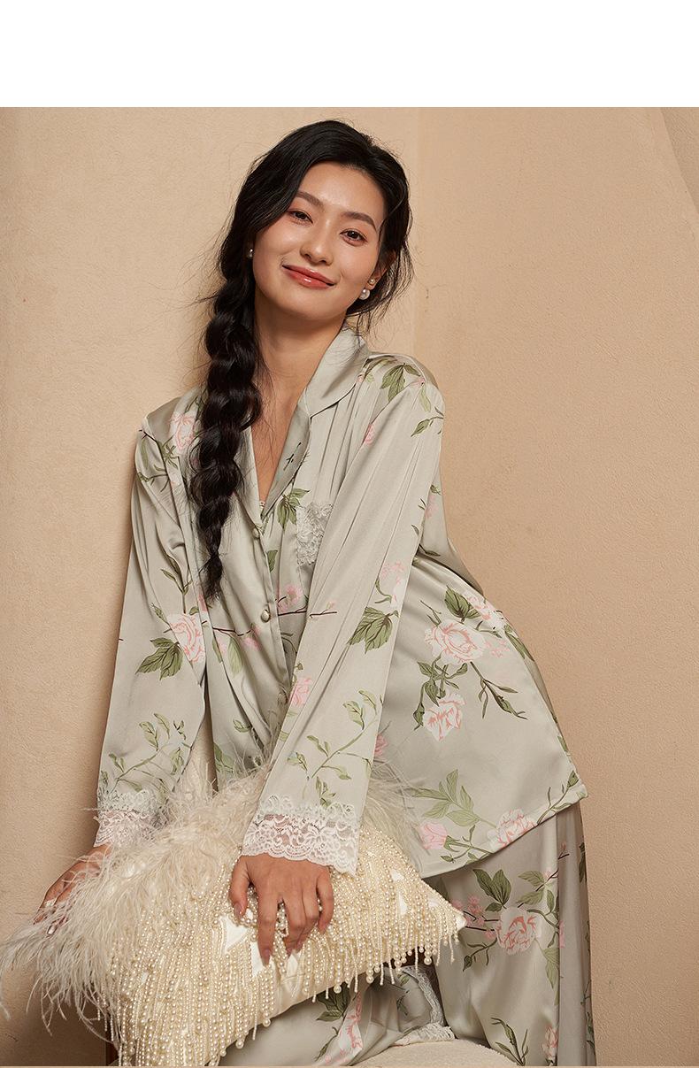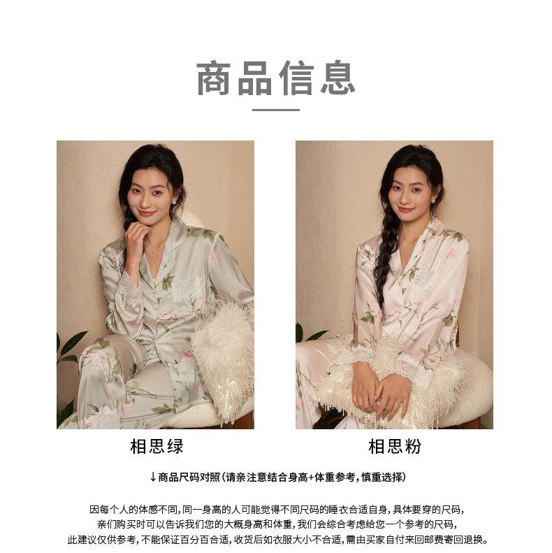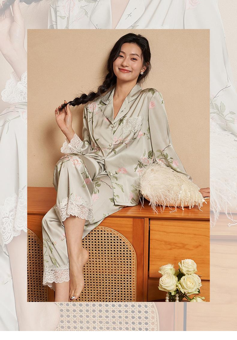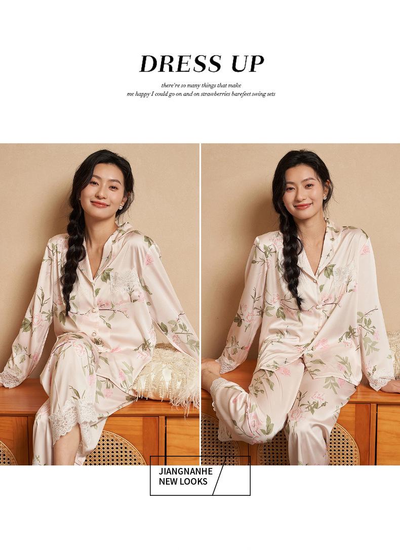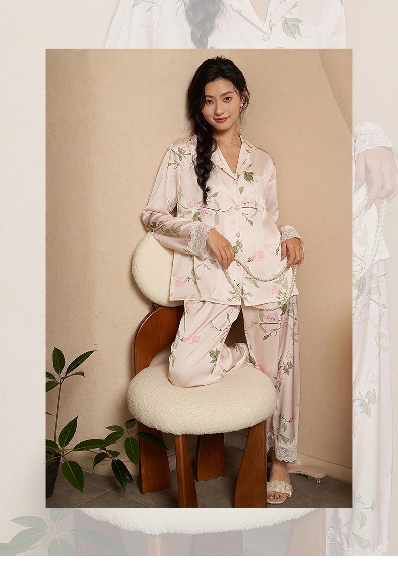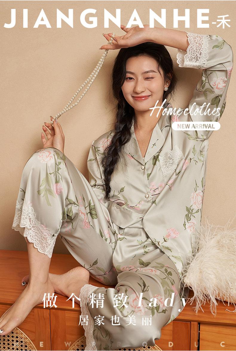 Jiangnan he 2024 nuevos pijamas de mujer primavera y verano mal de amores pantalones de manga larga de encaje traje de ropa de casa