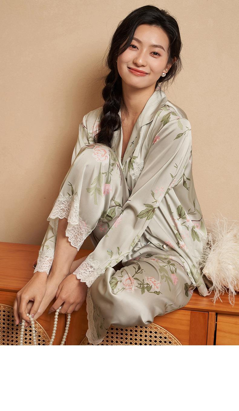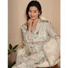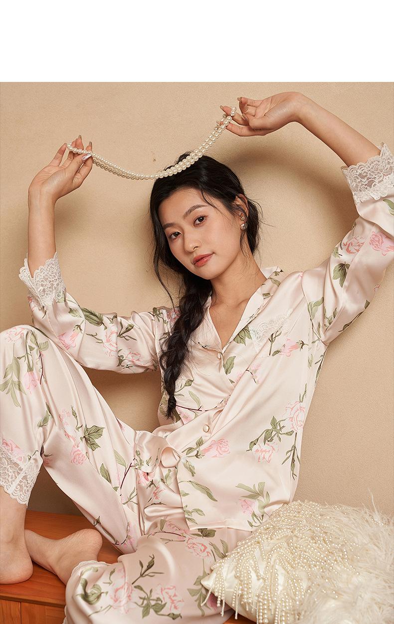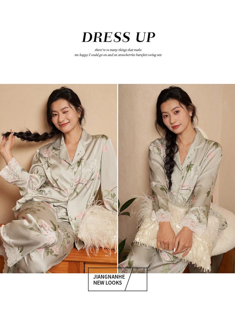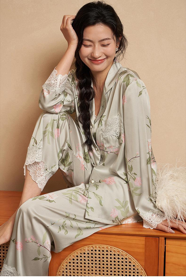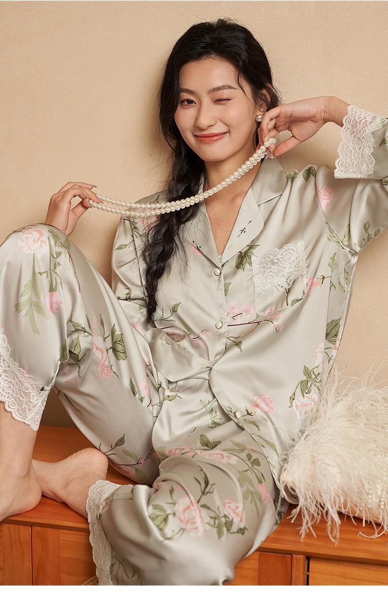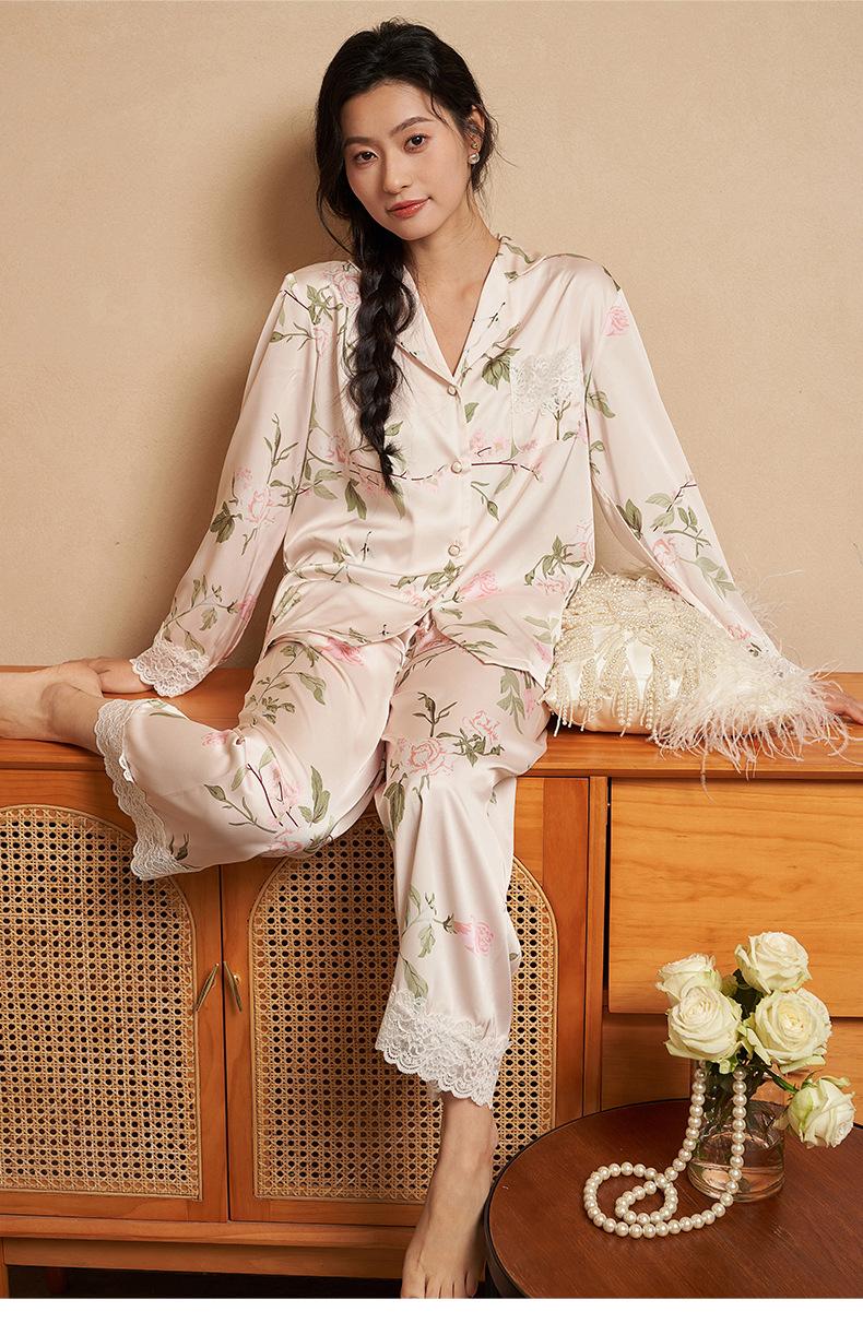 Jiangnan he 2024 nuevos pijamas de mujer primavera y verano mal de amores pantalones de manga larga de encaje traje de ropa de casa