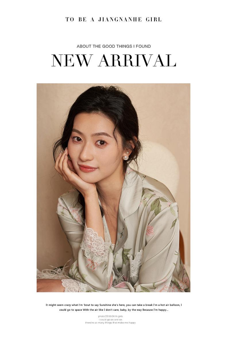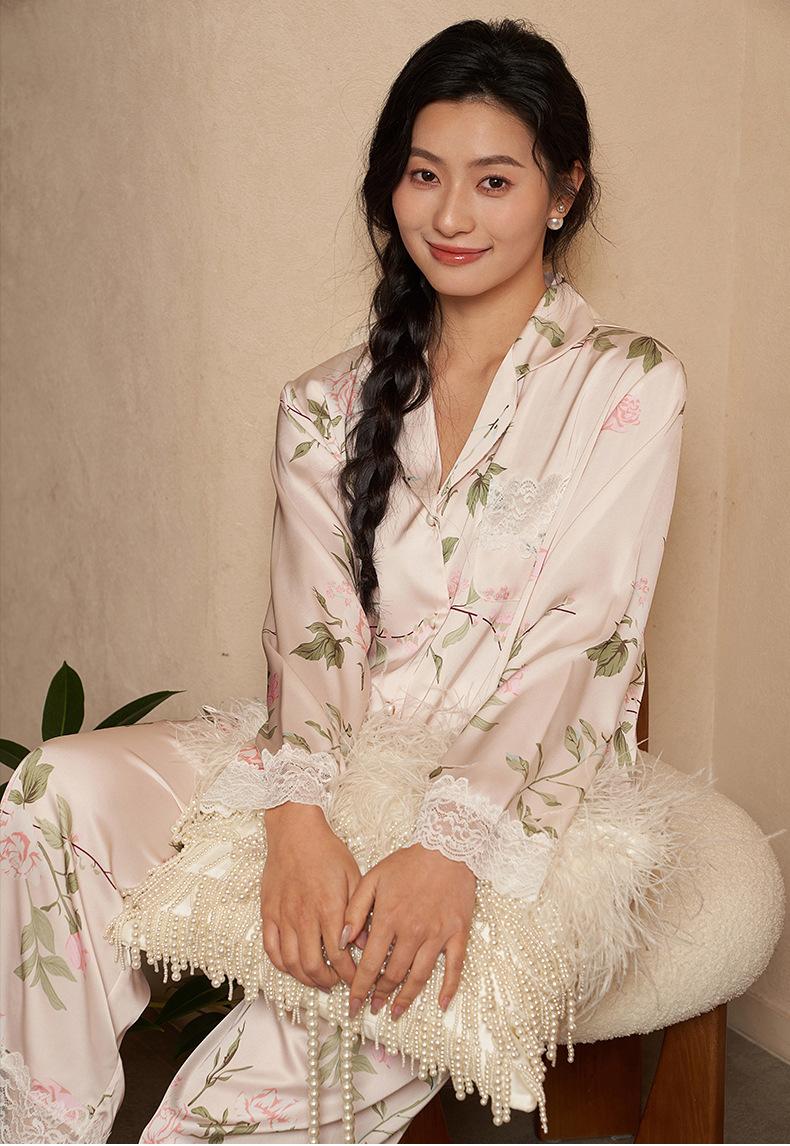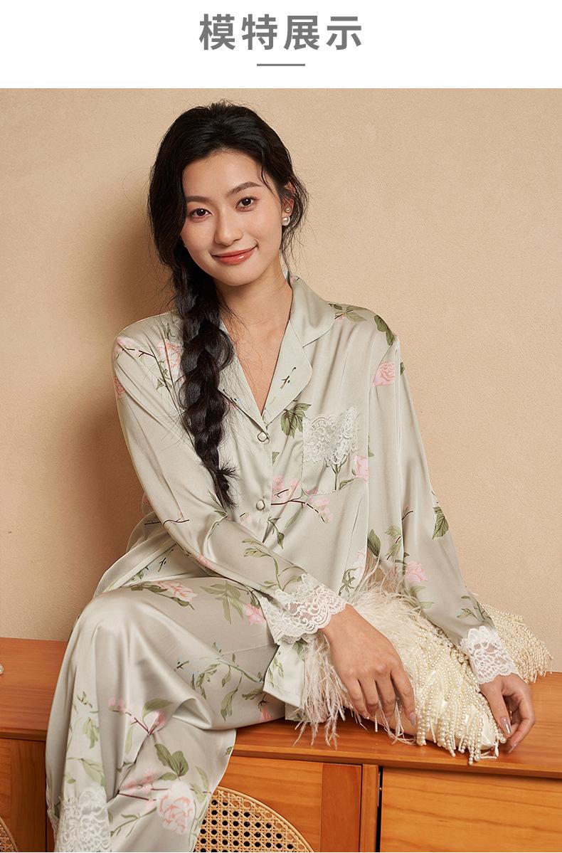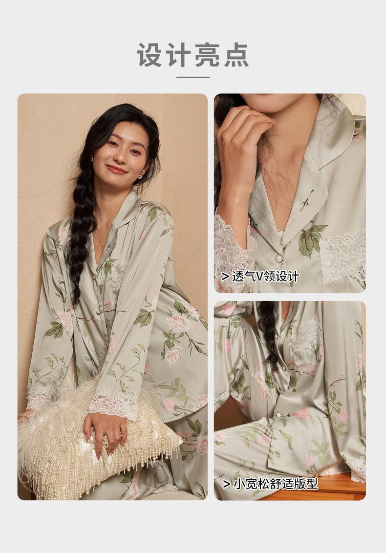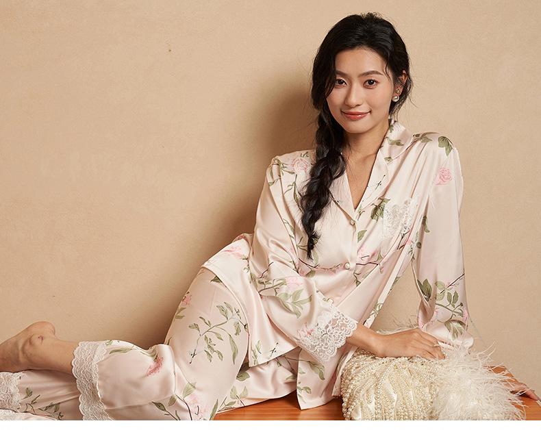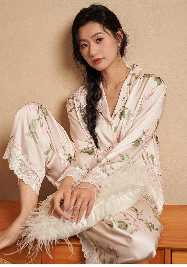 Jiangnan he 2024 nuevos pijamas de mujer primavera y verano mal de amores pantalones de manga larga de encaje traje de ropa de casa