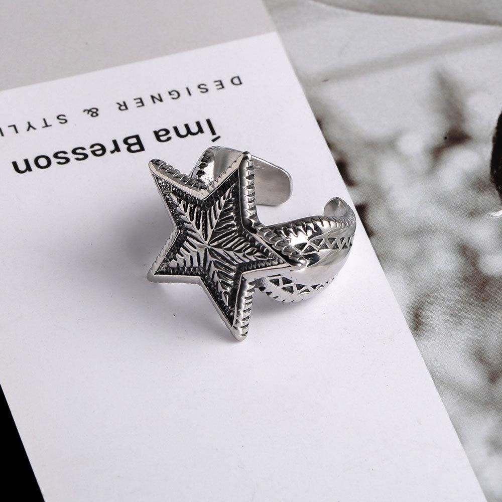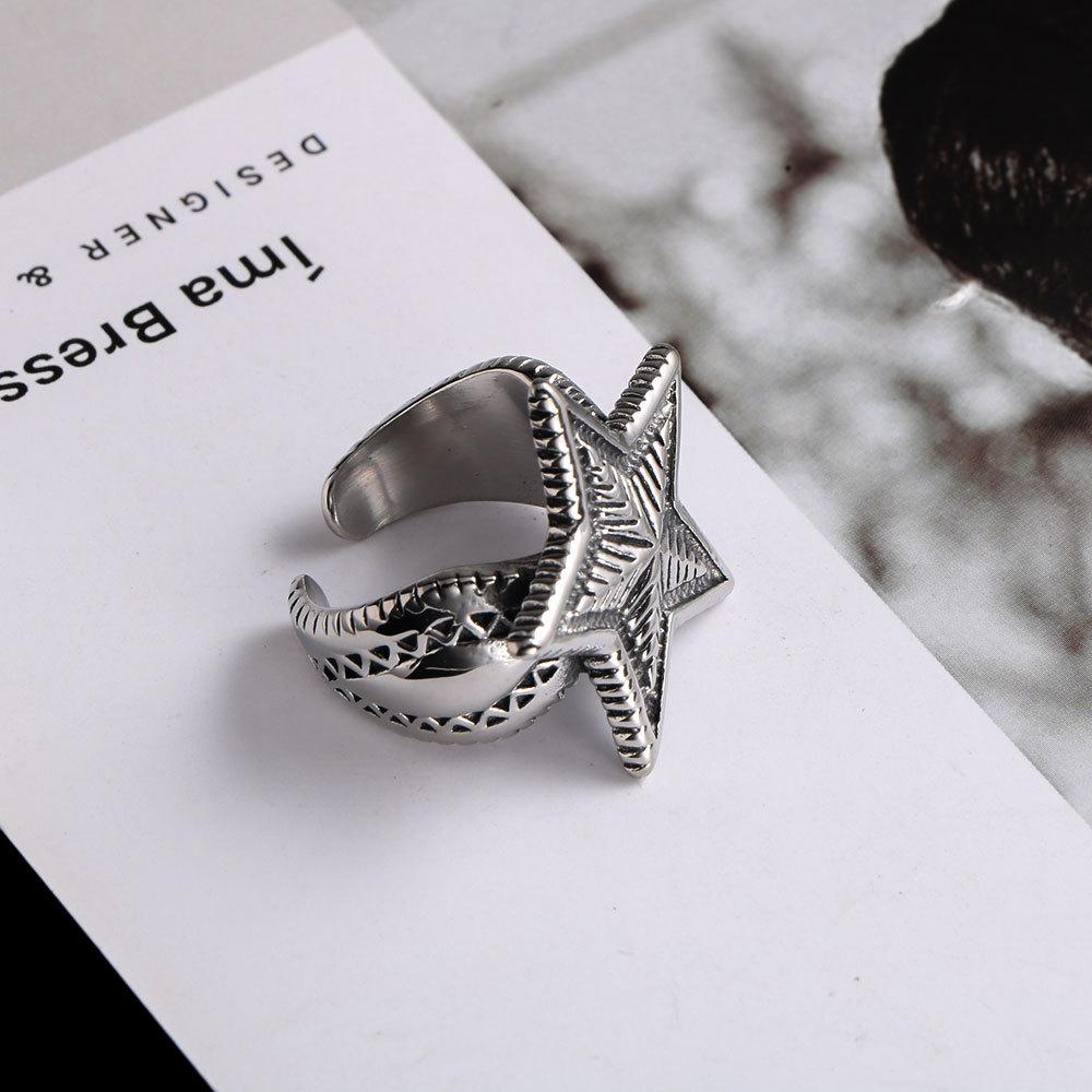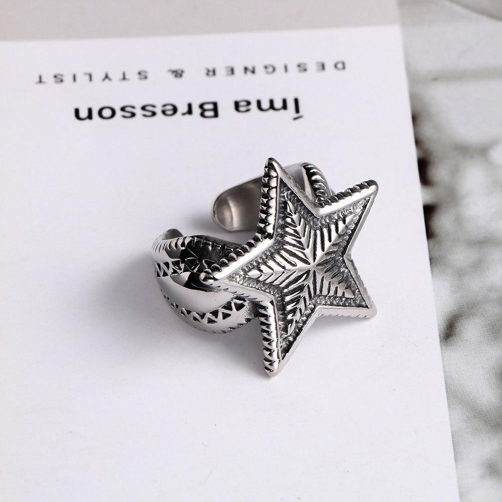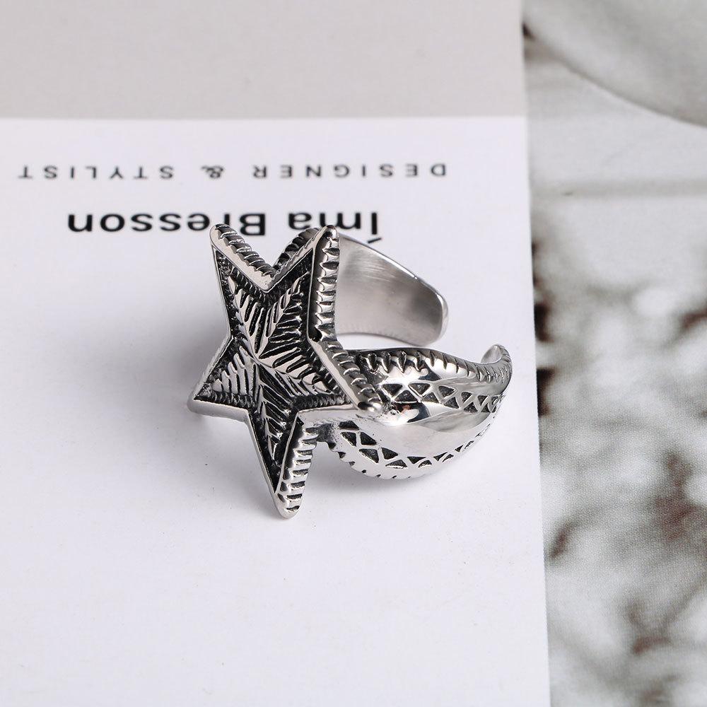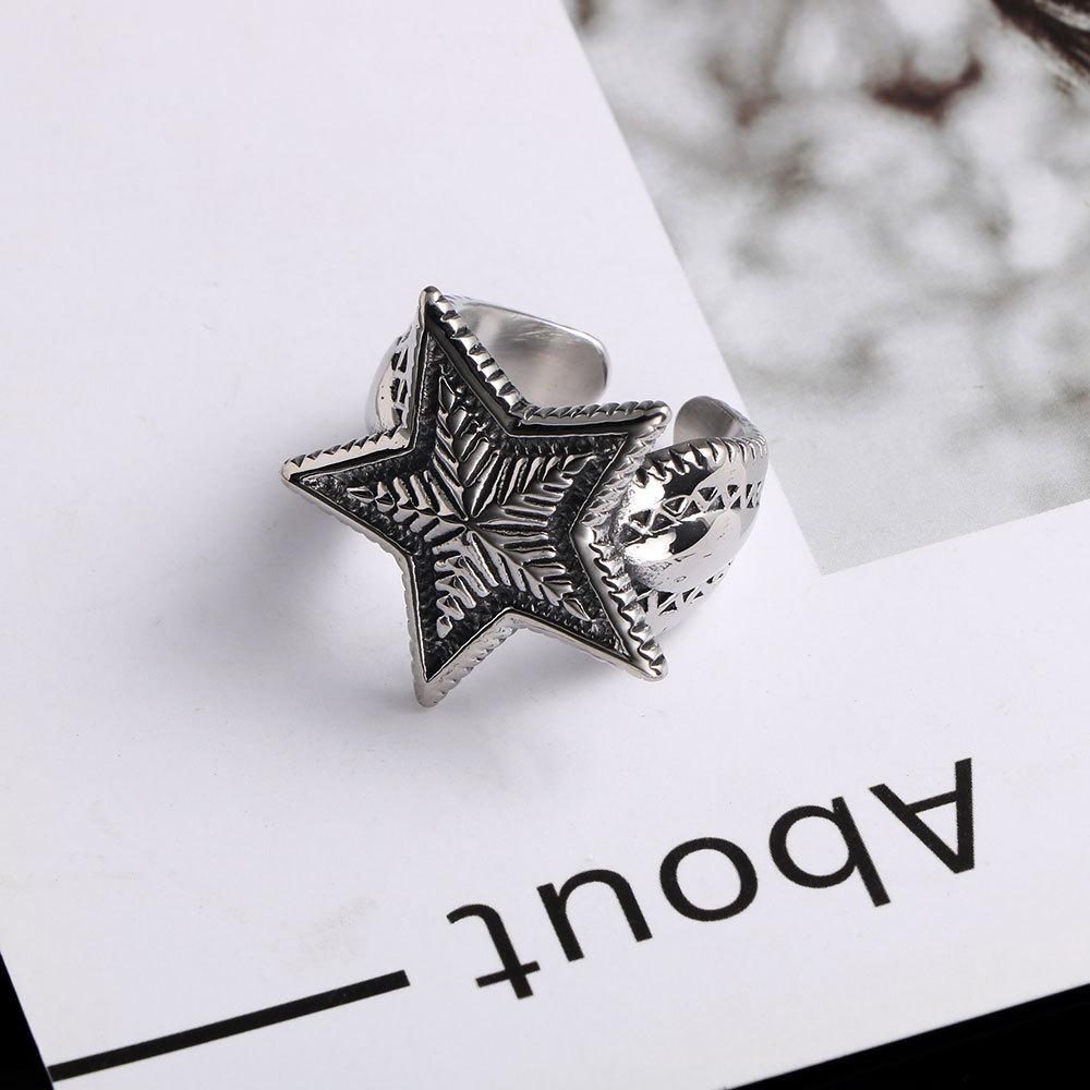 Anillo abierto de acero de titanio estrella de cinco puntas anillo masculino anillo de moda coreana femenino una generación de SA984