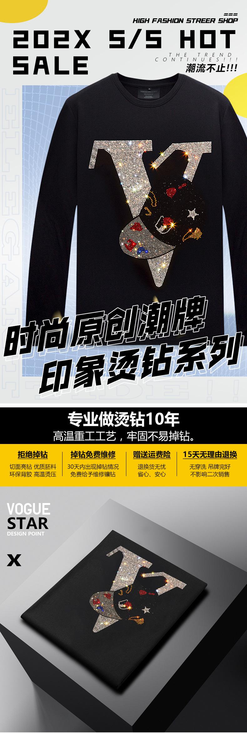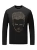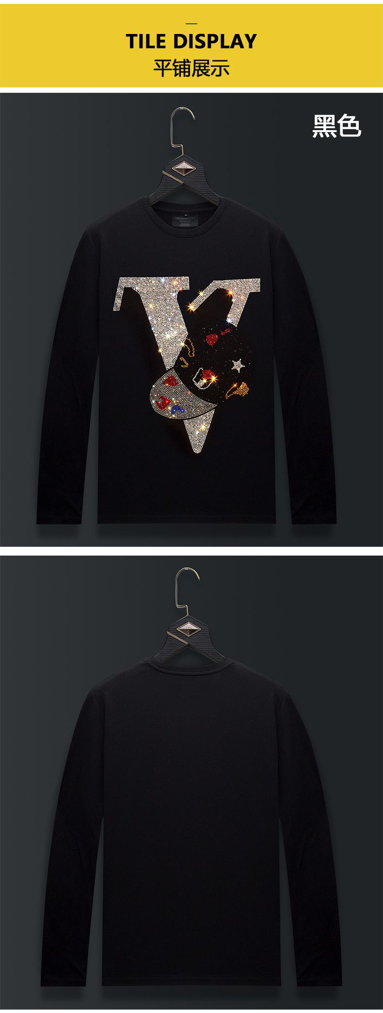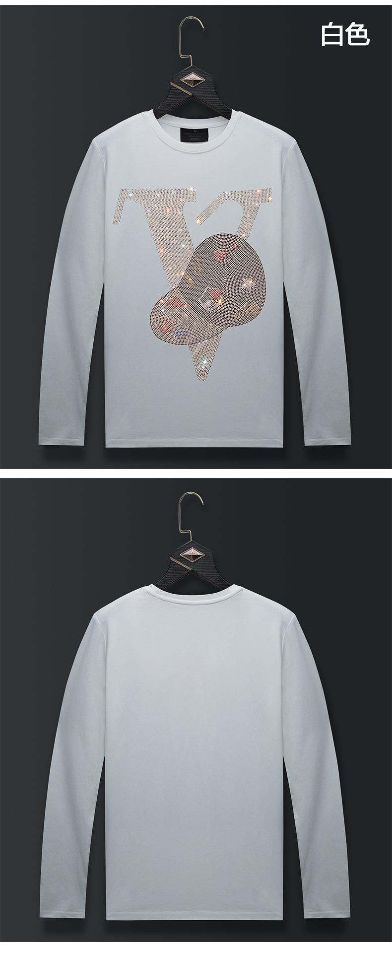 Camiseta de manga larga para hombre, nueva camiseta modal informal ajustada de moda 2023, camisa de fondo con sombrero de diamantes de imitación pesados