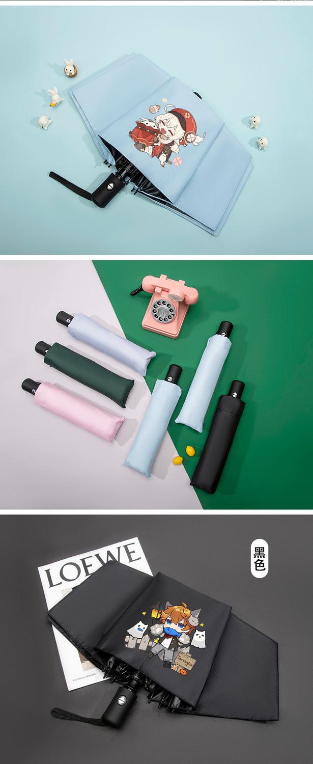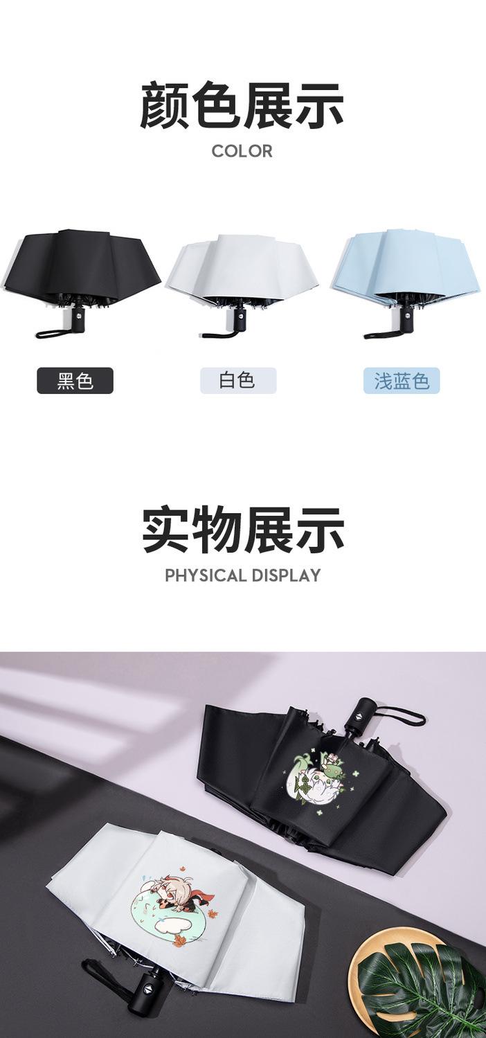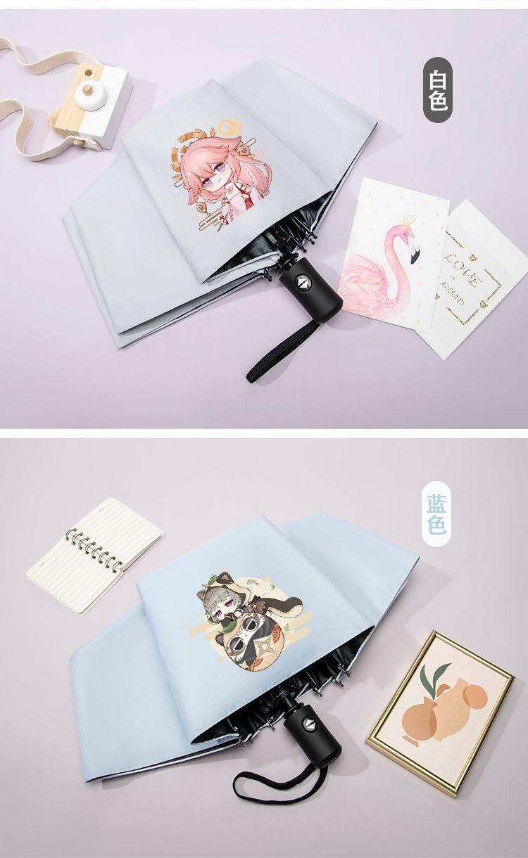 Paraguas de Sol Plegable Totalmente Automático Genshin Impact con Protección Solar y Anti-UV para Estudiantes de Primaria, Paraguas Reforzado Resistente al Viento para Días Soleados