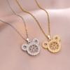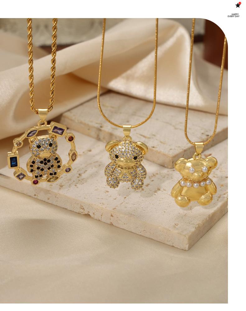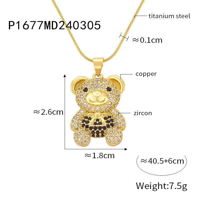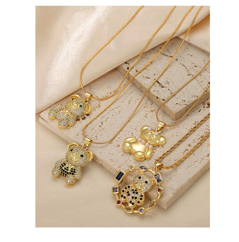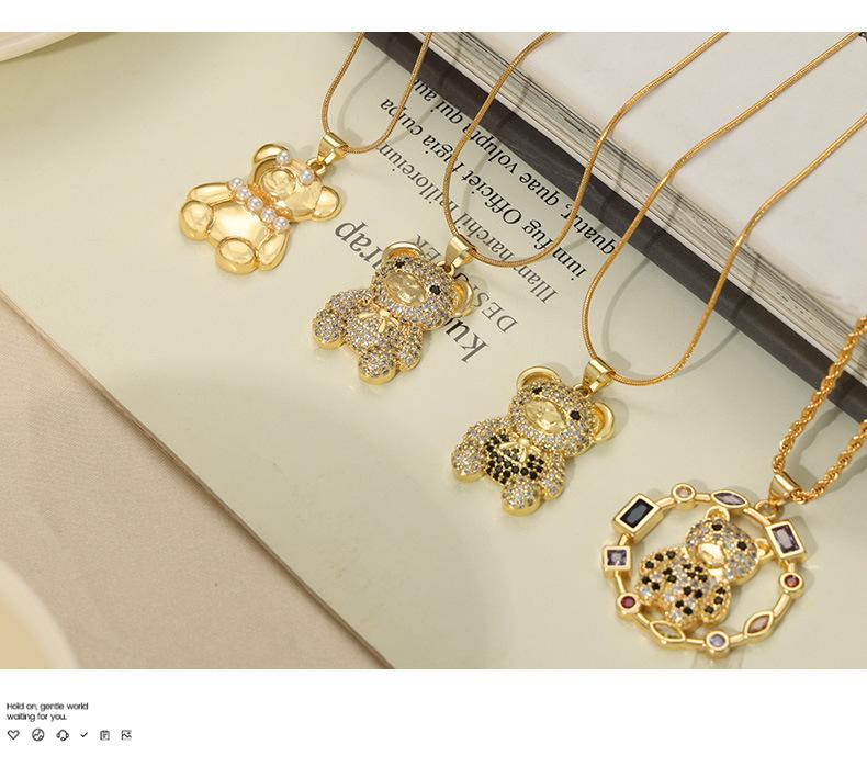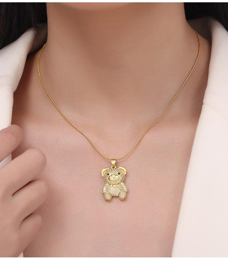 Joyería simple de dibujos animados personalizada estilo coreano Colgante de cobre con diseño de oso de diamante Cadena de serpiente Acero de titanio Collar chapado en oro