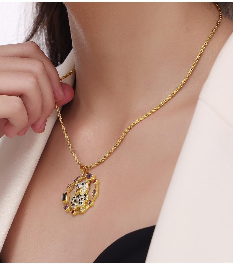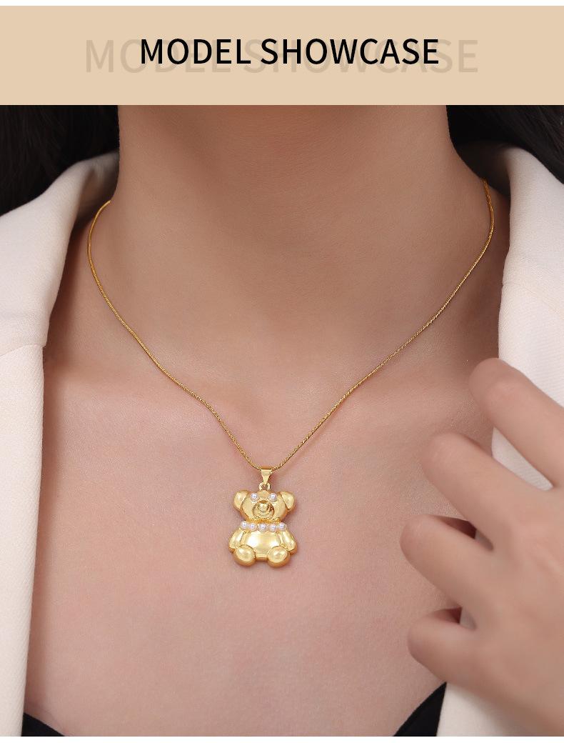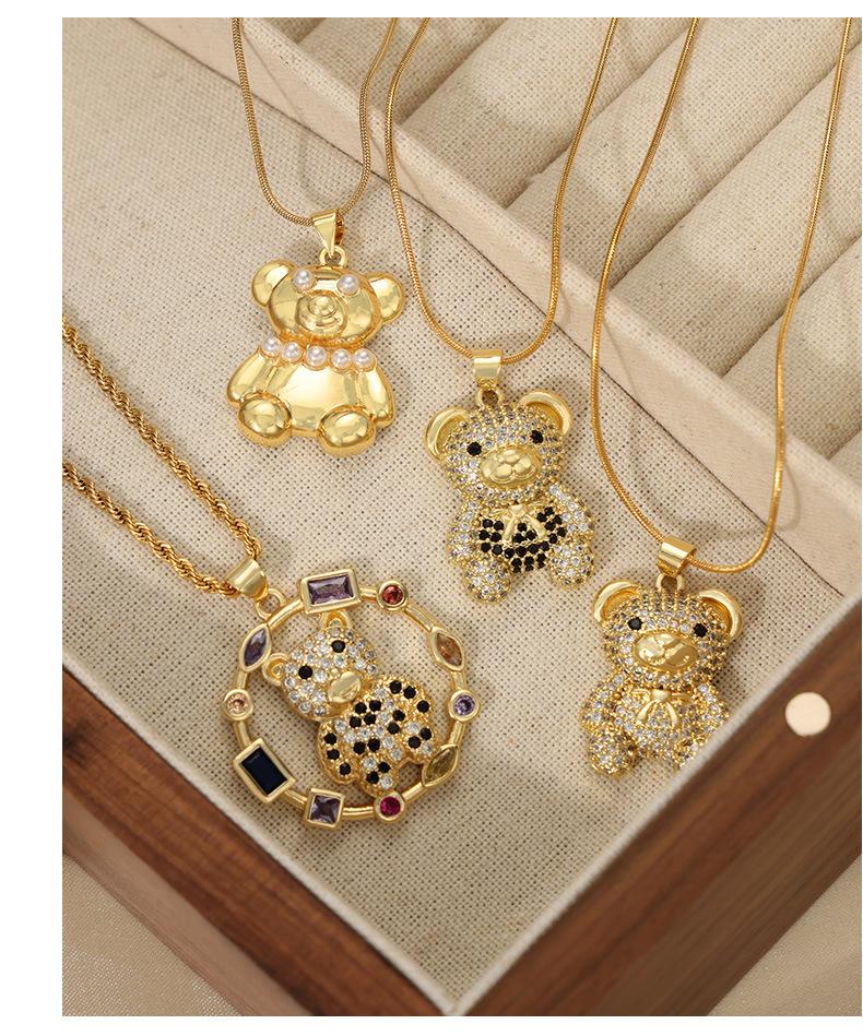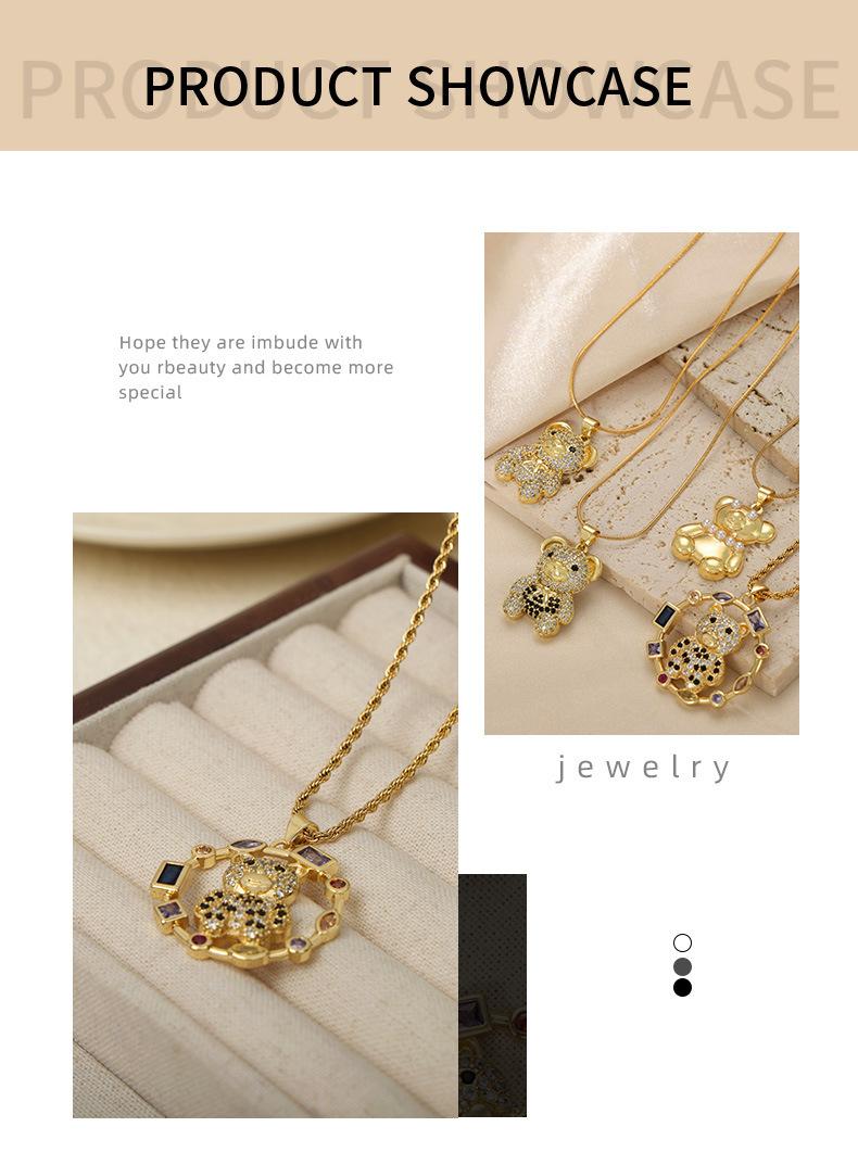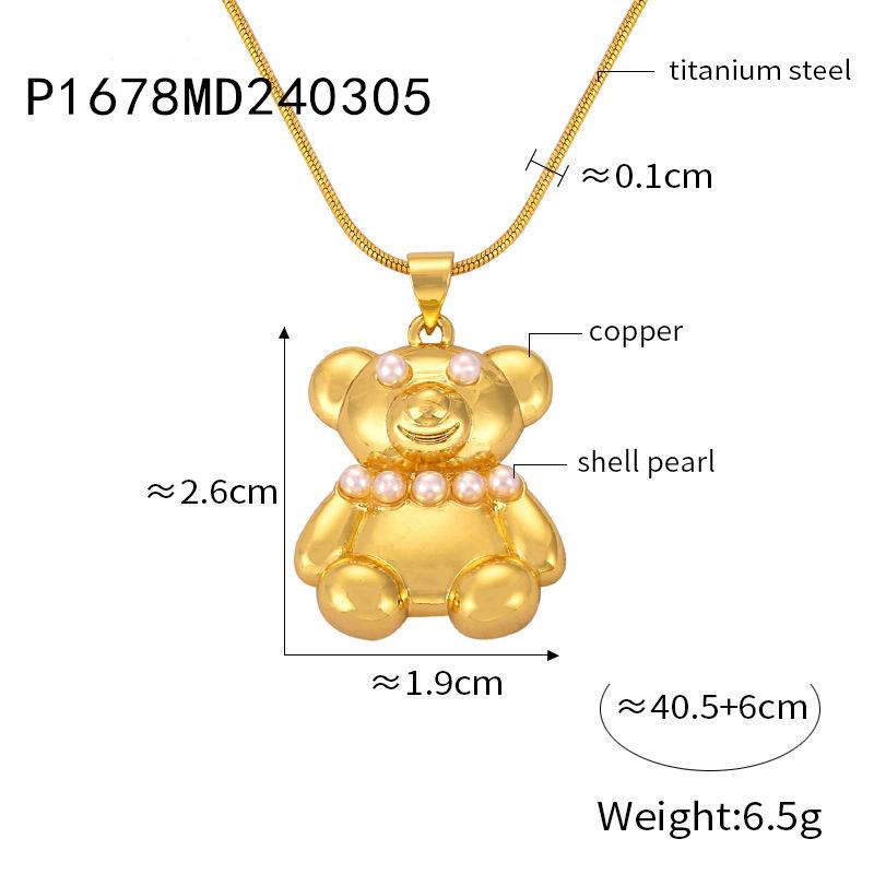 Joyería simple de dibujos animados personalizada estilo coreano Colgante de cobre con diseño de oso de diamante Cadena de serpiente Acero de titanio Collar chapado en oro